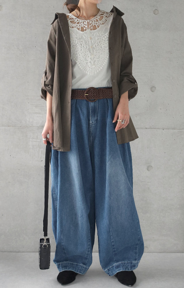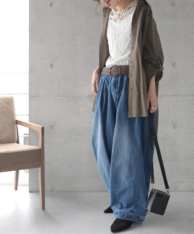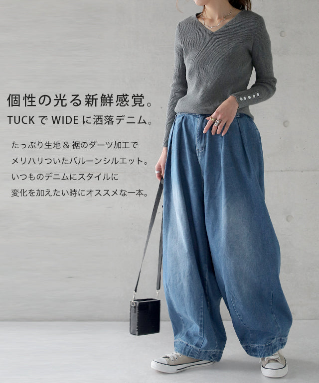 ラフを楽しむバルーンシルエットワイドデニムパンツ。ワイドなバルーンシルエットですがタックが入っていてウエストはスッキリ細見え。定番のデニムスタイルを一味違うスタイリングにランクアップしてくれます。■モデル着用アイテム ⇒ トップス / ベルト■モデル着用アイテム ⇒ トップス■モデル着用アイテム ⇒ トップス■モデル着用アイテム ⇒ トップス / ベルト■モデル着用アイテム ⇒ ベルト■モデル着用アイテム ⇒ トップス■モデル着用アイテム ⇒ トップス■モデル着用アイテム ⇒ トップス / シャツ / ベルト■モデル着用アイテム ⇒ トップス※モデル着用商品は在庫切れ・販売終了・リンク切れの場合がございます。