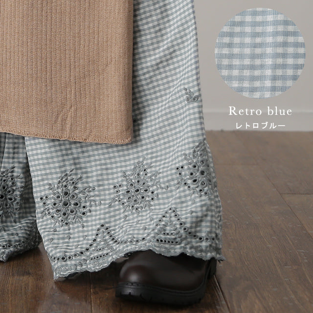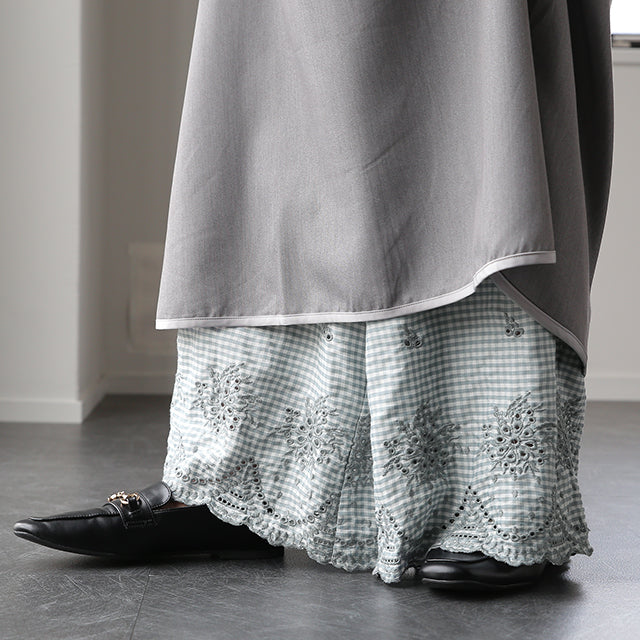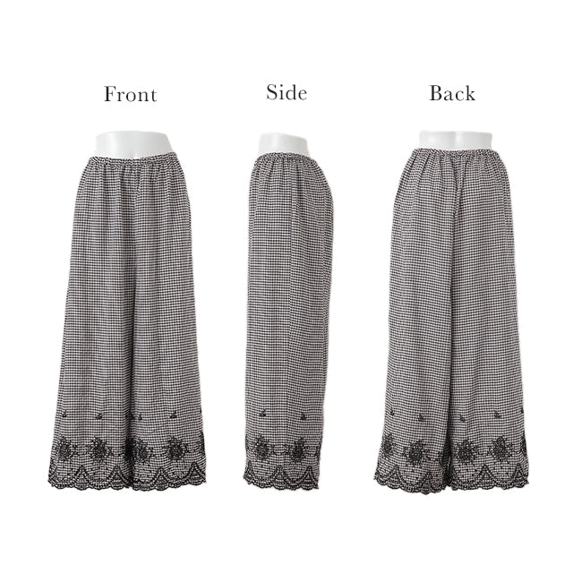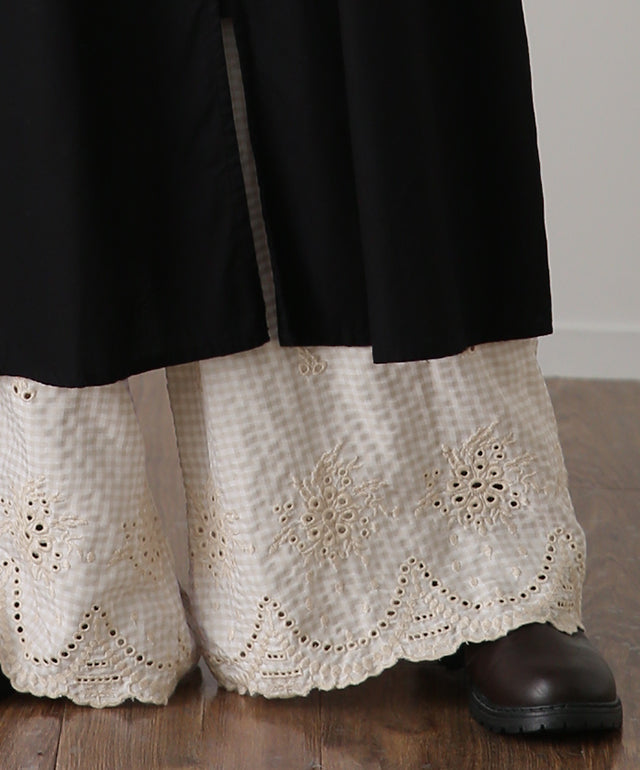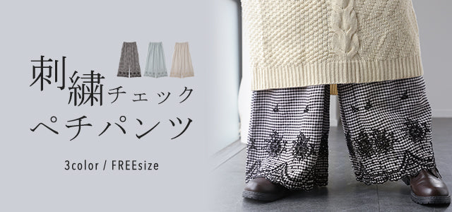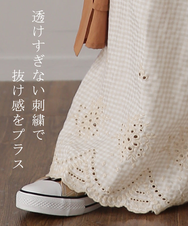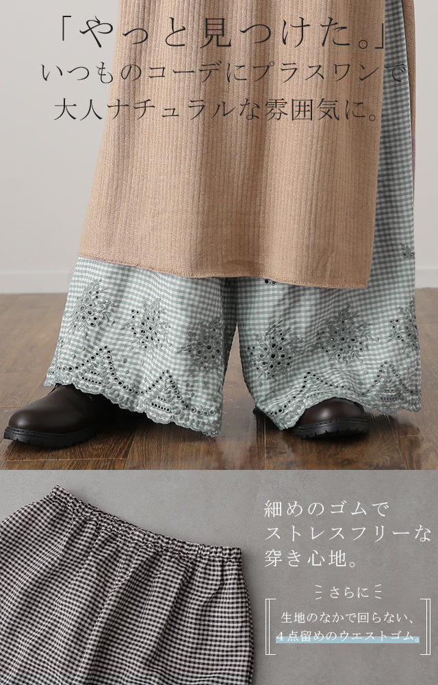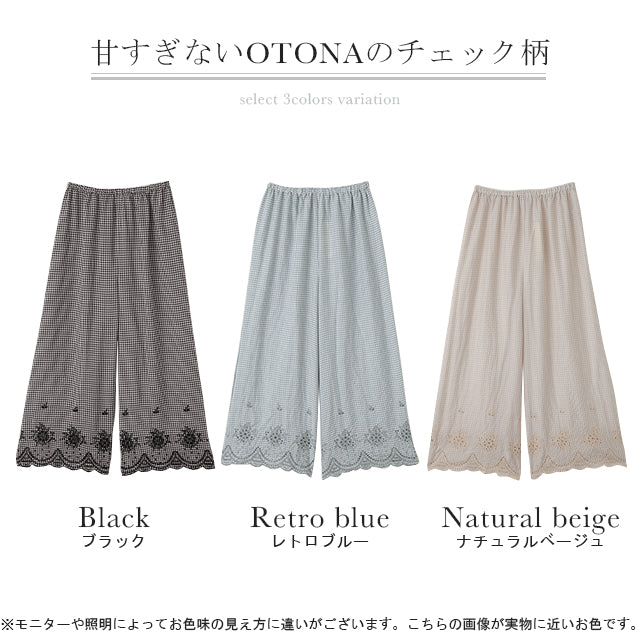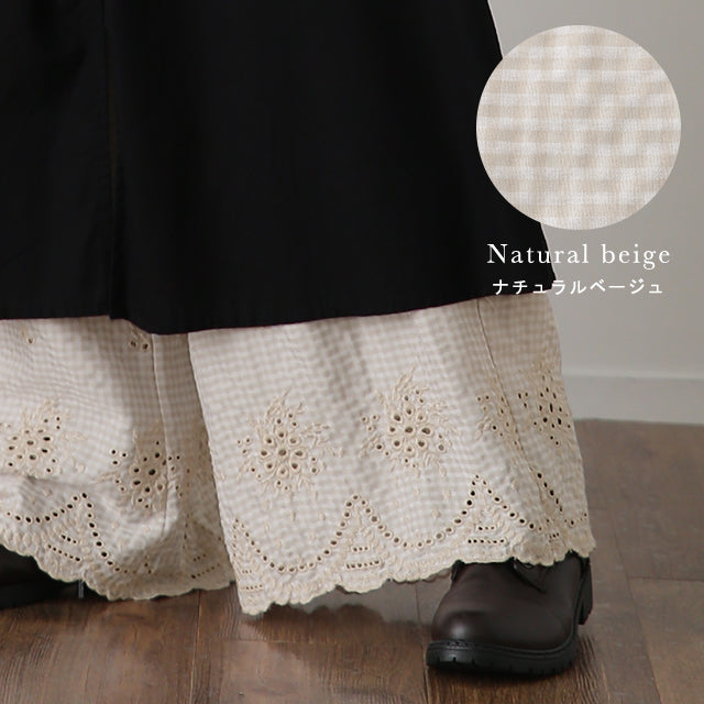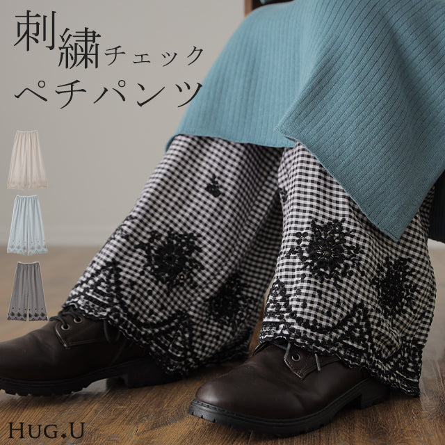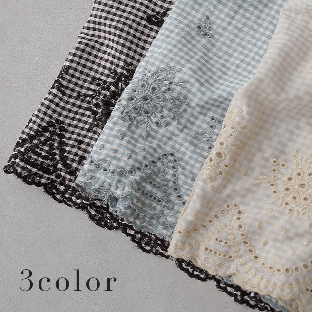 ありそうでなかったギンガムチェックのペチパンツです。インナーとして着用すると裾から刺繍レースがのぞいてナチュラルフェミニンな雰囲気に仕上がります。