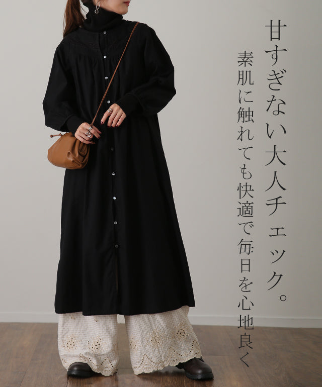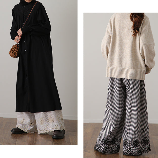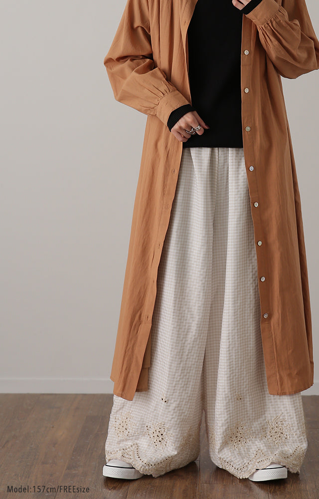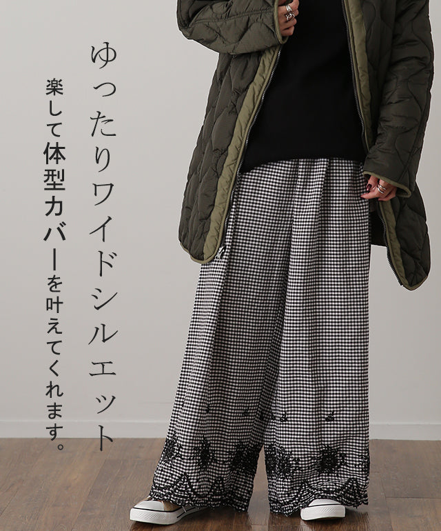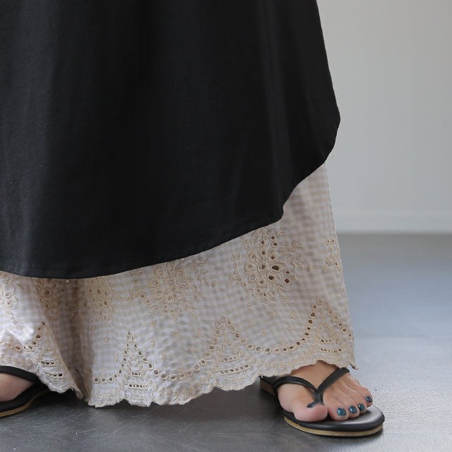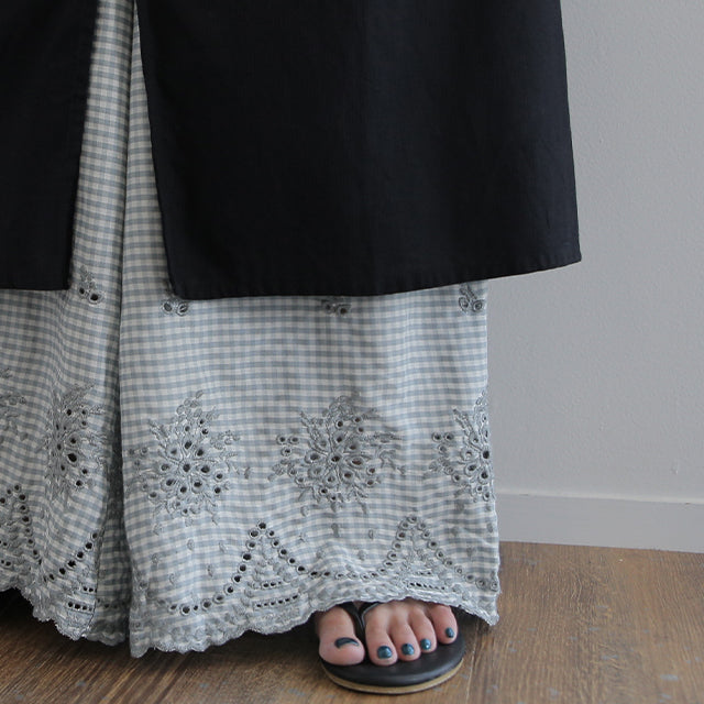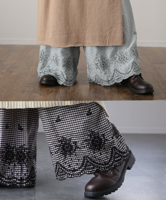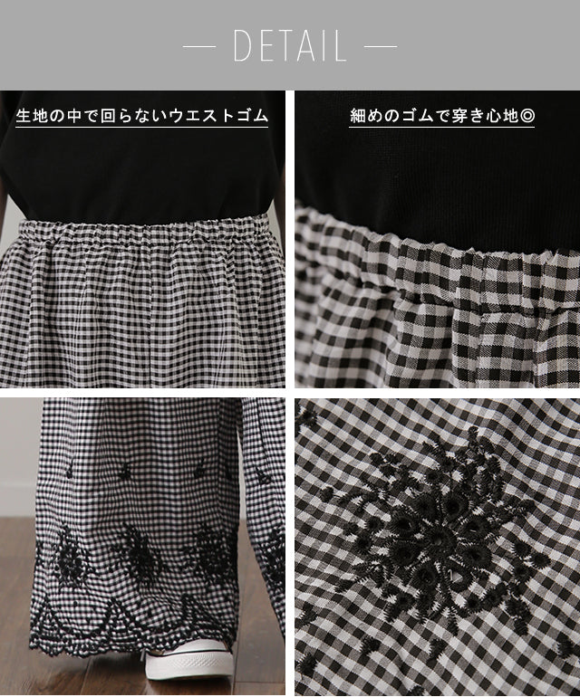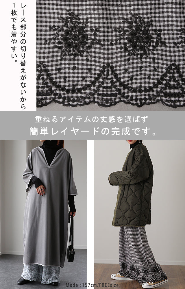 ありそうでなかったギンガムチェックのペチパンツです。インナーとして着用すると裾から刺繍レースがのぞいてナチュラルフェミニンな雰囲気に仕上がります。
