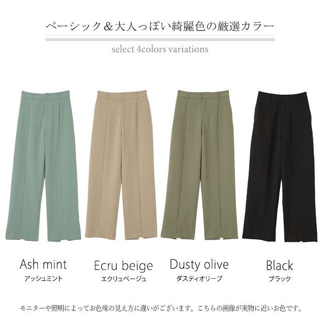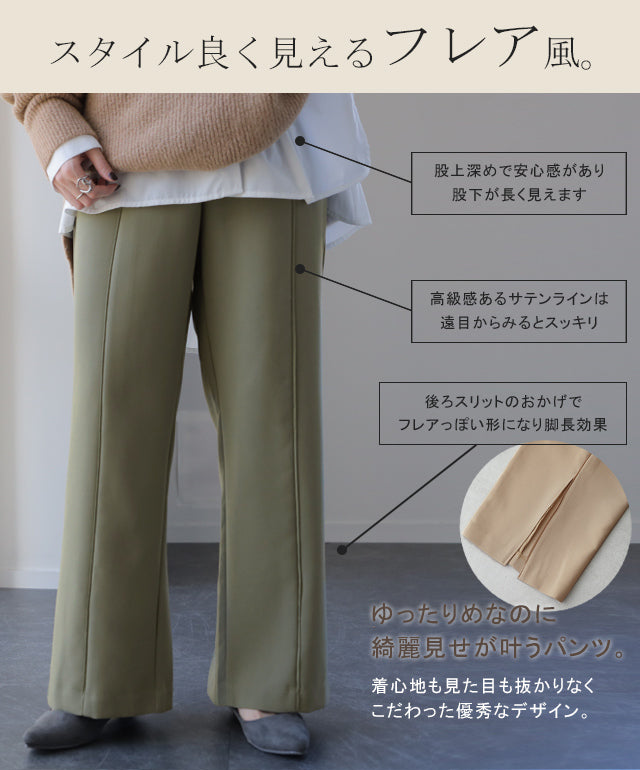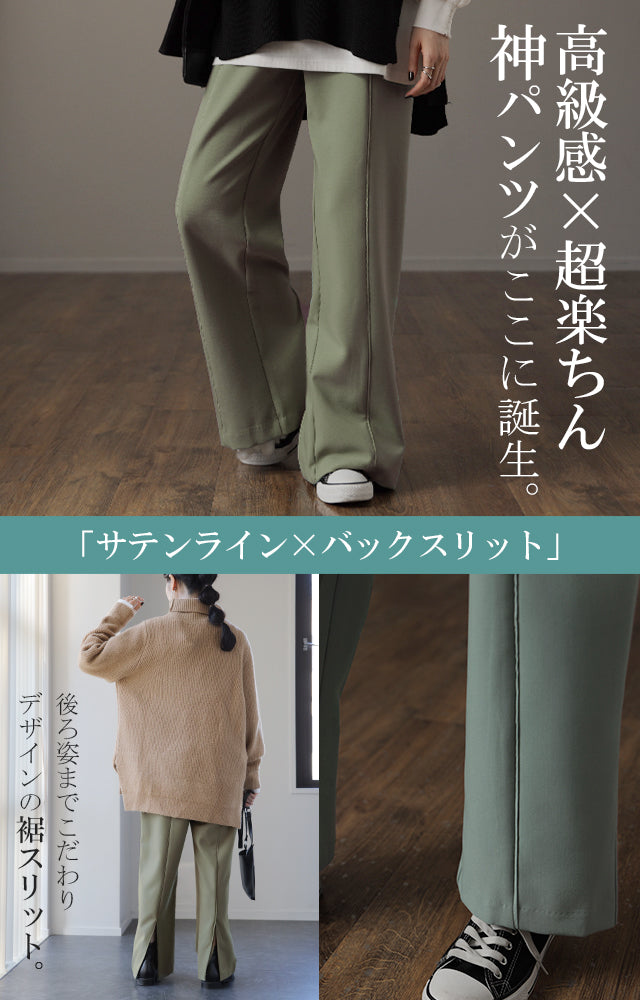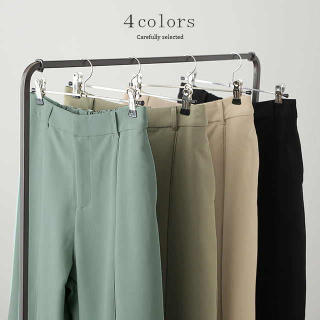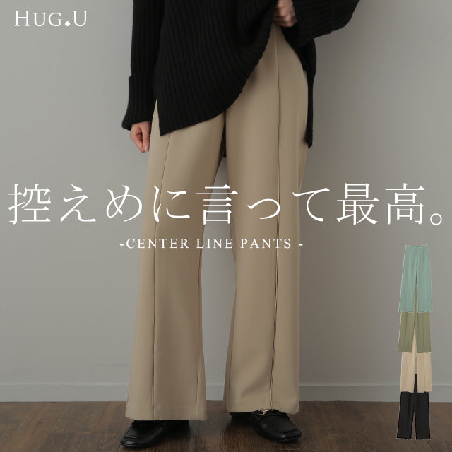 パンツ『 高 級 感 』センターライン フレアパンツ スリット 楽 きれいめ ストレートパンツ レディース ボトムス ゆったり スラックス カラーパンツ ゴム ロング ワイド フレア ストレート オフィス ズボン 大きいサイズ 黒 春 夏 HUG.U