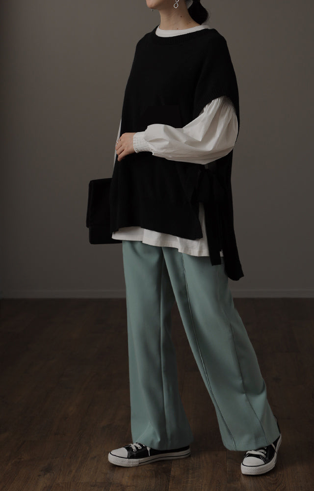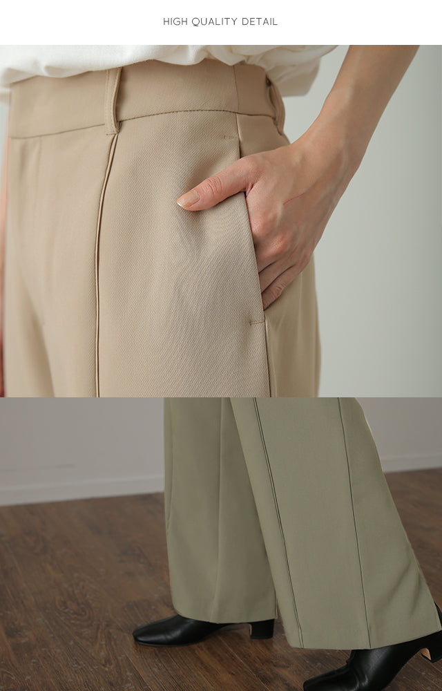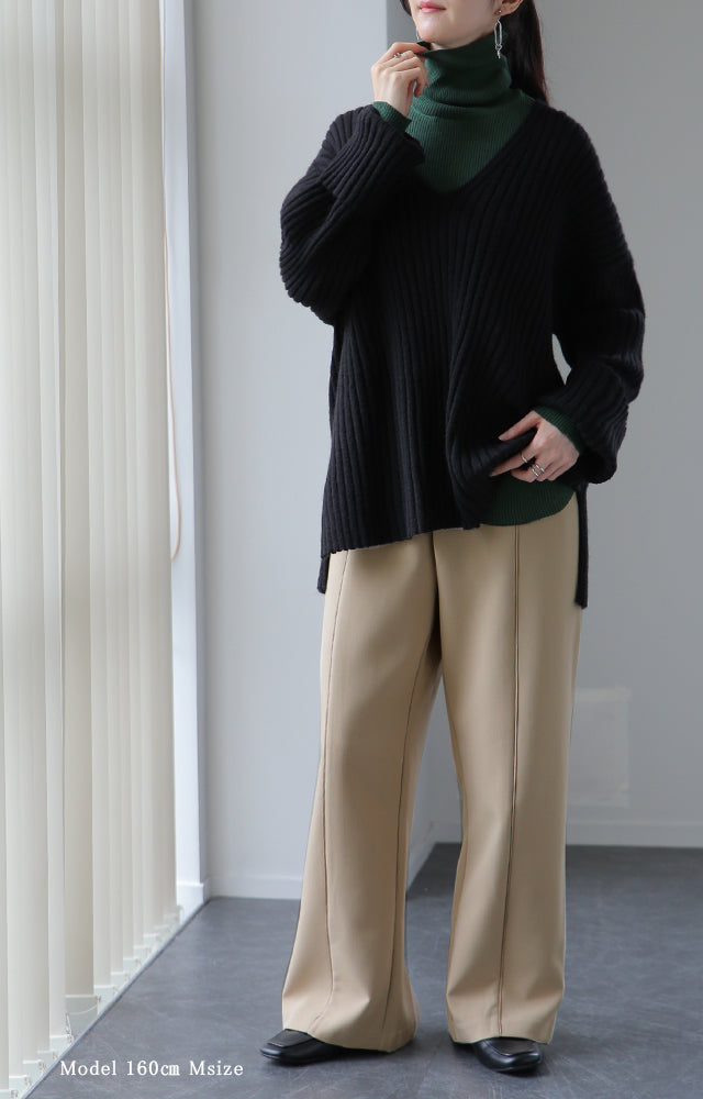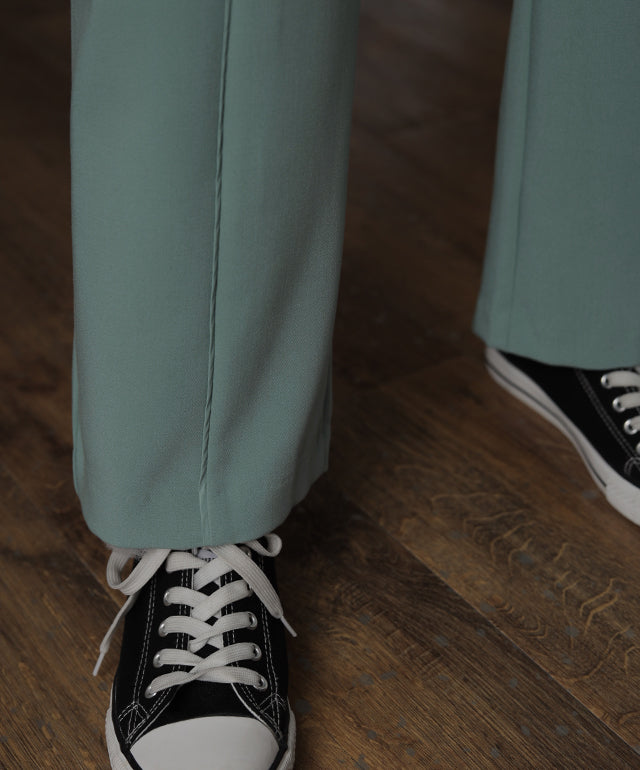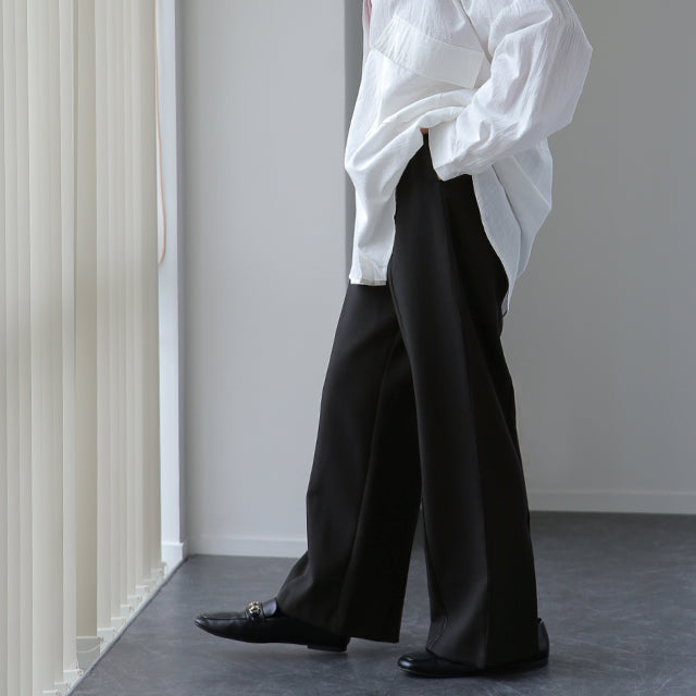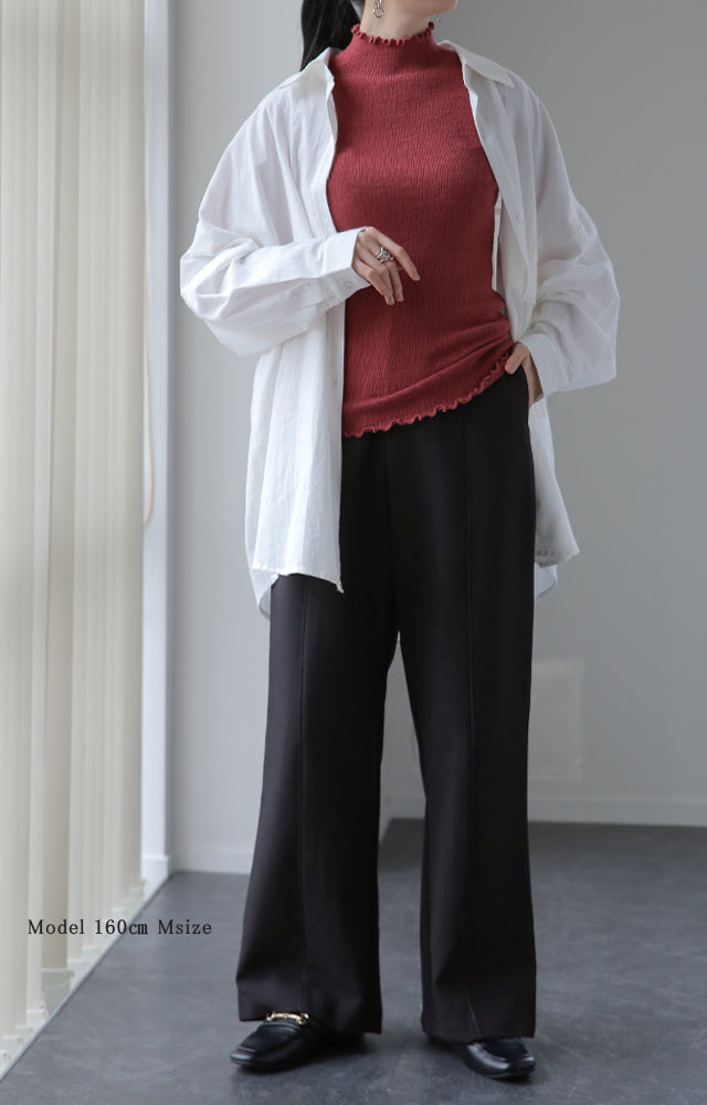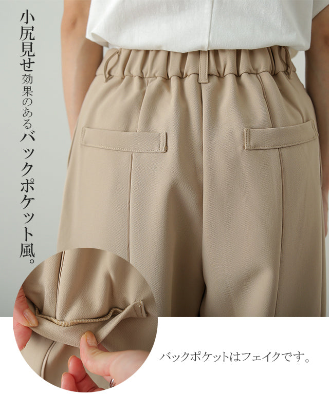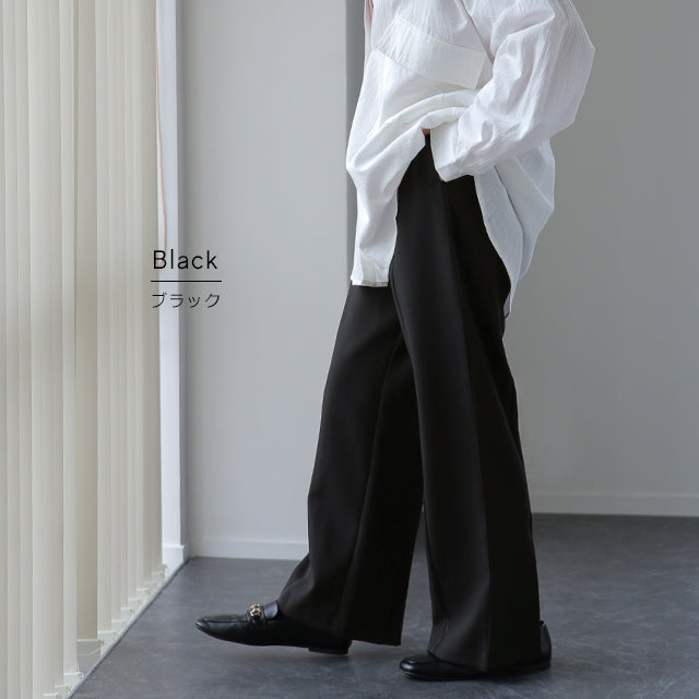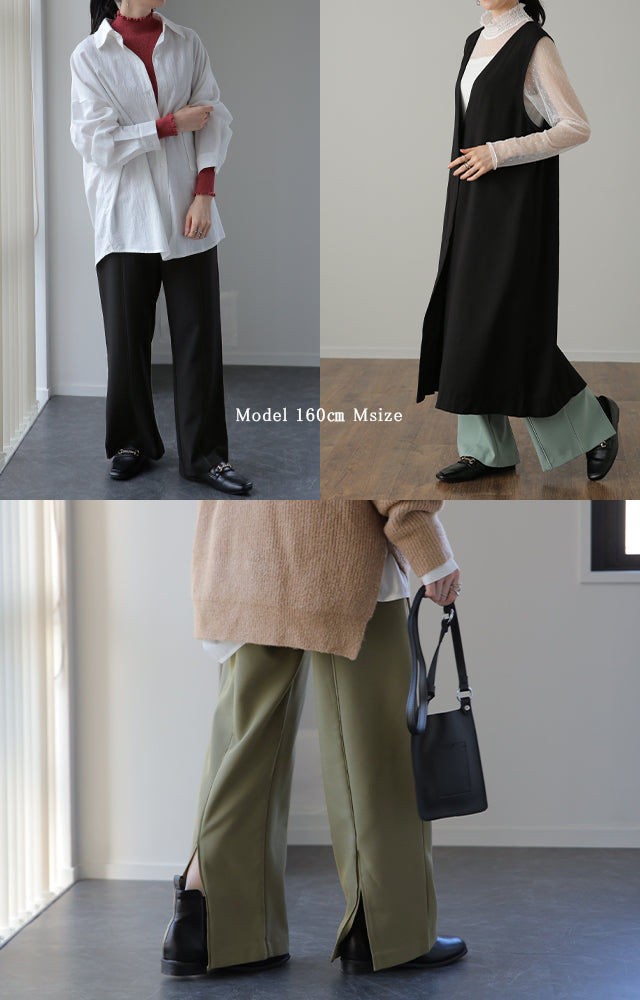 こなれ感を演出するセンターライン入りイージーパンツ。細すぎず太すぎない絶妙なシルエットで足長効果も◎。ラクにはけて足が抜群にきれいに見える優秀な一本です。