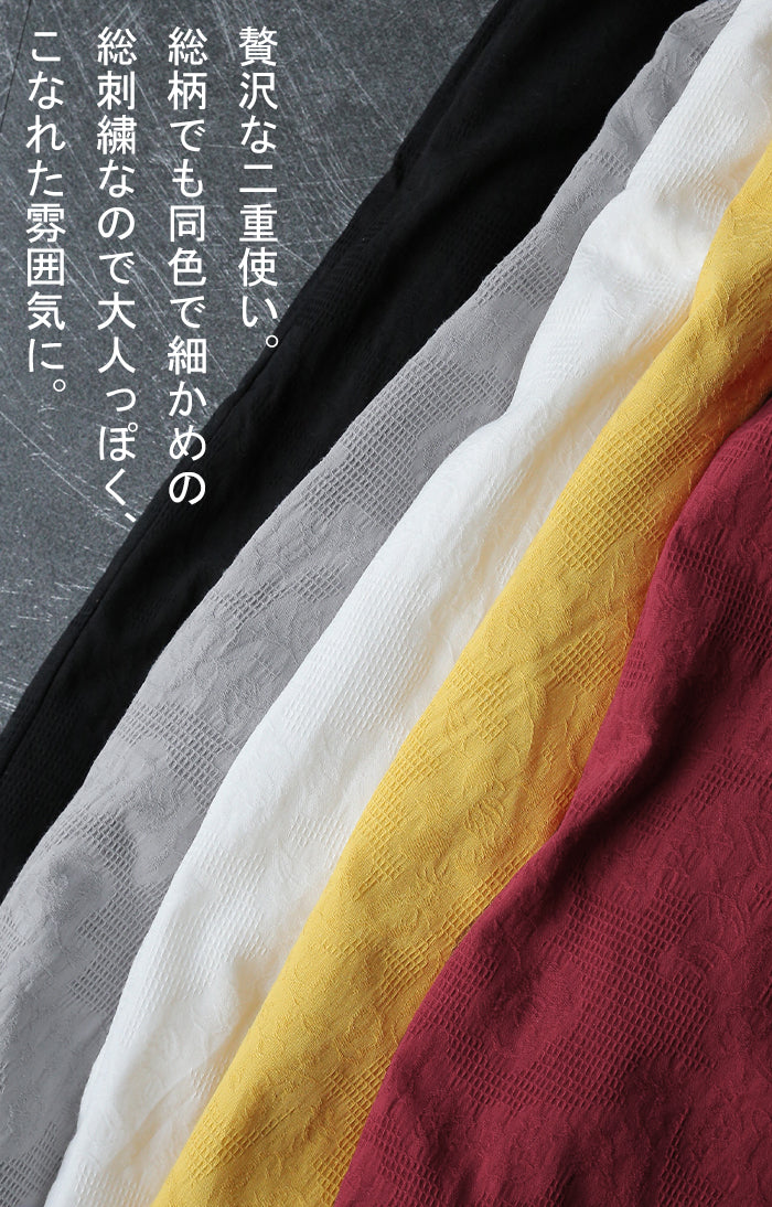黒を購入しました。レースも美しく上品なので普段使い~オフィスでも大活躍してくれています!軽くて涼しいのも◎