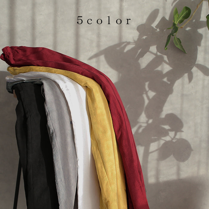 着心地の良い薄すぎず厚すぎない綿100%のカットソーを使用。暑い時期にもさらりと快適に過ごしやすいです。若干ウォッシュ感のある風合いに仕上げることで爽やかさや大人のこなれ感がでる生地感となっております。ホワイトは杢感のある風合いがプラスされたカラーになっています。