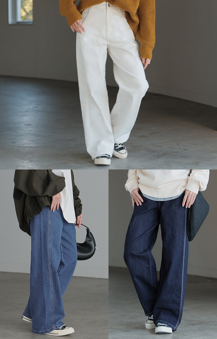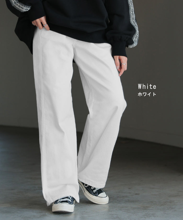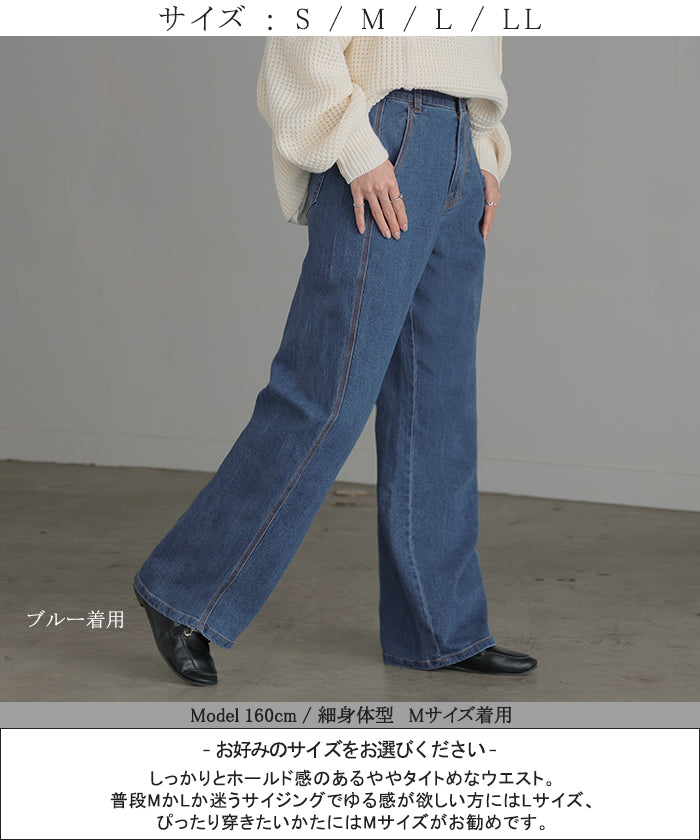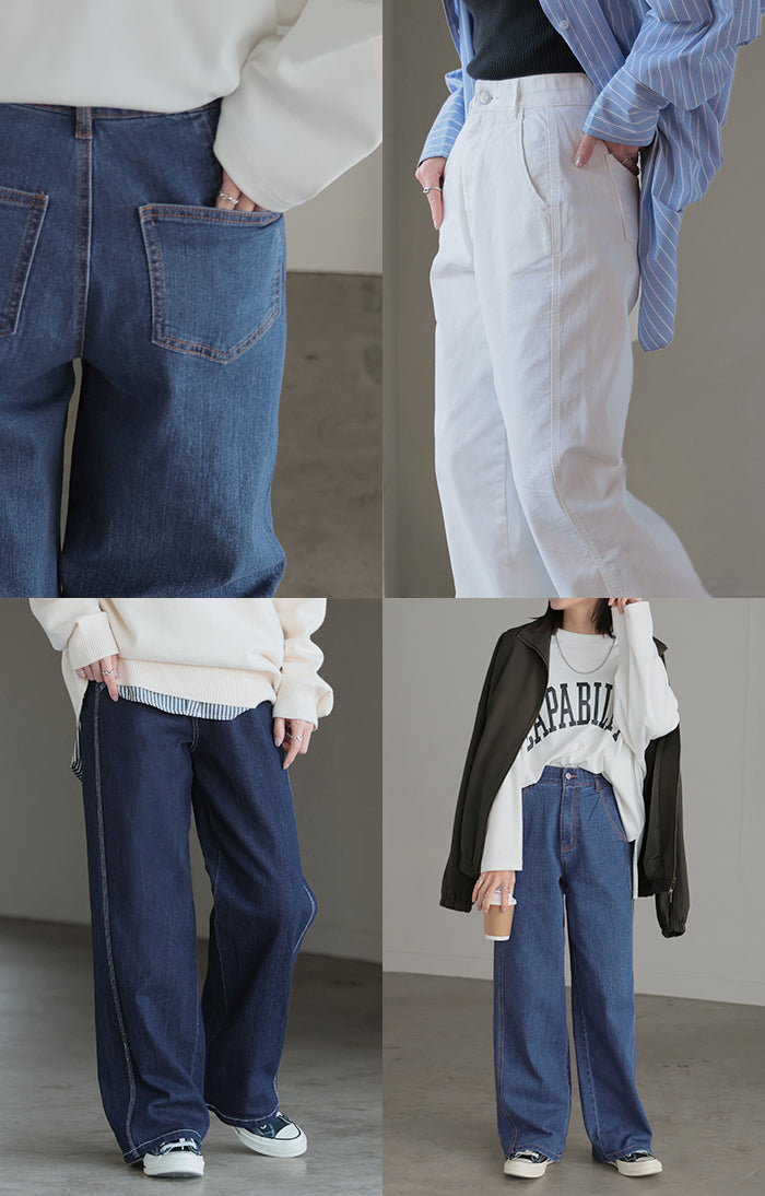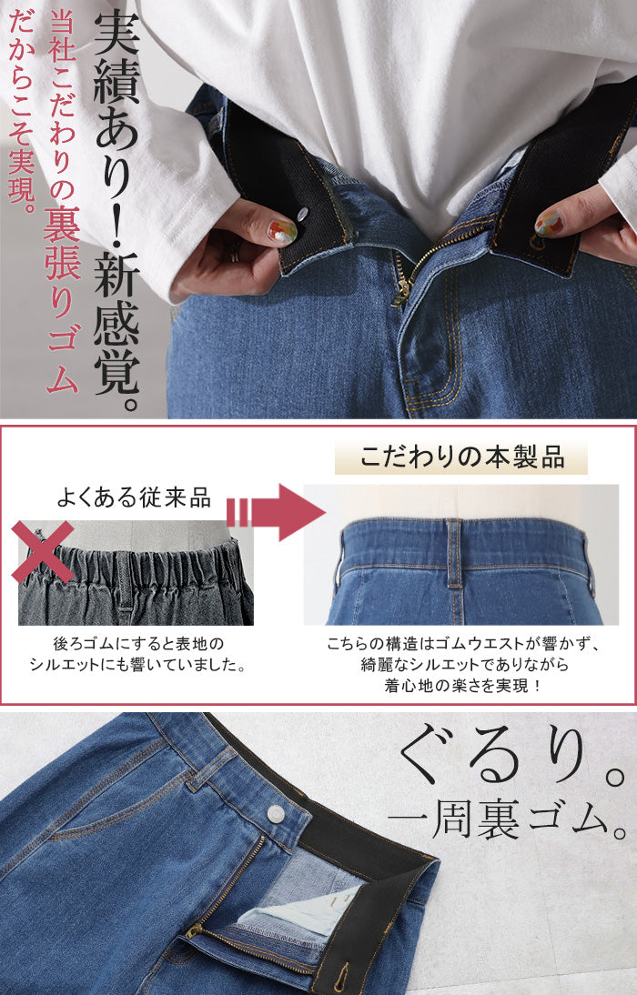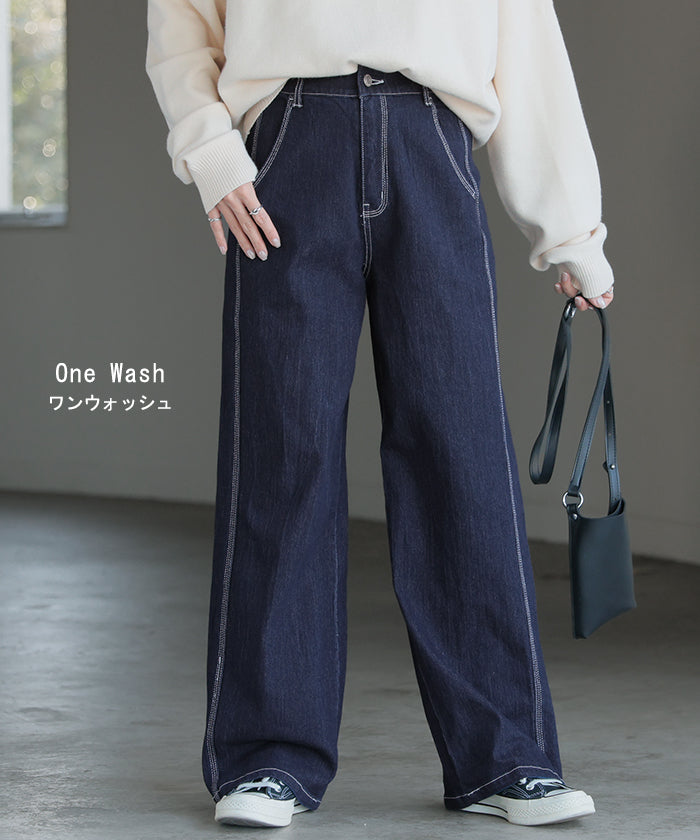 デニム 新感覚 多重ステッチ パンツ デニムパンツ レディース ハイライズ ワイドパンツ ワイド 大きいサイズ ジーンズ ジーパン 体型カバー ボトムス ストレート ズボン ゆったり ステッチ ハイウエスト 伸びる ゴム ストレッチ 美脚 白 春 夏 HUG.U