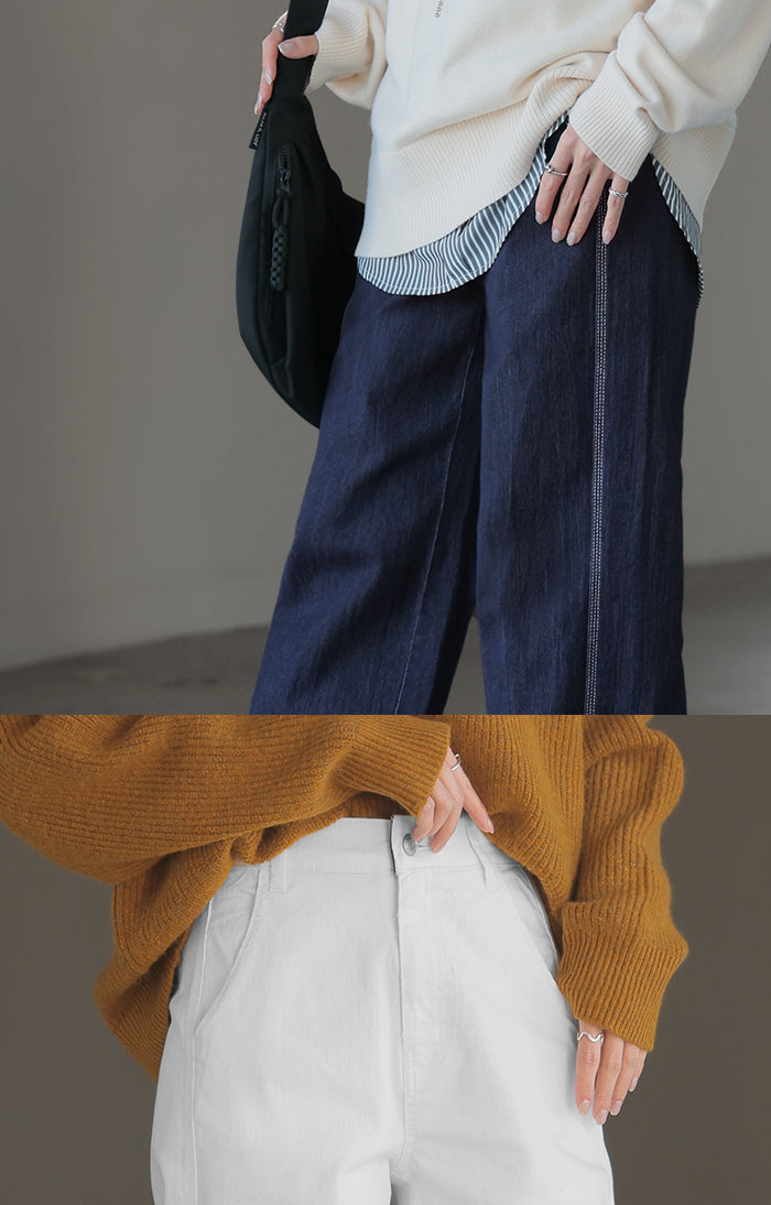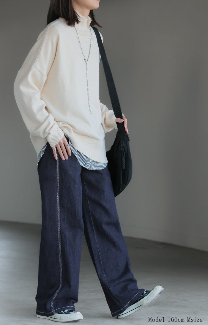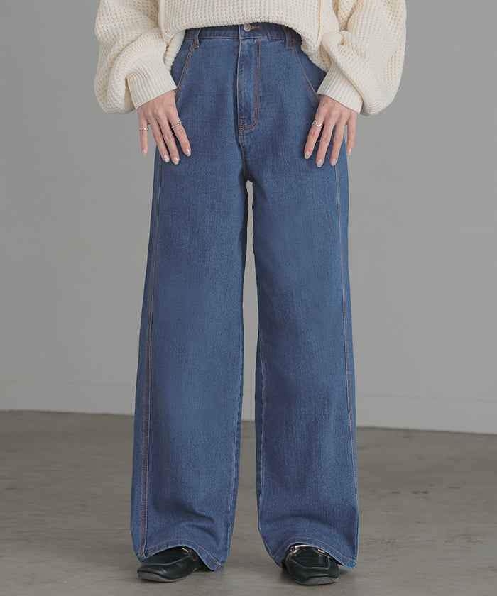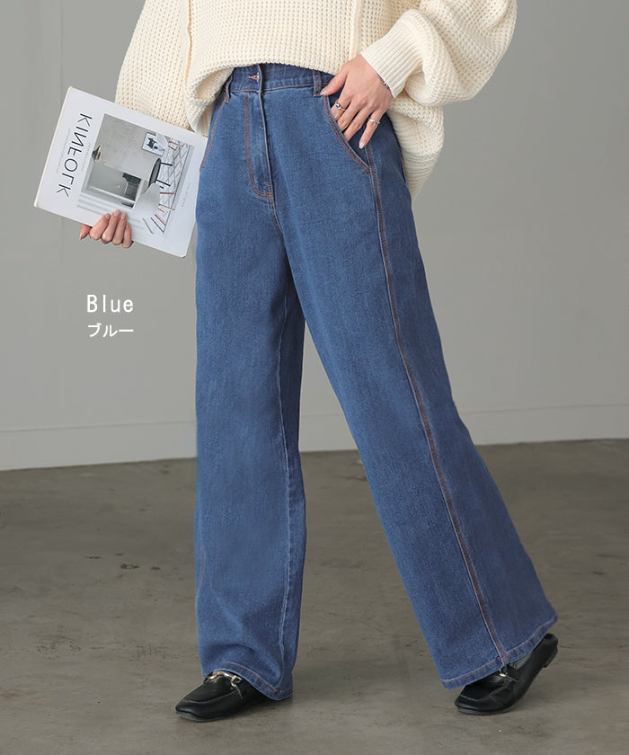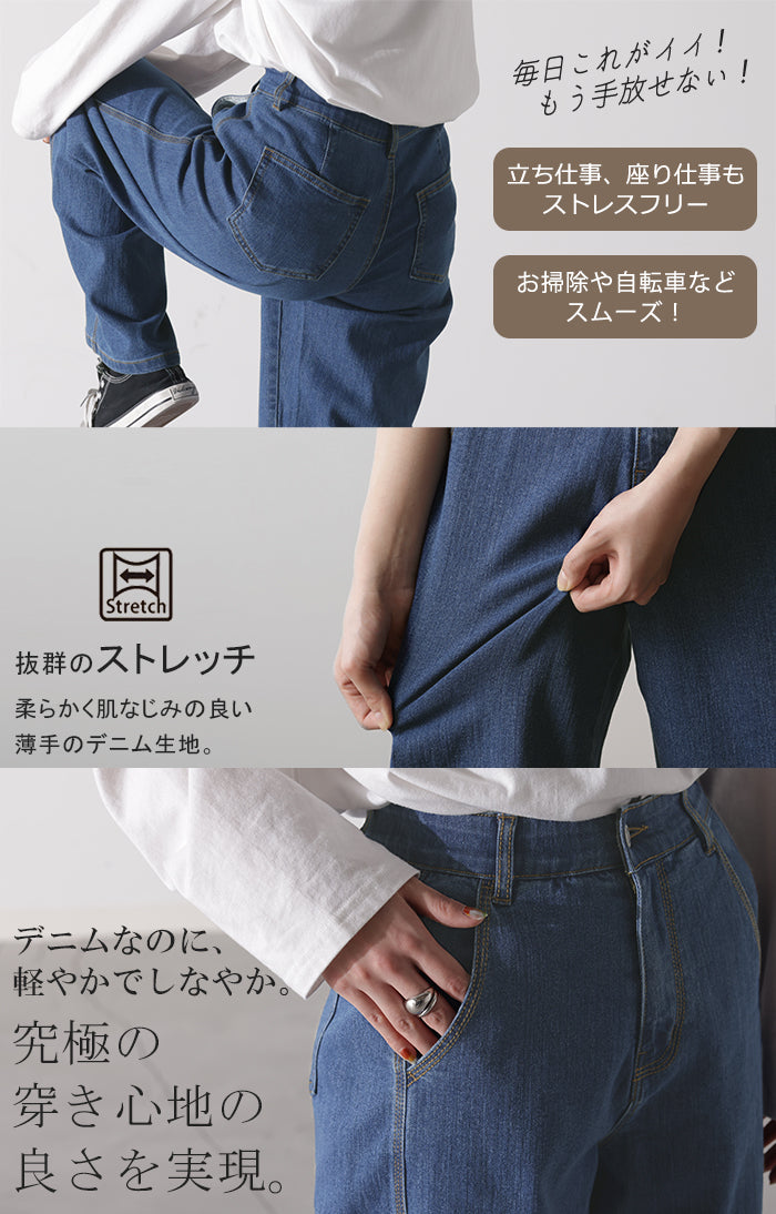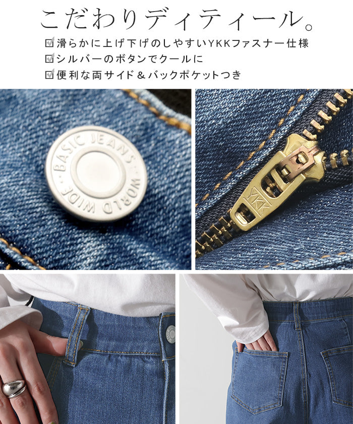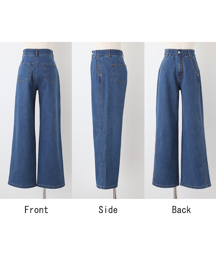 デニム 新感覚 多重ステッチ パンツ デニムパンツ レディース ハイライズ ワイドパンツ ワイド 大きいサイズ ジーンズ ジーパン 体型カバー ボトムス ストレート ズボン ゆったり ステッチ ハイウエスト 伸びる ゴム ストレッチ 美脚 白 春 夏 HUG.U
