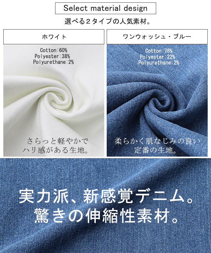 ワンウォッシュ・ブルー:綿76% ポリエステル22% ポリウレタン2%