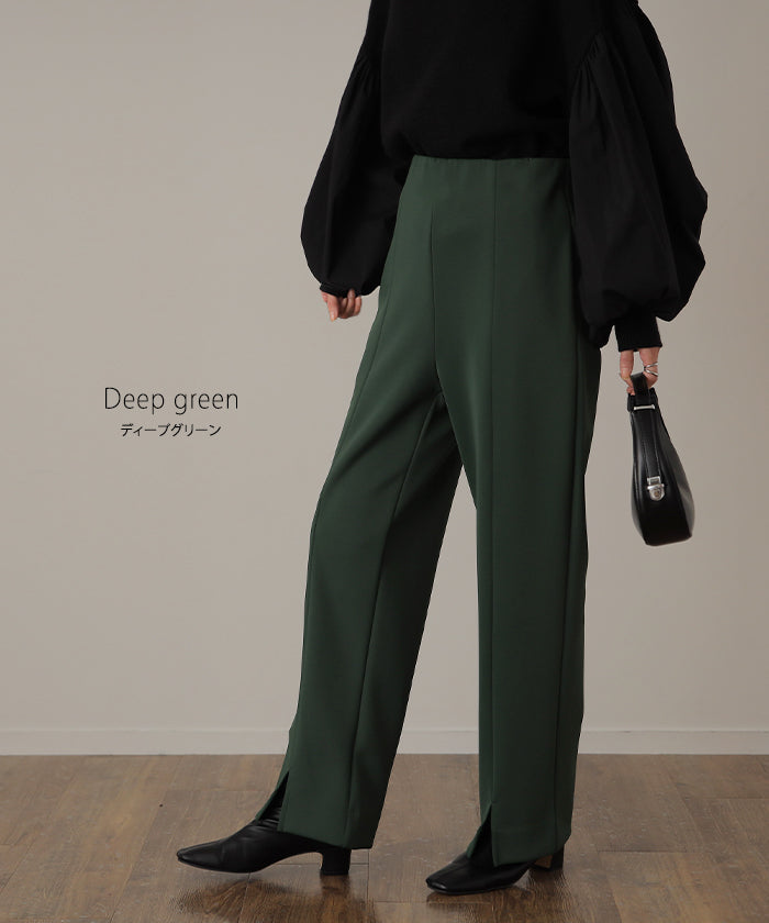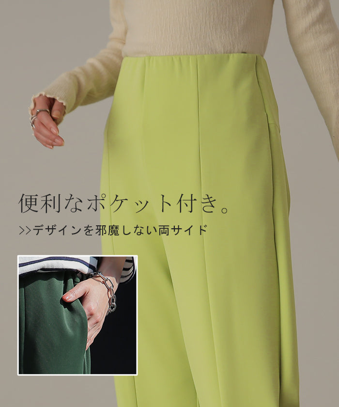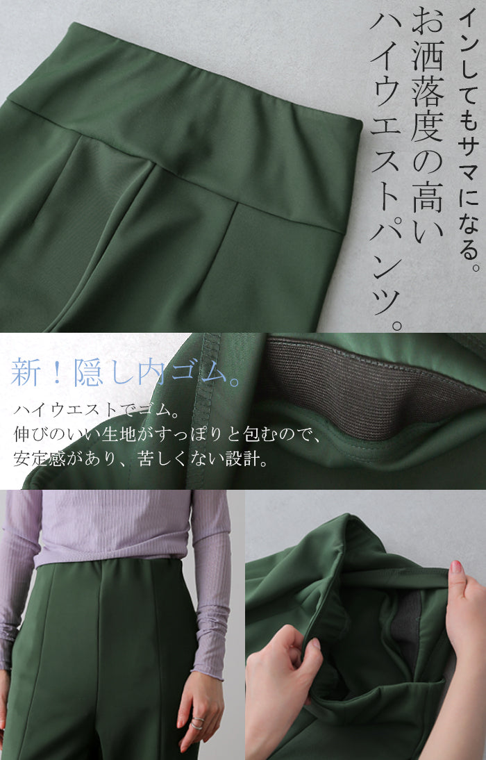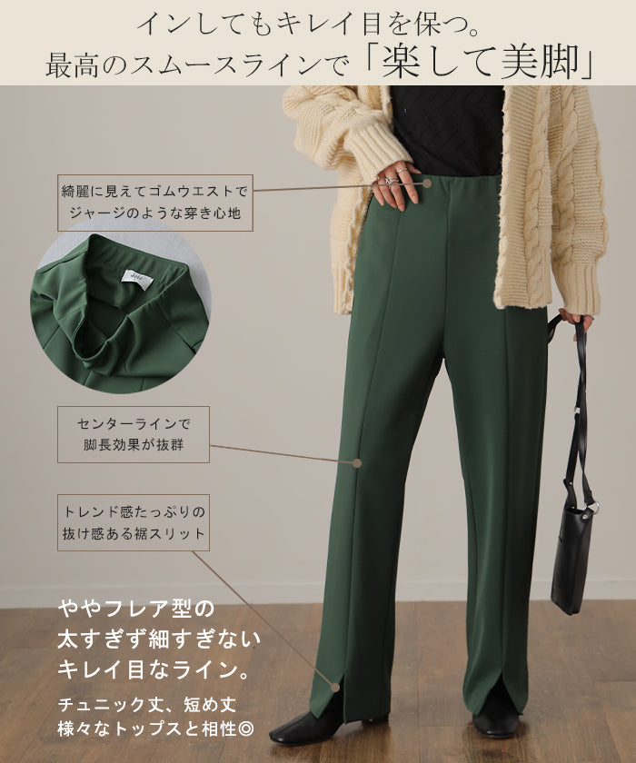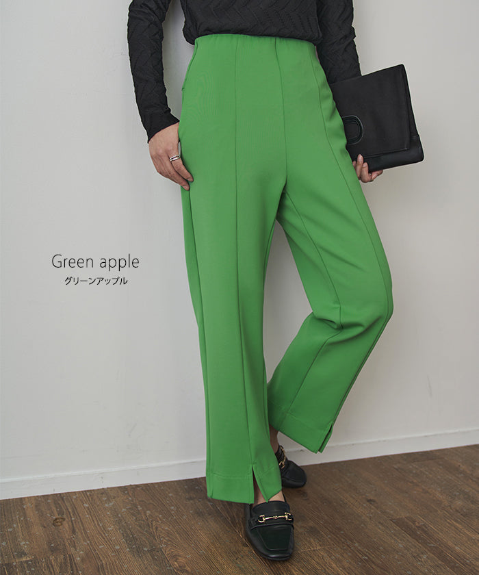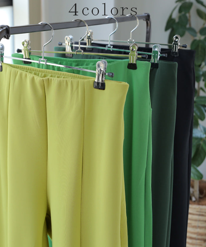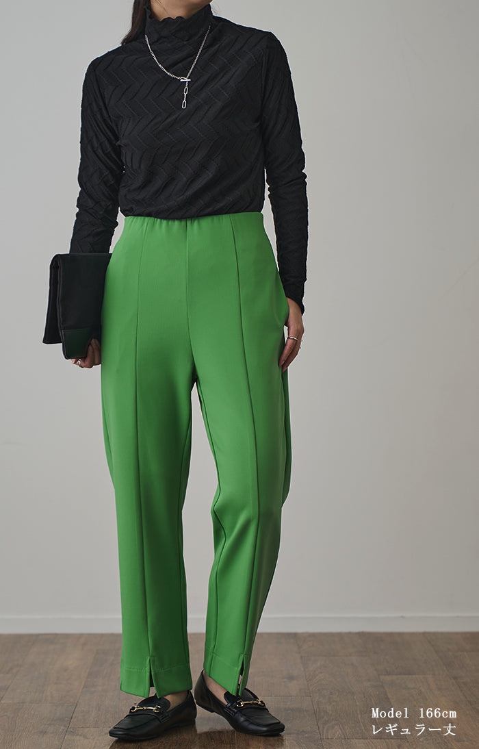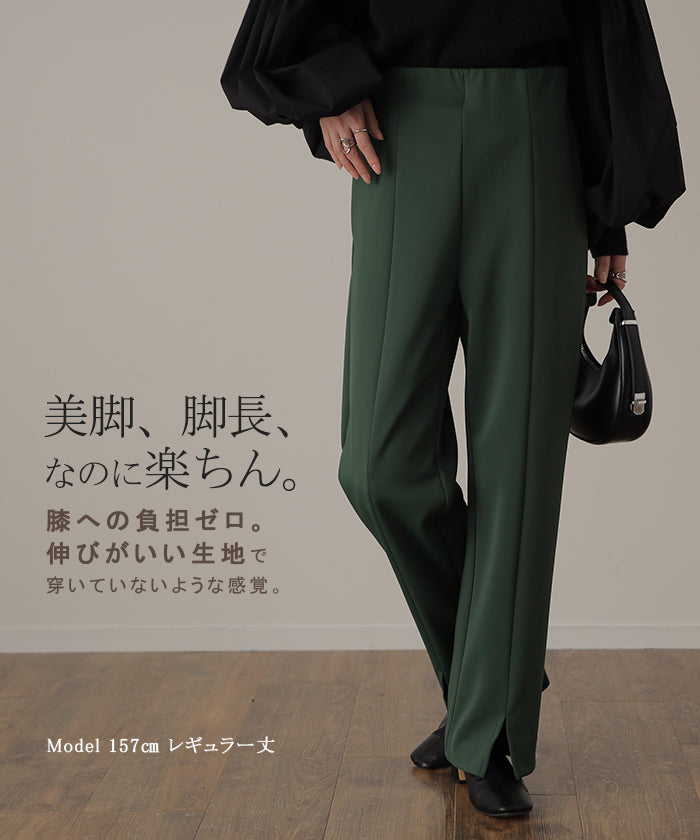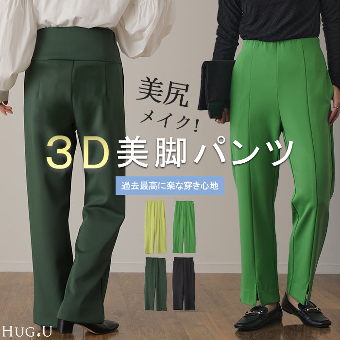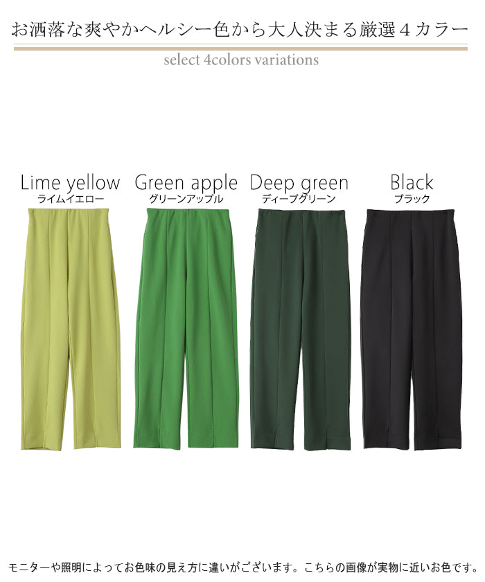 パンツ「ゼロG」履いてる感覚なし 美脚 きれいめ パンツ レディース 美尻 ボトムス イージーパンツ ストレートパンツ スリット センターライン ゴム ロング ストレッチ ワイド カラーパンツ グリーン センタープレス 大きいサイズ 春 夏 HUG.U メール便