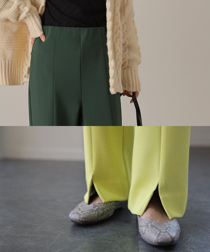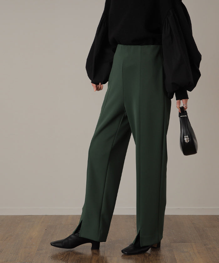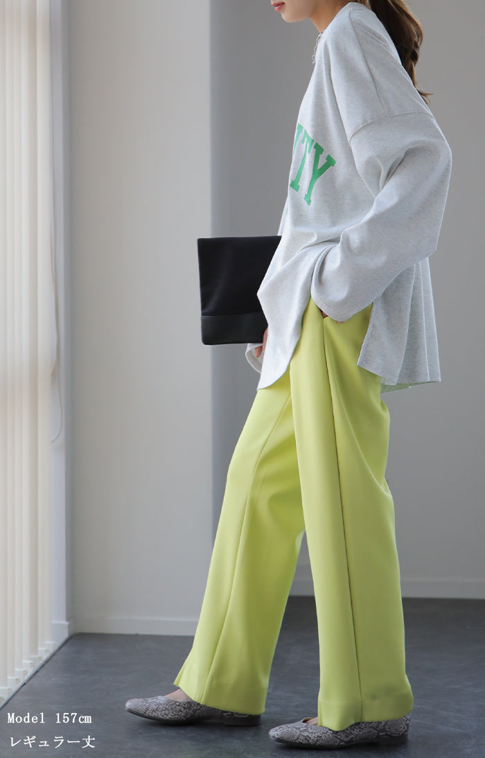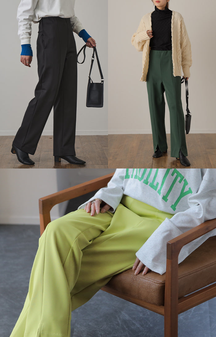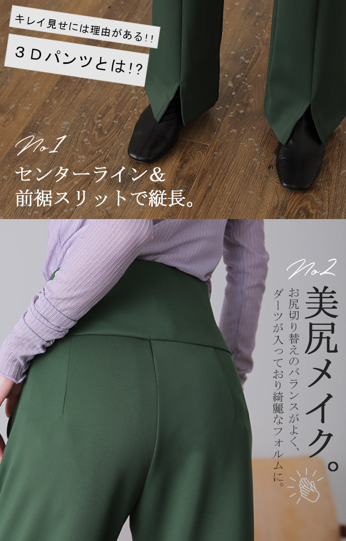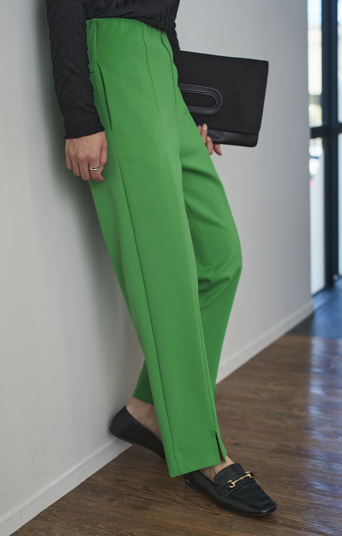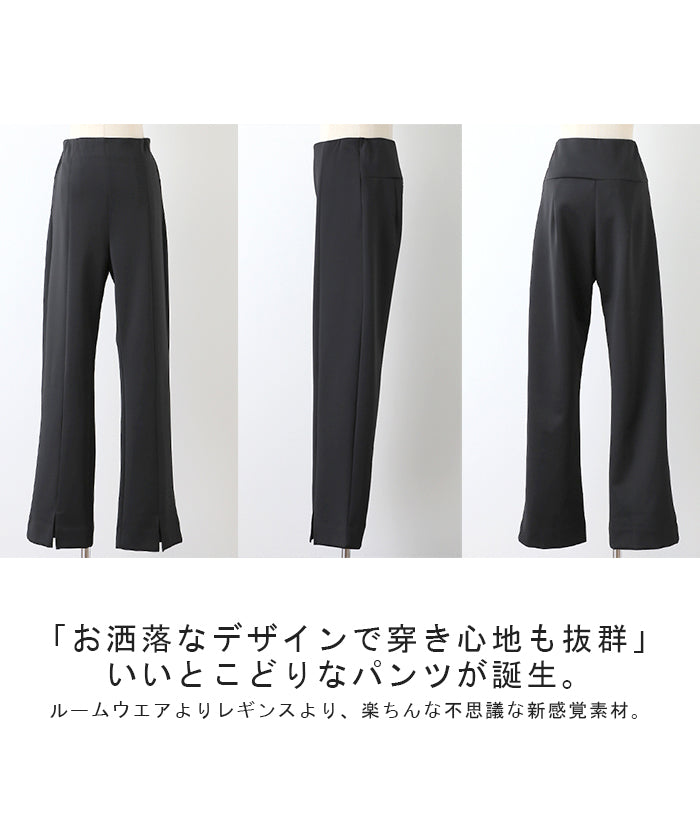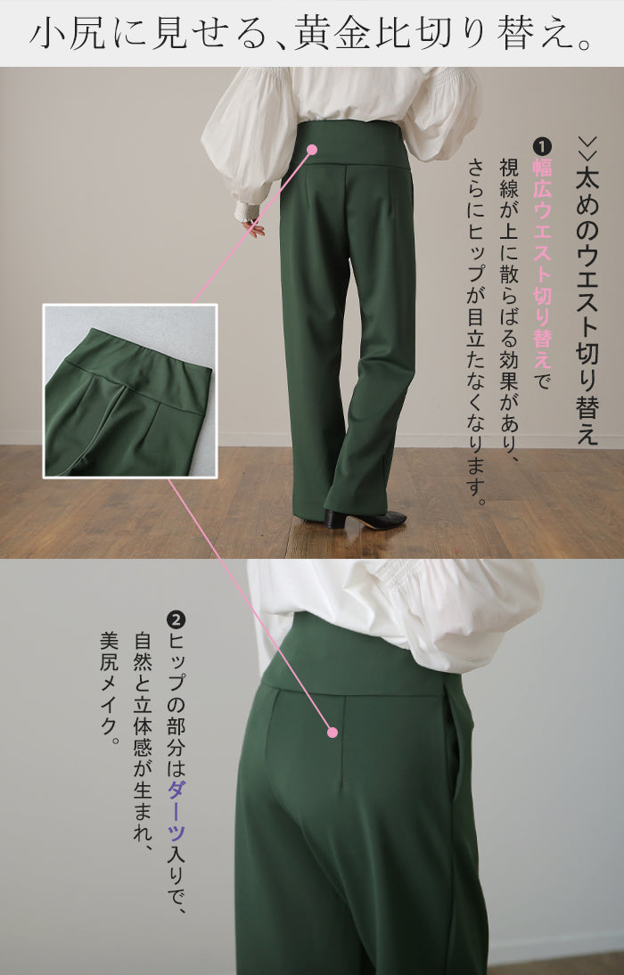 パンツ「ゼロG」履いてる感覚なし 美脚 きれいめ パンツ レディース 美尻 ボトムス イージーパンツ ストレートパンツ スリット センターライン ゴム ロング ストレッチ ワイド カラーパンツ グリーン センタープレス 大きいサイズ 春 夏 HUG.U メール便