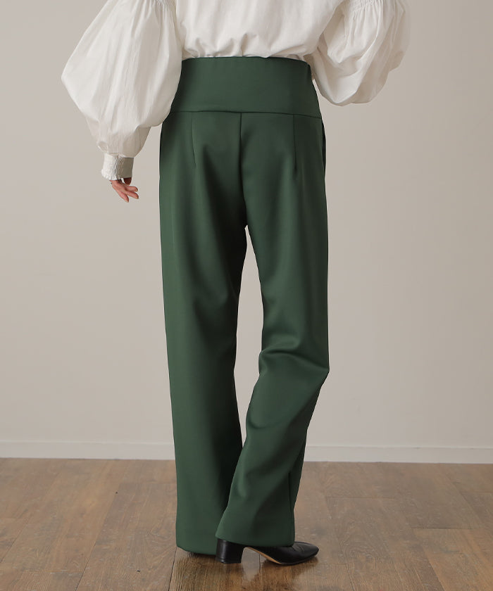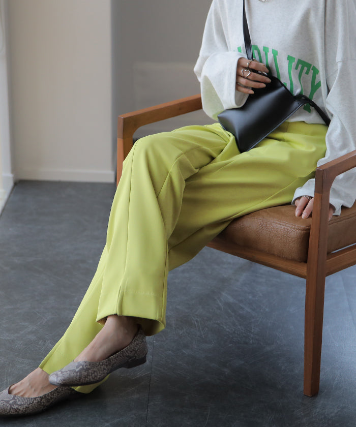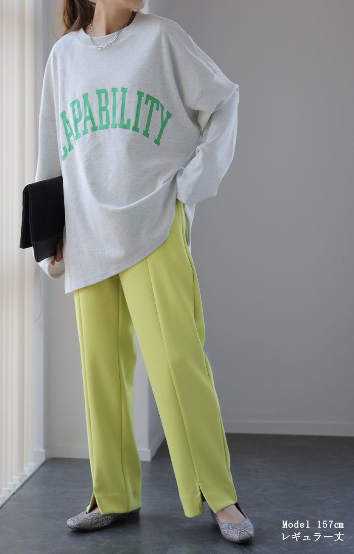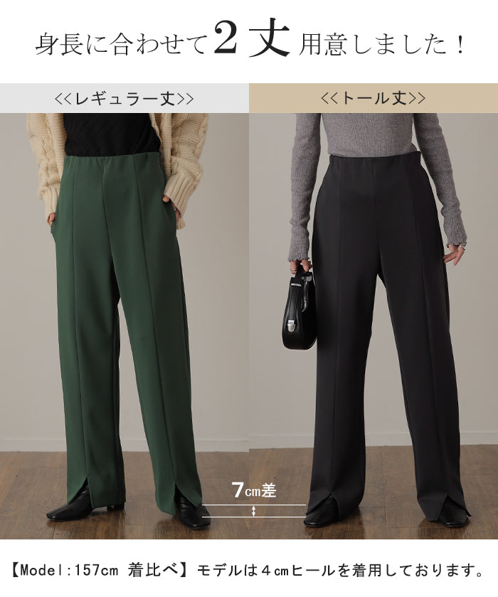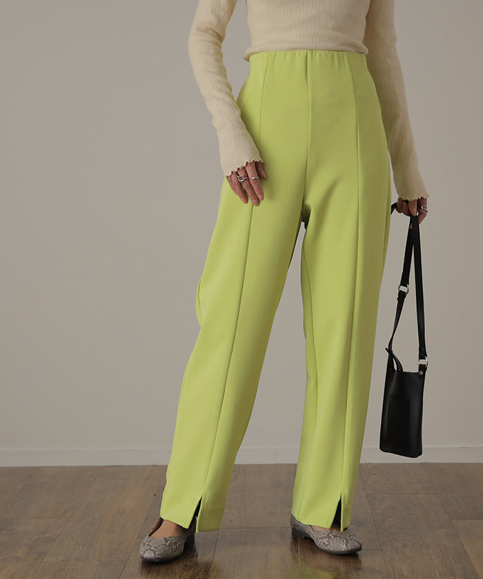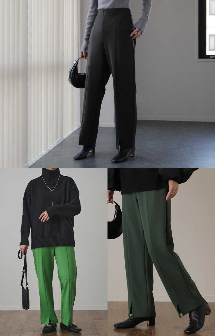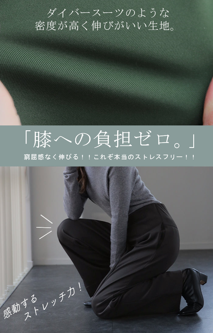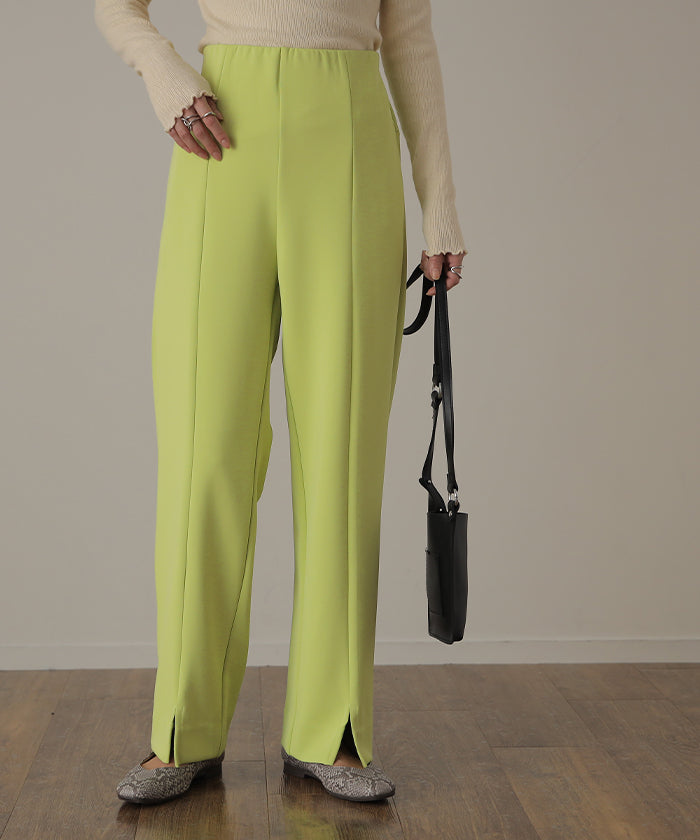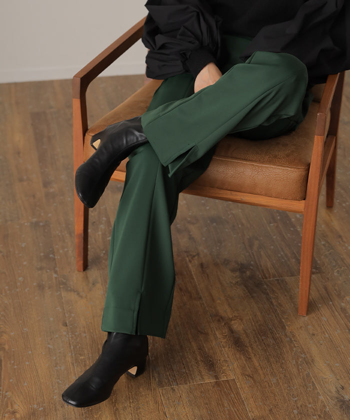 パンツ「ゼロG」履いてる感覚なし 美脚 きれいめ パンツ レディース 美尻 ボトムス イージーパンツ ストレートパンツ スリット センターライン ゴム ロング ストレッチ ワイド カラーパンツ グリーン センタープレス 大きいサイズ 春 夏 HUG.U メール便