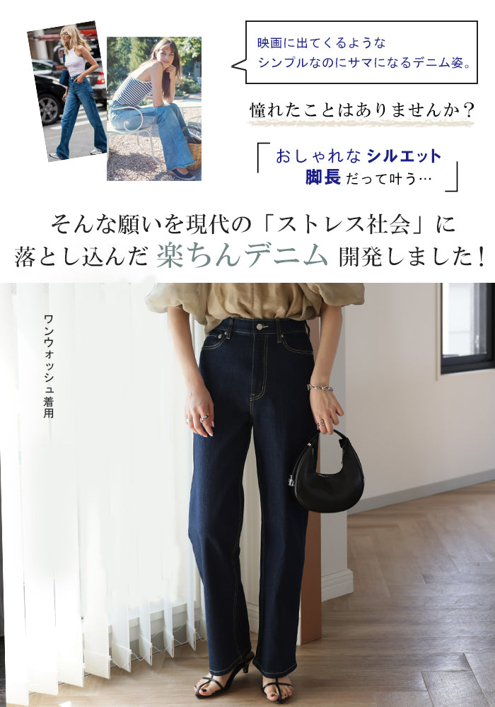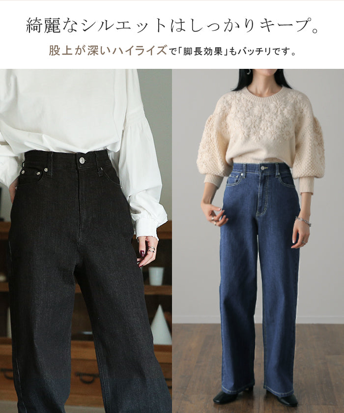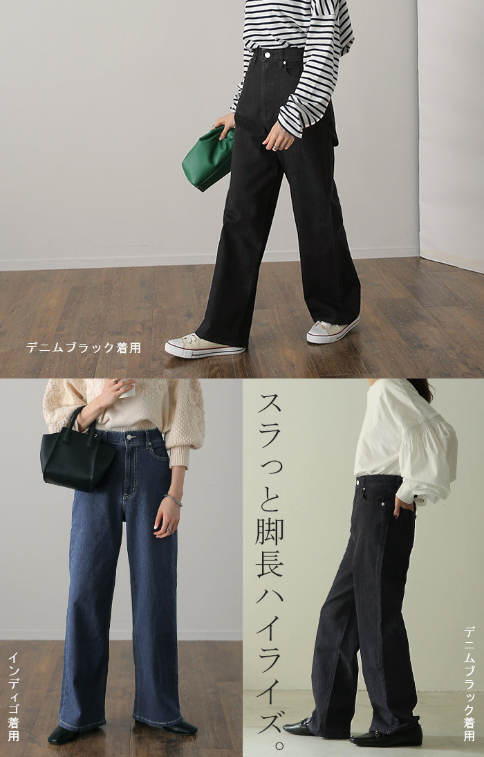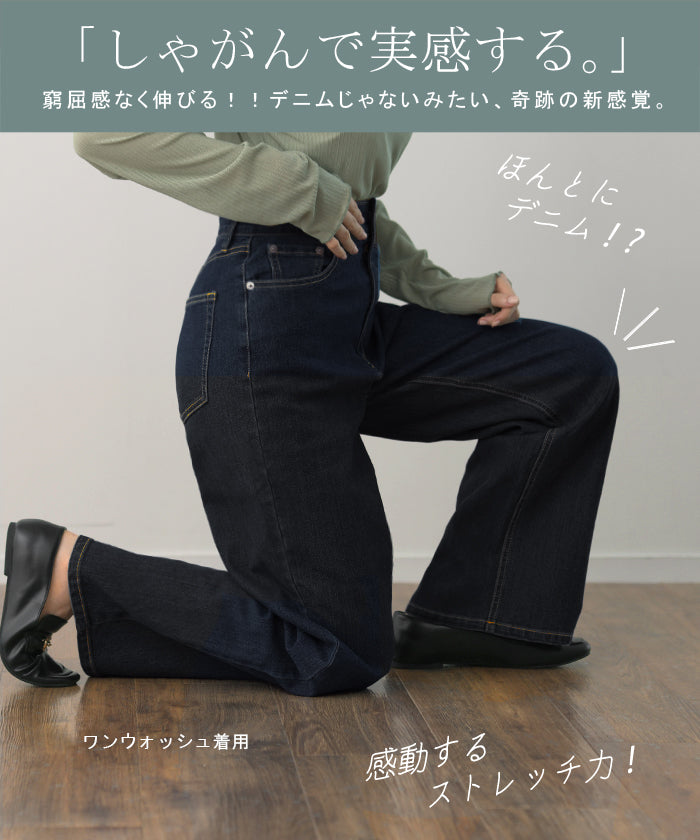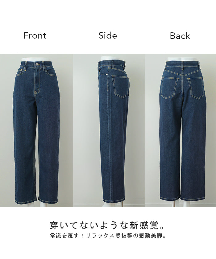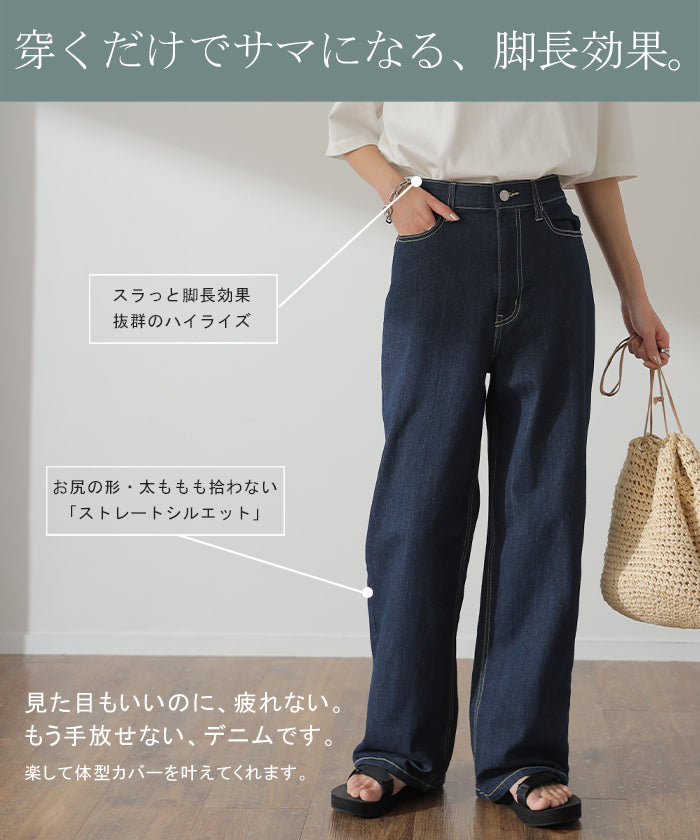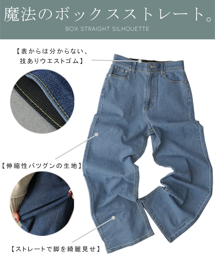 「新 感 覚」 ハイライズ デニム パンツ デニムパンツ レディース ワイドパンツ ワイド 大きいサイズ ジーンズ ジーパン 体型カバー ボトムス ストレート ズボン ゆったり ハイウエスト 伸びる ゴム ストレッチ 美脚 春 夏 HUG.U