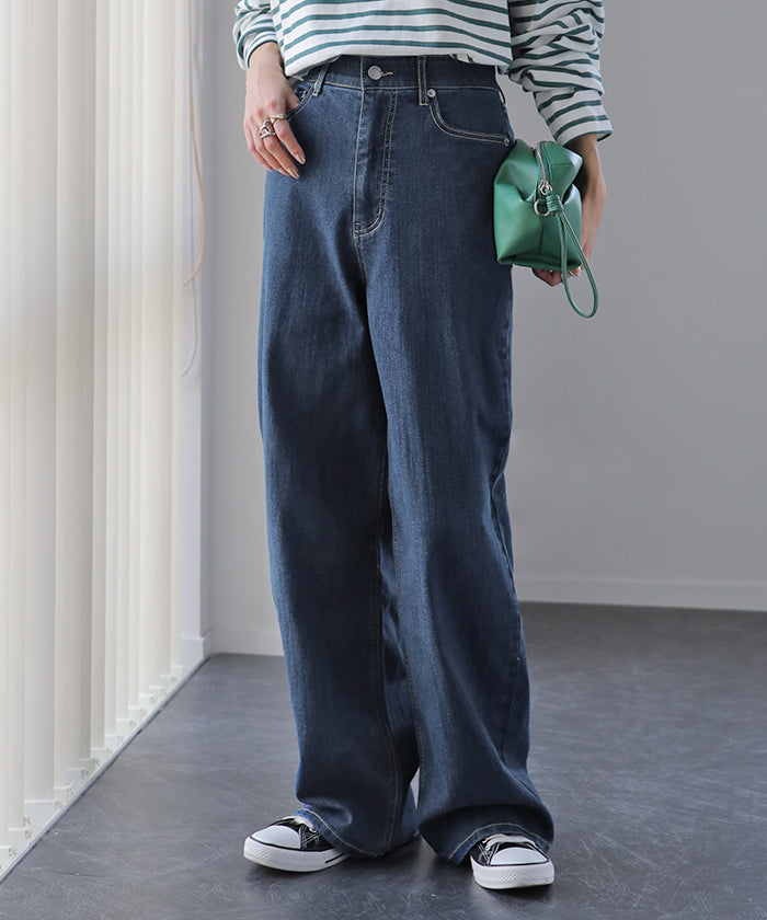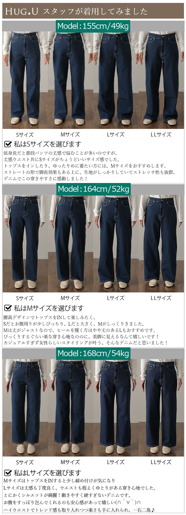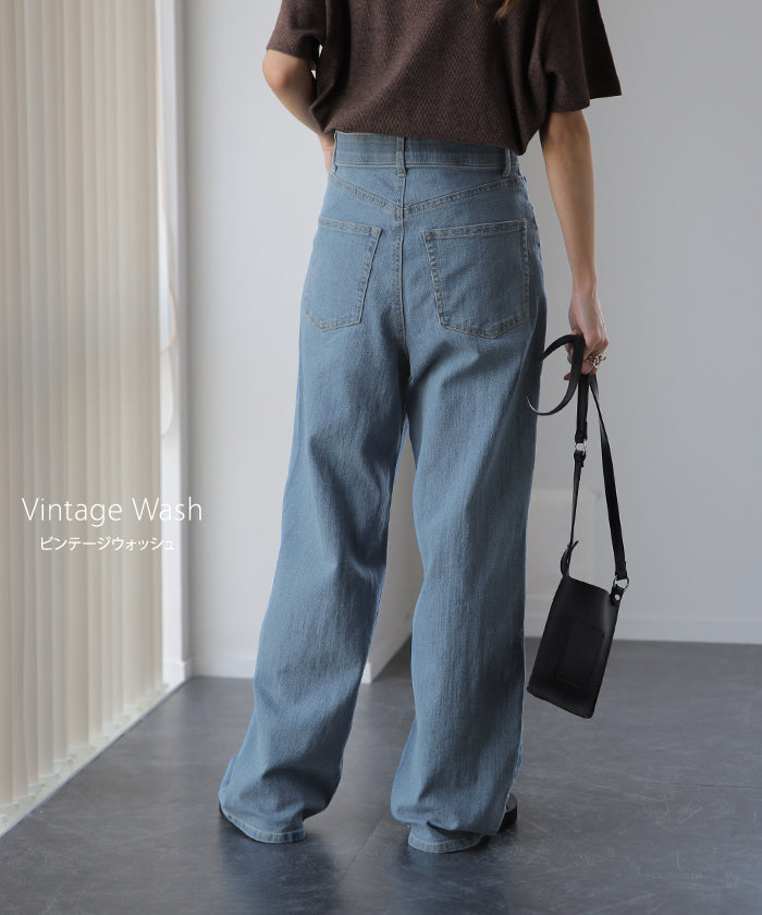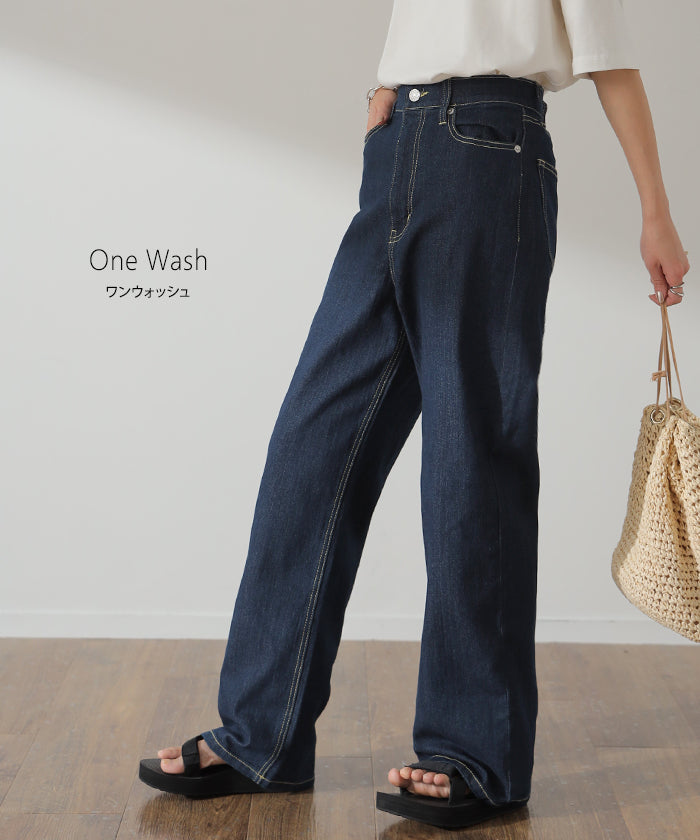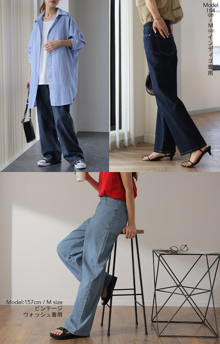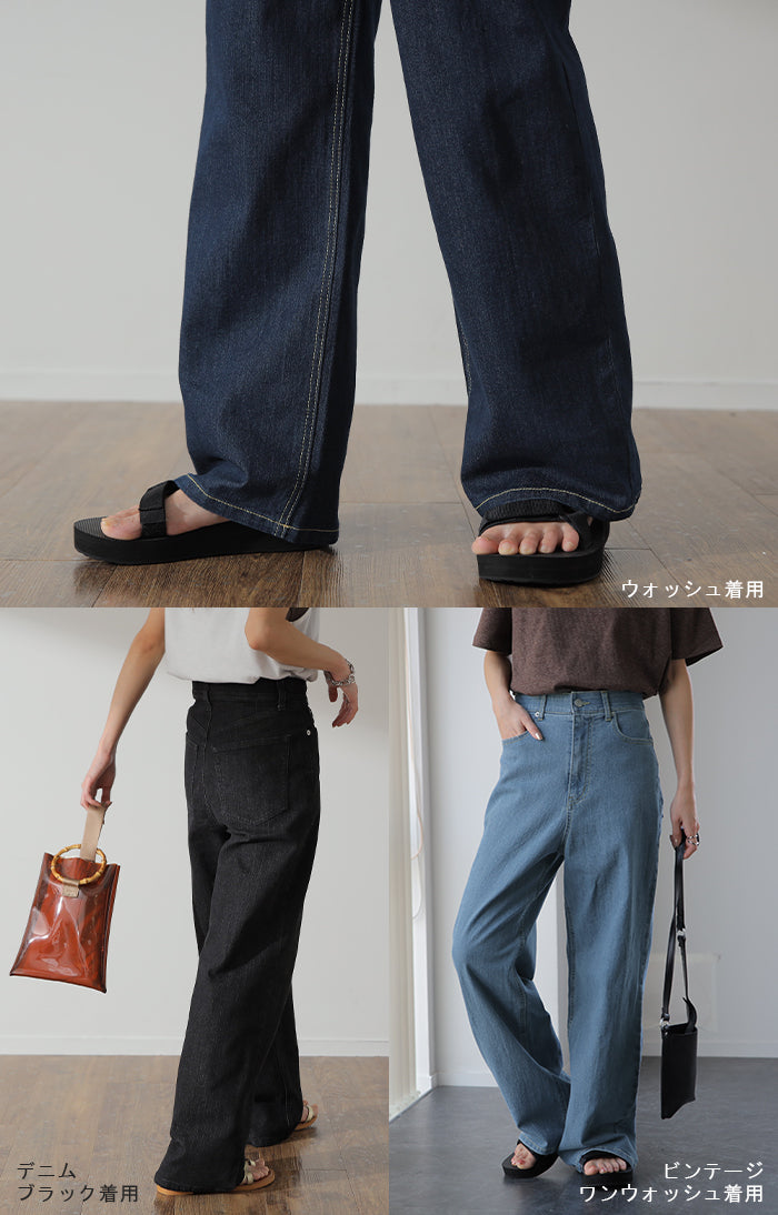 「新 感 覚」 ハイライズ デニム パンツ デニムパンツ レディース ワイドパンツ ワイド 大きいサイズ ジーンズ ジーパン 体型カバー ボトムス ストレート ズボン ゆったり ハイウエスト 伸びる ゴム ストレッチ 美脚 春 夏 HUG.U