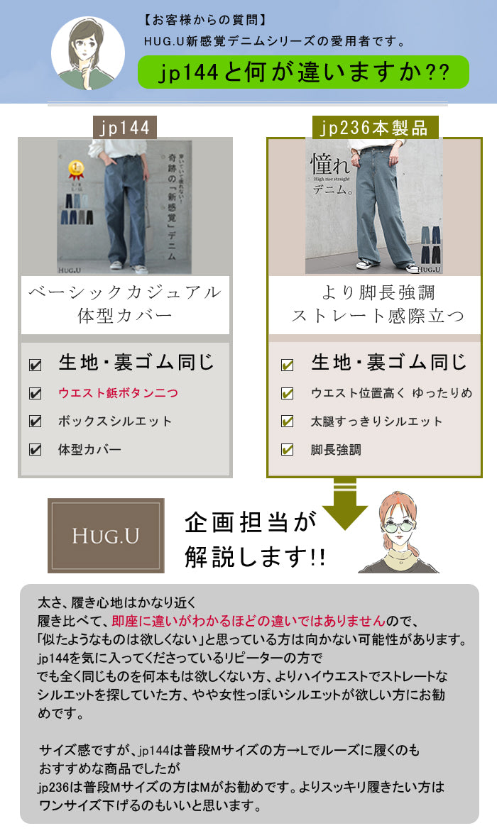 {"id":42282744742040,"title":"デニムブラック \/ S","option1":"デニムブラック","option2":"S","option3":null,"sku":"jp236BKS","requires_shipping":true,"taxable":true,"featured_image":{"id":52113626792088,"product_id":7471646343320,"position":32,"created_at":"2026-02-05T11:52:46+09:00","updated_at":"2026-02-05T11:52:49+09:00","alt":null,"width":700,"height":840,"src":"\/\/hug-u.2plus8.co.jp\/cdn\/shop\/files\/jp236-denimblack_a5792c49-8520-4a76-a778-7b5bc28b653c.jpg?v=1770259969","variant_ids":[42282744742040,42282744774808,42282744807576,42282744840344]},"available":true,"name":"「新 感 覚」 ハイライズ デニム パンツ デニムパンツ レディース ワイドパンツ ワイド 大きいサイズ ジーンズ ジーパン 体型カバー ボトムス ストレート ズボン ゆったり ハイウエスト 伸びる ゴム ストレッチ 美脚 春 夏 HUG.U - デニムブラック \/ S","public_title":"デニムブラック \/ S","options":["デニムブラック","S"],"price":397900,"weight":0,"compare_at_price":397900,"inventory_management":"shopify","barcode":null,"featured_media":{"alt":null,"id":43743109251224,"position":32,"preview_image":{"aspect_ratio":0.833,"height":840,"width":700,"src":"\/\/hug-u.2plus8.co.jp\/cdn\/shop\/files\/jp236-denimblack_a5792c49-8520-4a76-a778-7b5bc28b653c.jpg?v=1770259969"}},"requires_selling_plan":false,"selling_plan_allocations":[]}