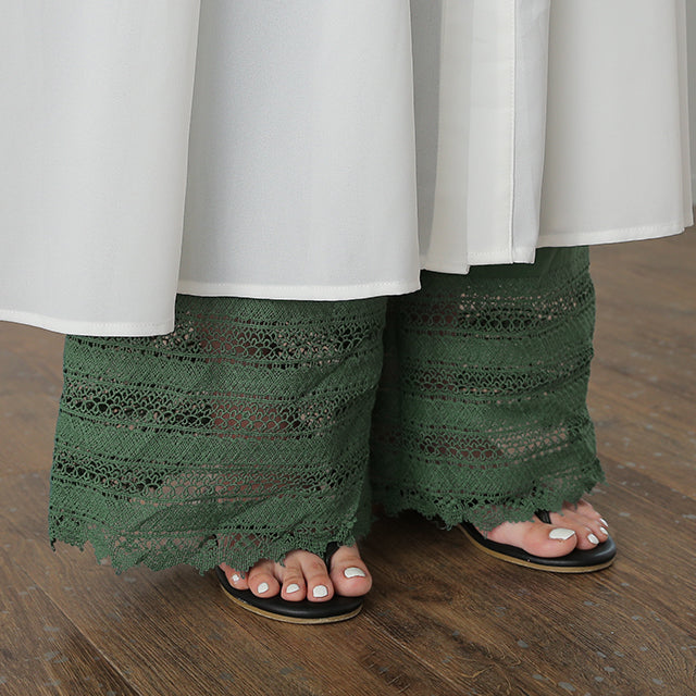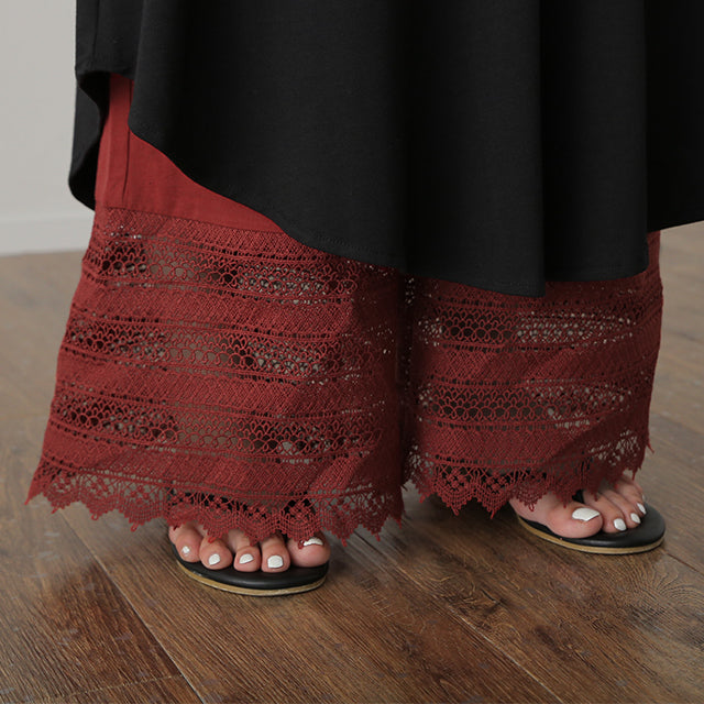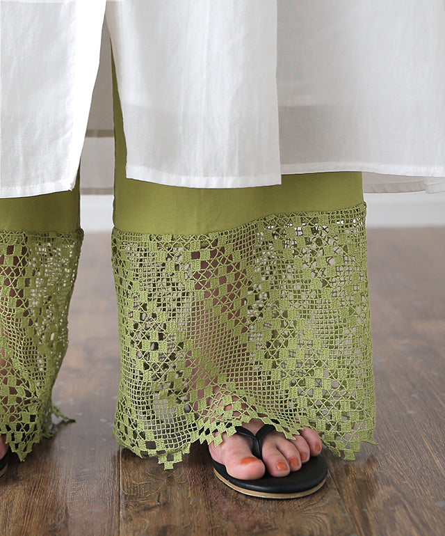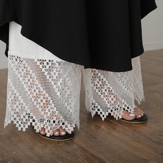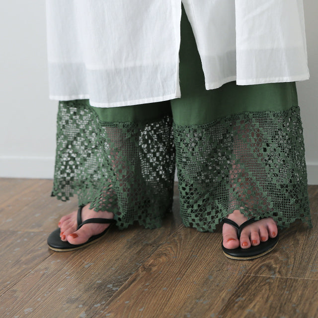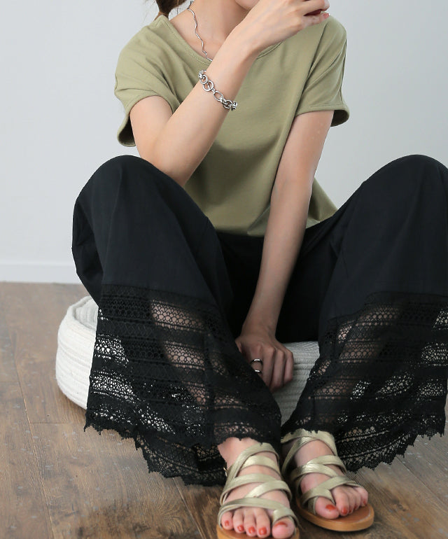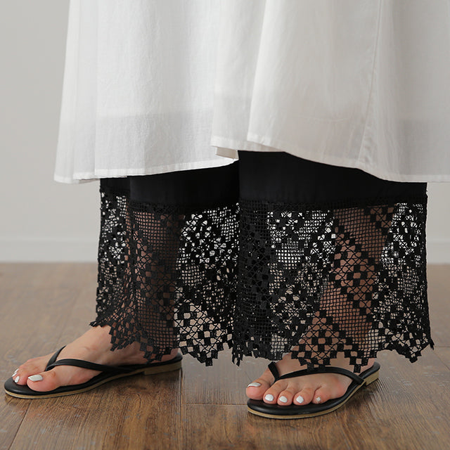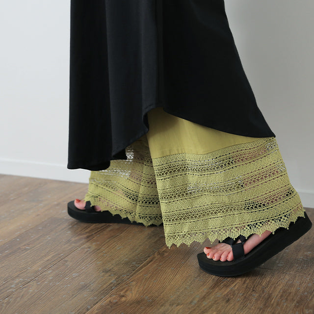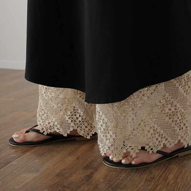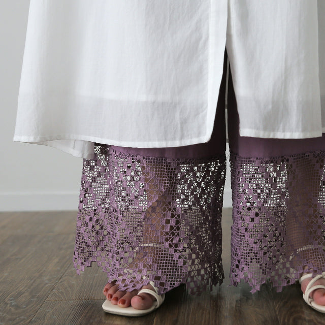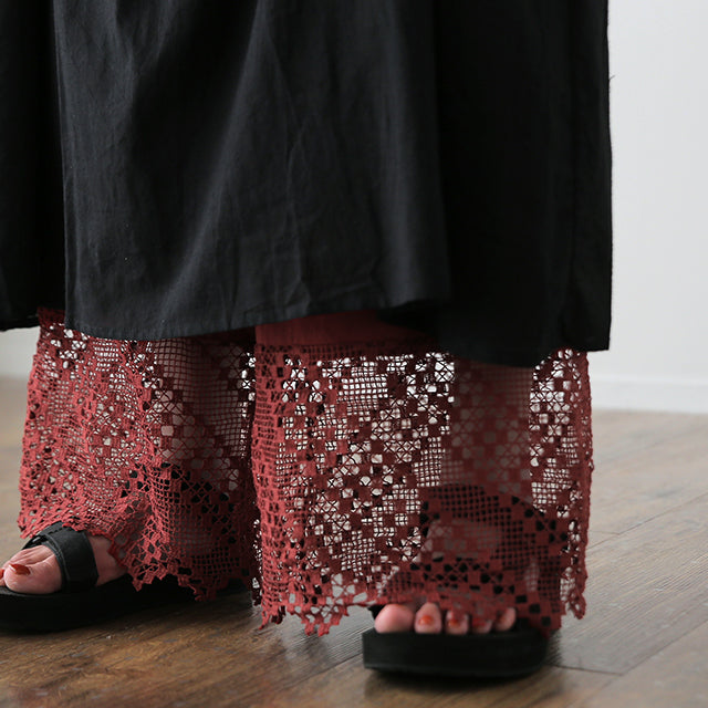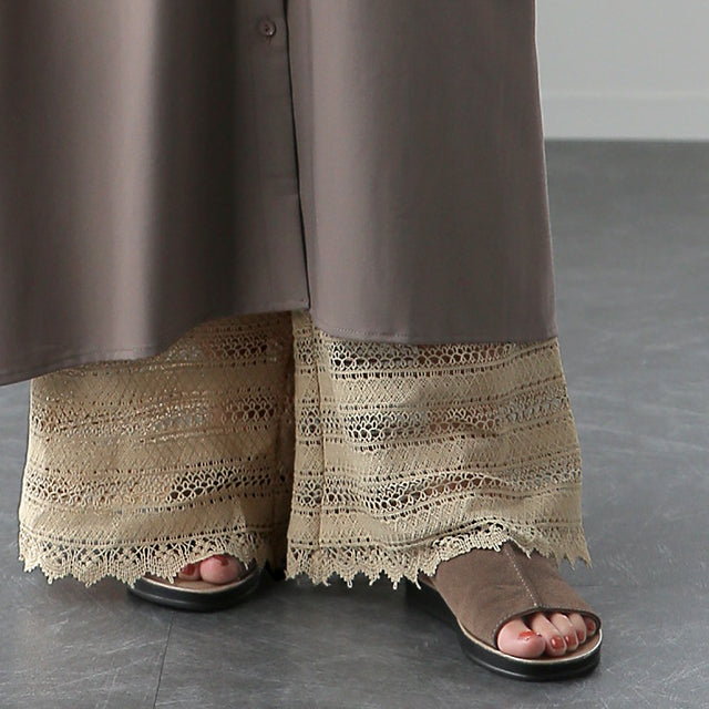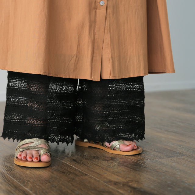 大人のレイヤードが華やぐ重ね着用ペチパンツ。 ゆったりワイドシルエットで着心地も楽々。 風を感じる裾レースで華やかにレイヤードを楽しむ1枚です。