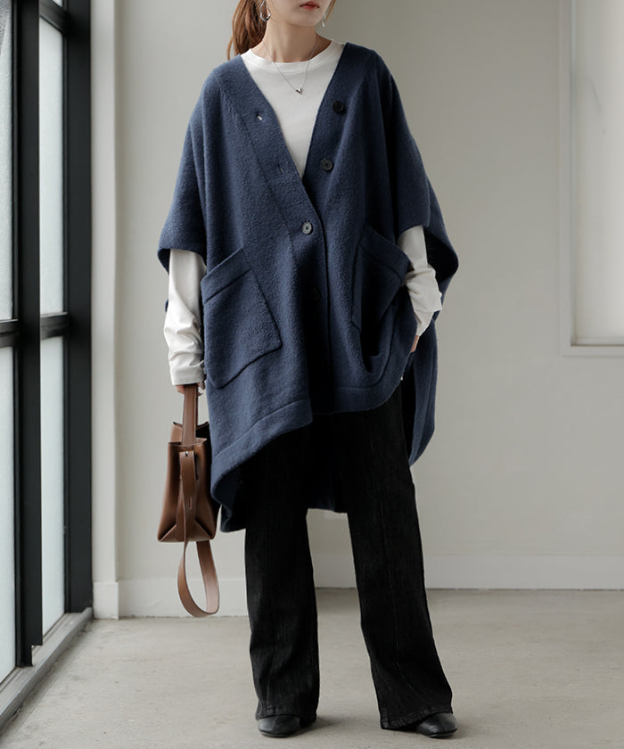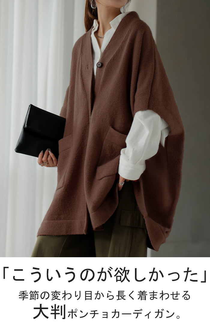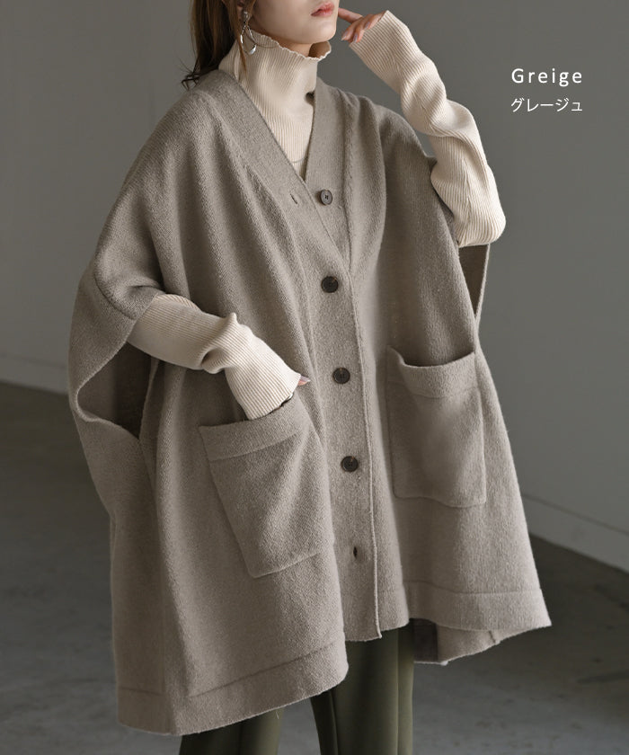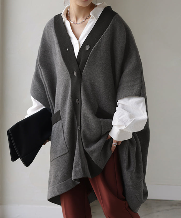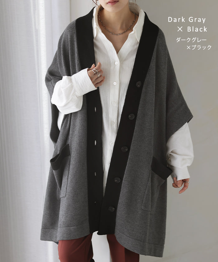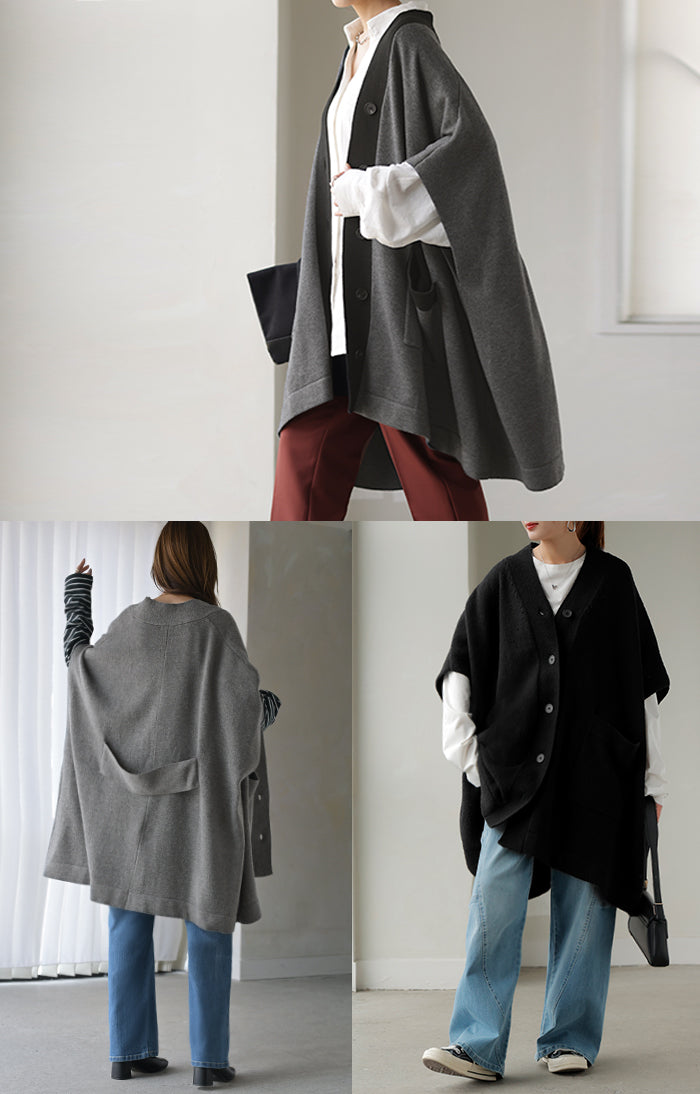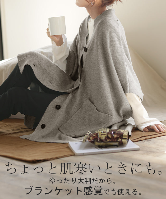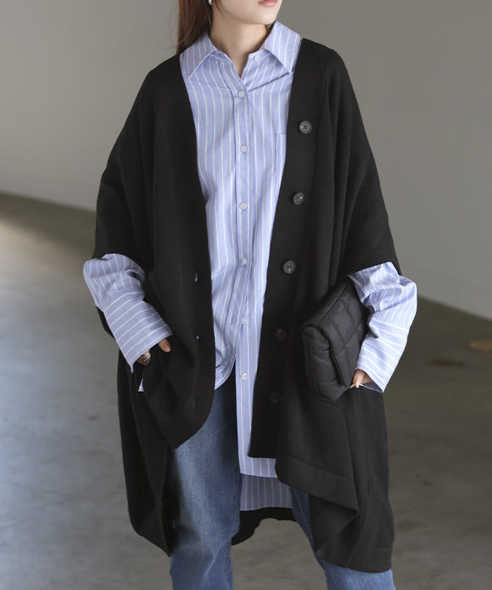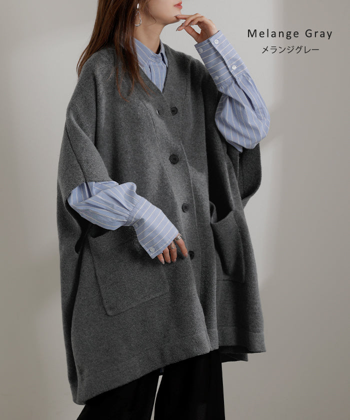 カーディガン ポンチョ ロング ■一部11月上旬入荷 レディース トップス アウター ニット ケープ Vネック レイヤード 重ね着 ロングカーディガン カーデ 半袖 お尻が隠れる 羽織 二の腕カバー オーバーサイズ オーバー 無地 体型カバー 大きいサイズ きれいめ ネイビー 黒 秋 冬 HUG.U
