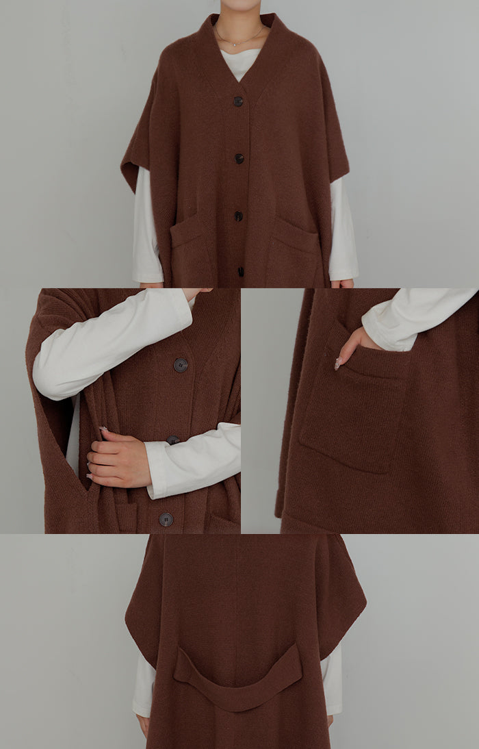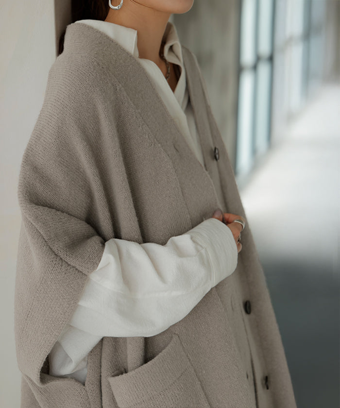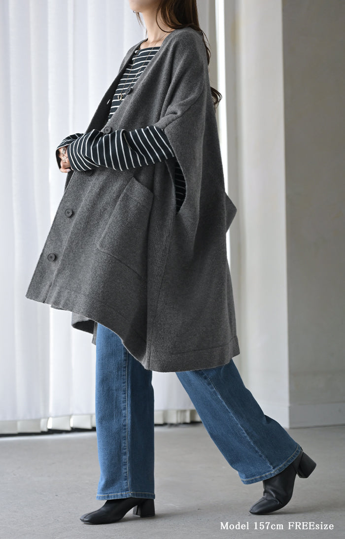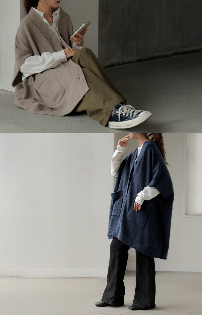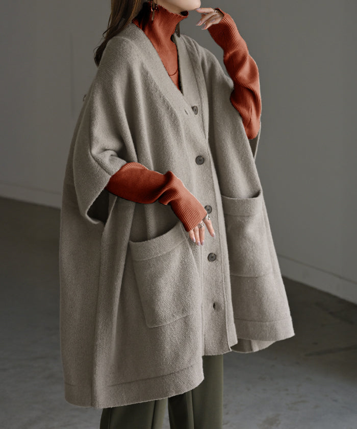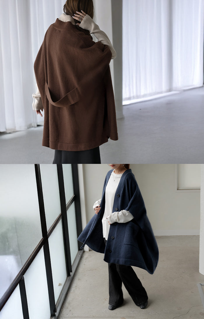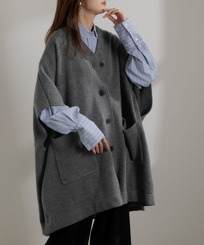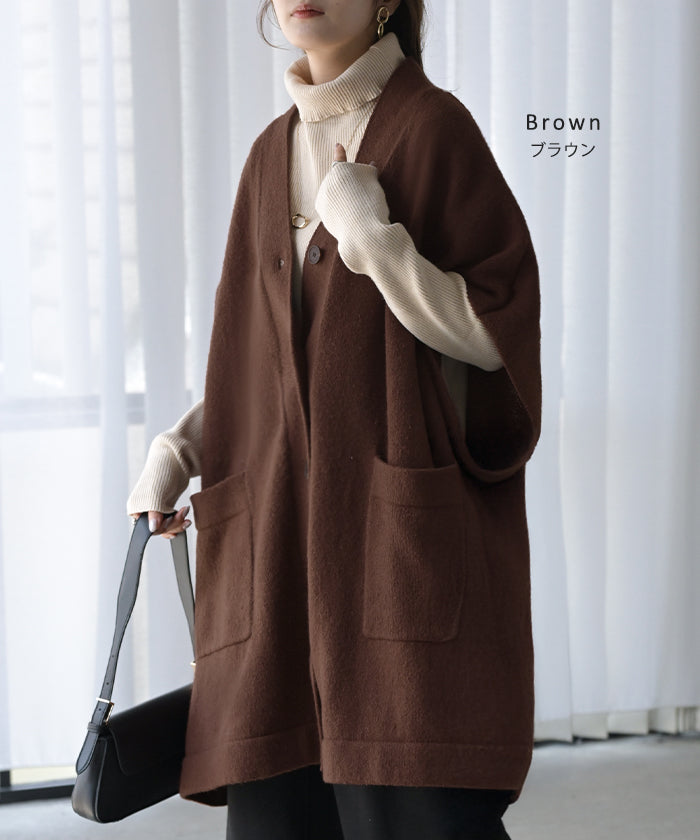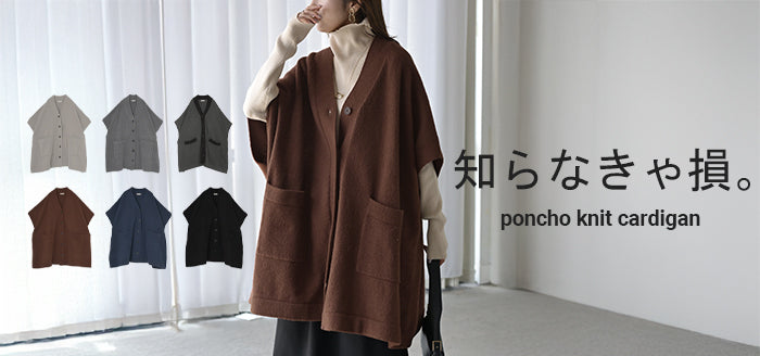カーディガン ポンチョ ロング ■一部11月上旬入荷 レディース トップス アウター ニット ケープ Vネック レイヤード 重ね着 ロングカーディガン カーデ 半袖 お尻が隠れる 羽織 二の腕カバー オーバーサイズ オーバー 無地 体型カバー 大きいサイズ きれいめ ネイビー 黒 秋 冬 HUG.U