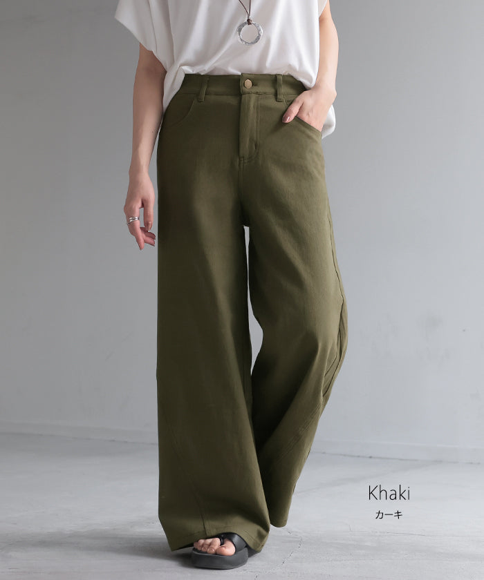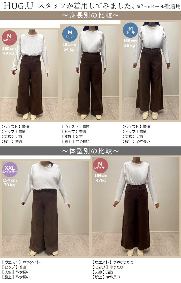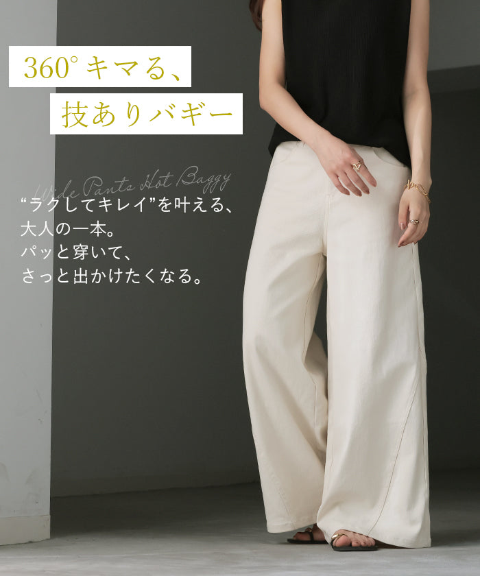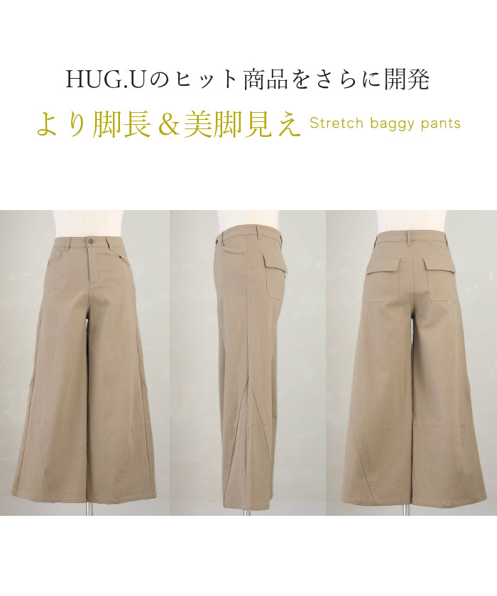 パンツ ワイド レディース 選べる 丈 ■一部4月中旬入荷 バギー ワイドパンツ 綿 混 ロング ロングパンツ チノパン 体型カバー ボトムス ボトム ストレート ズボン ゆったり ハイウエスト ストレッチ ウエストゴム 美脚 大きいサイズ カジュアル 黒 白 春 夏 HUG.U