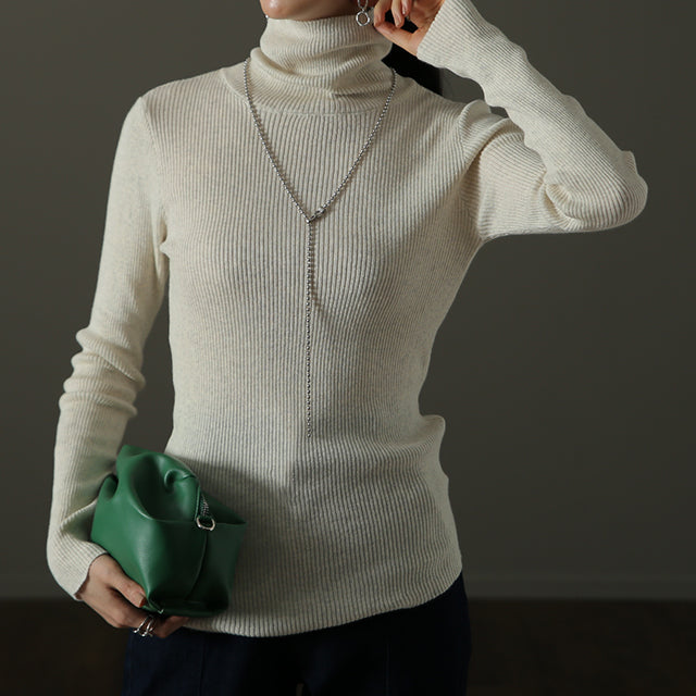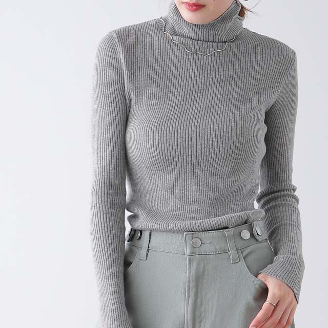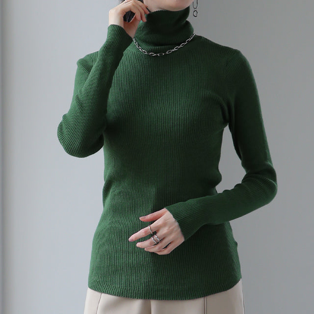 汎用性の高いシンプルなハイネックのリブプルオーバー。 体のラインに沿ってすっきりとしたシルエットを作り出します。 ボトムやシーンを選ばないシンプルデザインなので毎日でも着たい頼れるアイテムです。 ※ニットの特性上、実際の製品の寸法とサイズ表記に差が生じることがございます。予めご了承下さいませ。