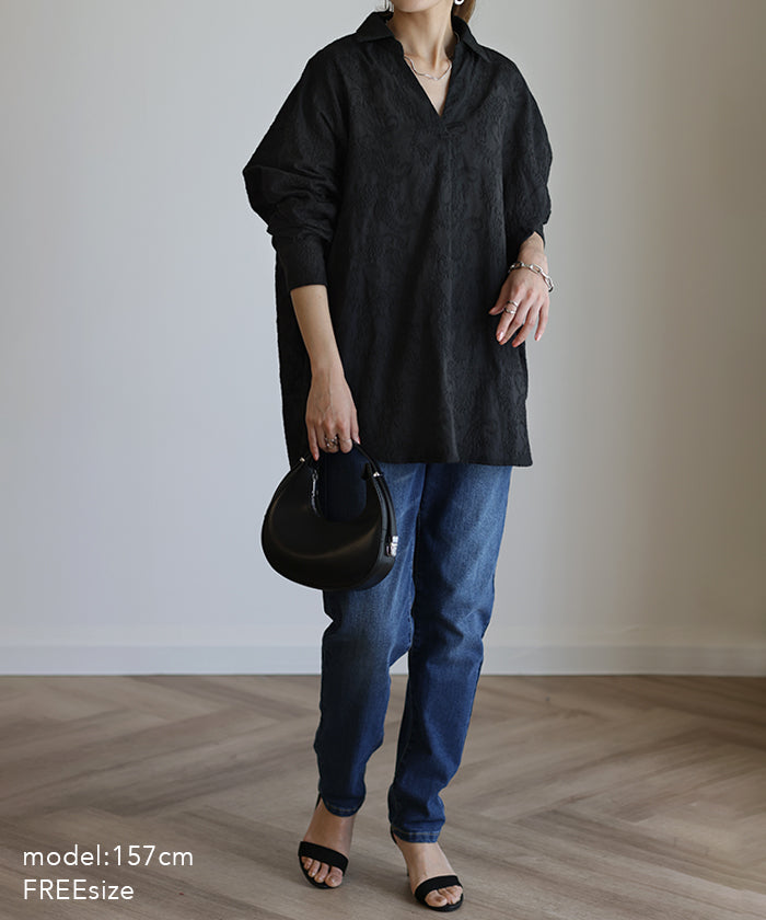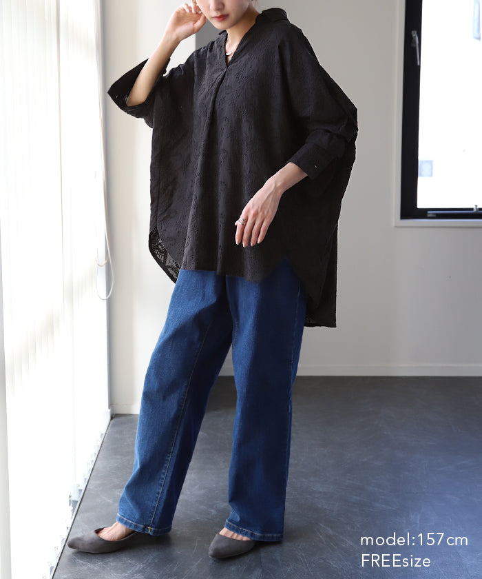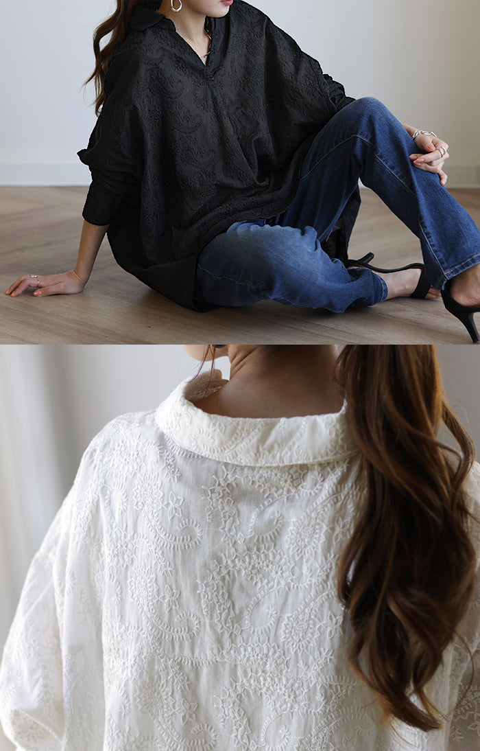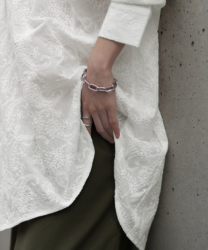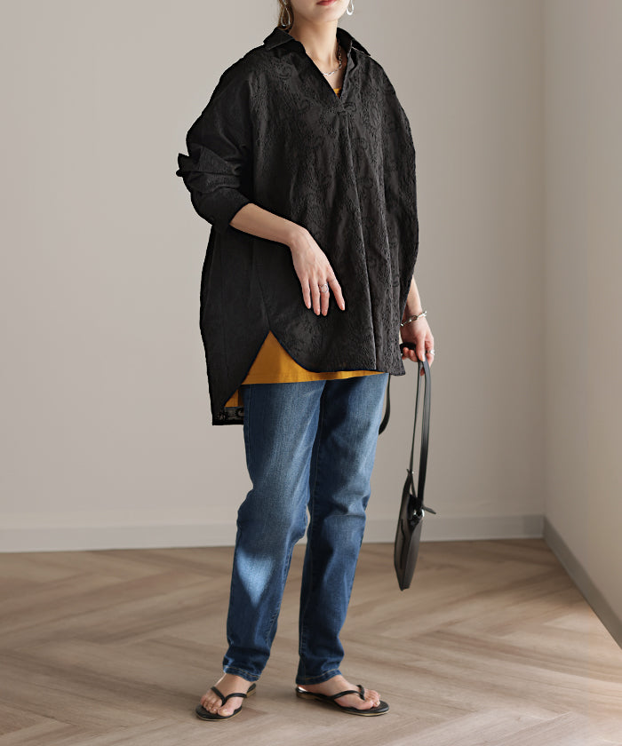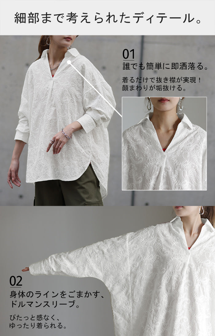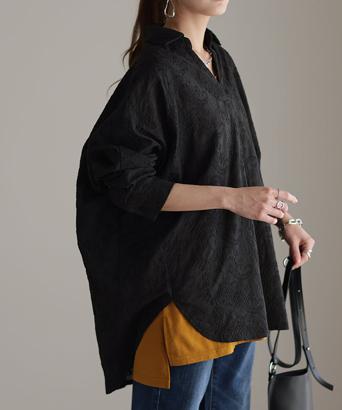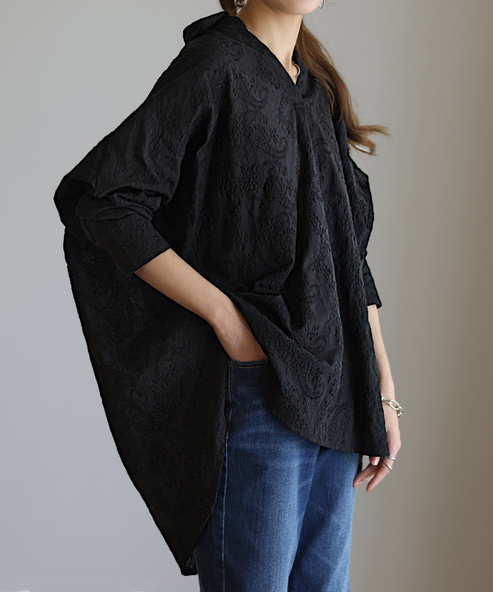 高級感のある刺繍を贅沢に施したプルオーバーブラウスです。トレンドのシアー素材もひと手間加えた刺繍で周りと差のつくスタイリングに。デザイン性がありながらもワントーンなので、柄物ボトムとも合わせるのもお勧めです。■モデル着用アイテム ⇒ パンツ■モデル着用アイテム ⇒ パンツ■モデル着用アイテム ⇒ インナー / パンツ■モデル着用アイテム ⇒ ブレスレット / リング■モデル着用アイテム ⇒ パンツ■モデル着用アイテム ⇒ パンツ※モデル着用商品は在庫切れ・販売終了・リンク切れの場合がございます。