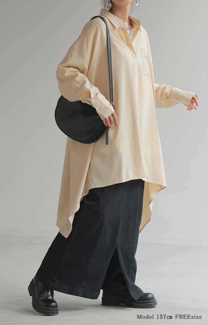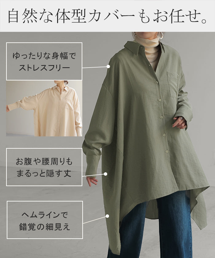 体型カバーとあるように体型カバーは出来たけど、袖口のボタンがギリギリ。細い人なら余裕ある感じでしょうがギリギリだった。首周りも小さかったけど開ければ問題無い。