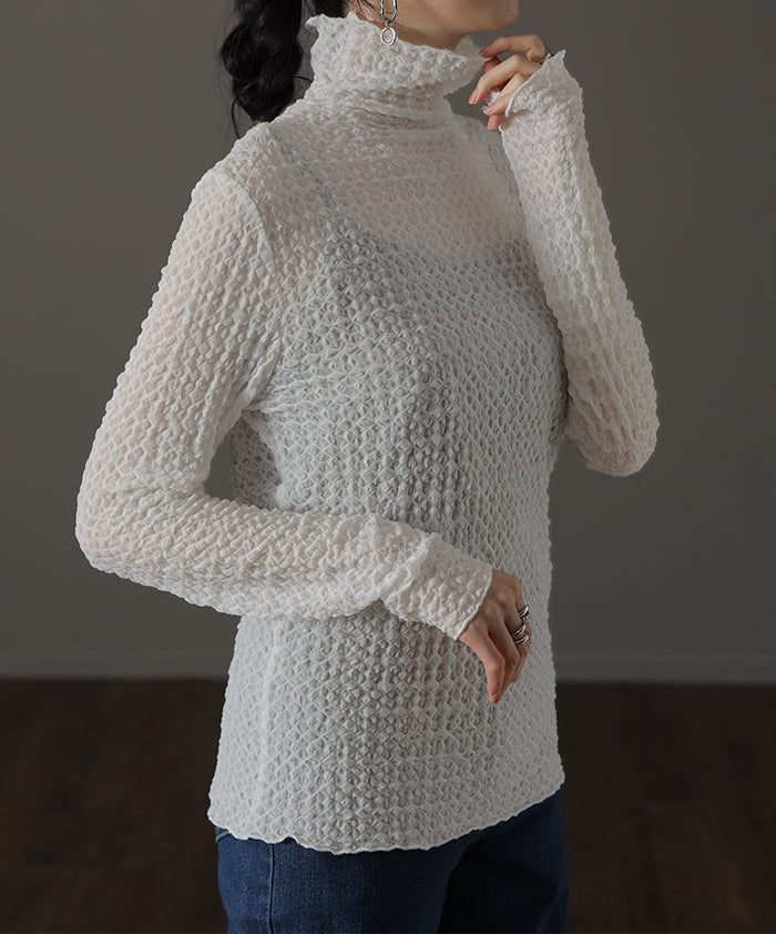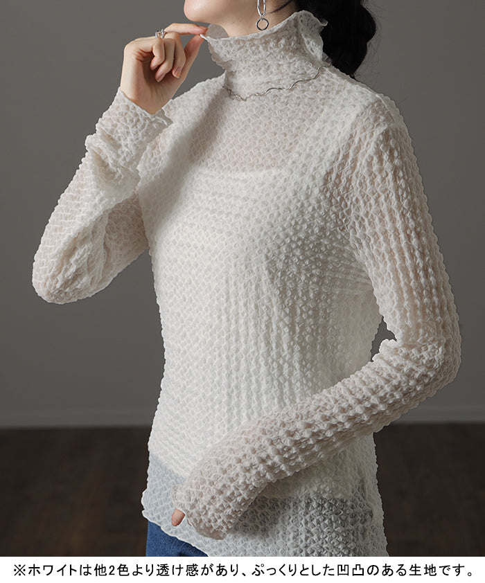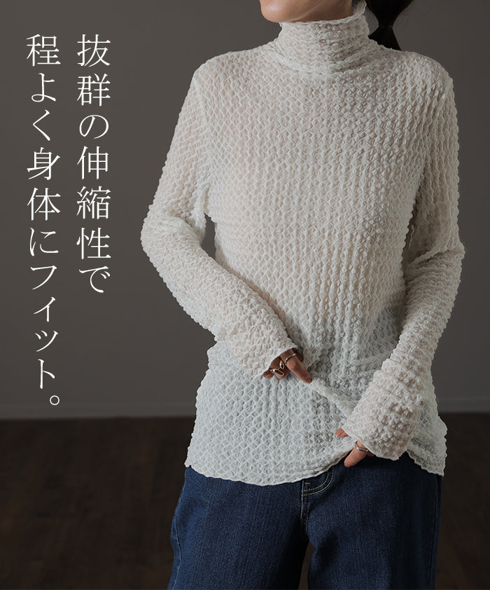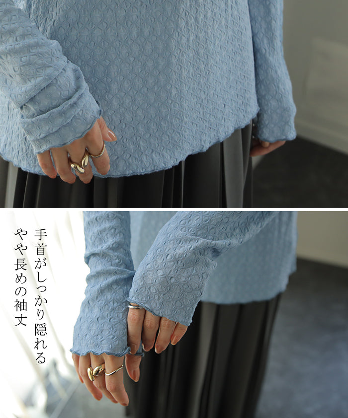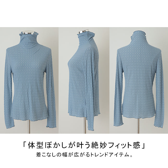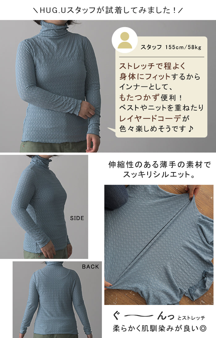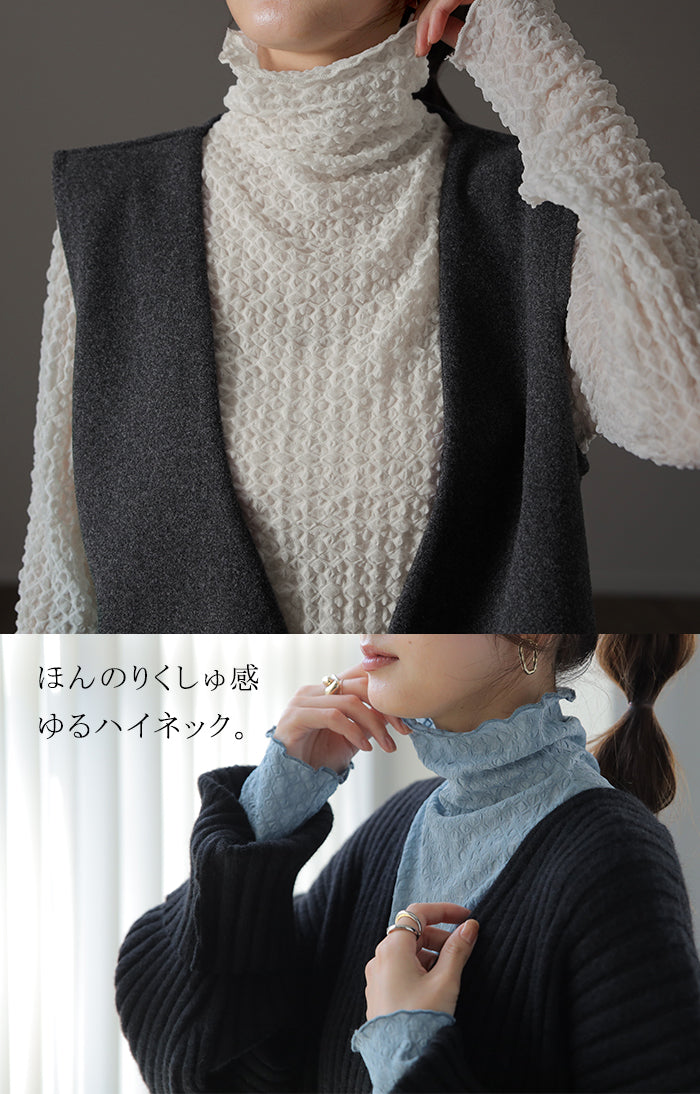 シボ感がたまらない抜け感たっぷりのハイネックシアートップスです。やわらかで伸縮性のある素材なので着心地良くラインをキレイに見せてくれます。ハイネックデザインなのでインナーとして首元だけ出したレイヤードスタイルもおすすめです。■モデル着用アイテム ⇒ トップス / ネックレス■モデル着用アイテム ⇒ ワンピース■モデル着用アイテム ⇒ リング■モデル着用アイテム ⇒ トップス / パンツ■モデル着用アイテム(左) ⇒ トップス■モデル着用アイテム(右) ⇒ トップス■モデル着用アイテム ⇒ パンツ※モデル着用商品は在庫切れ・販売終了・リンク切れの場合がございます。
