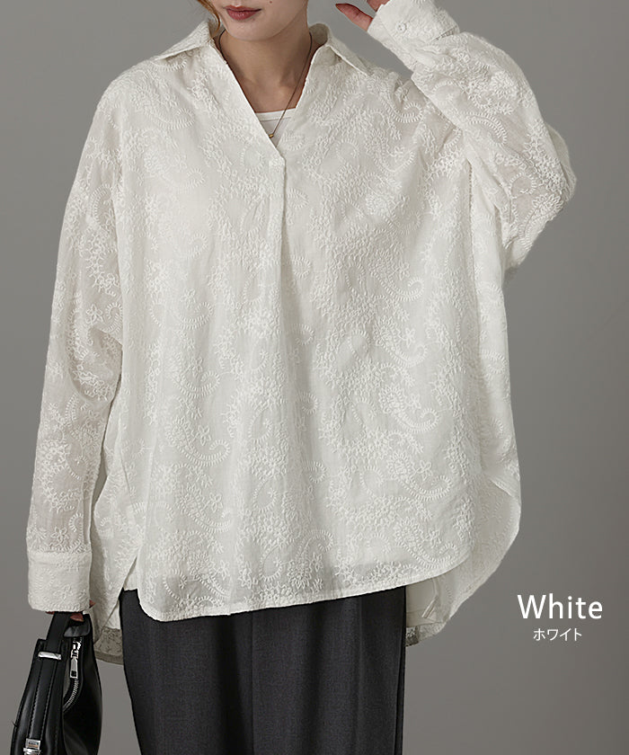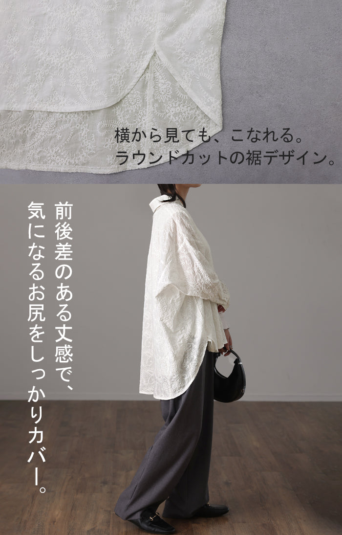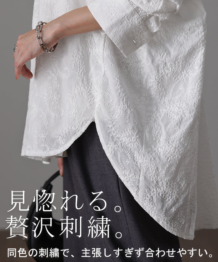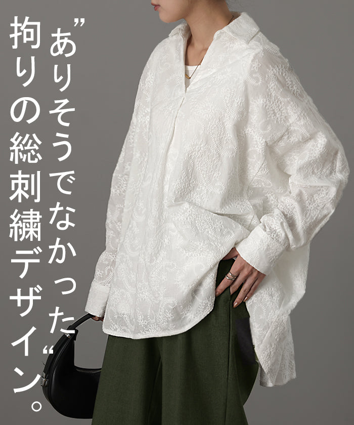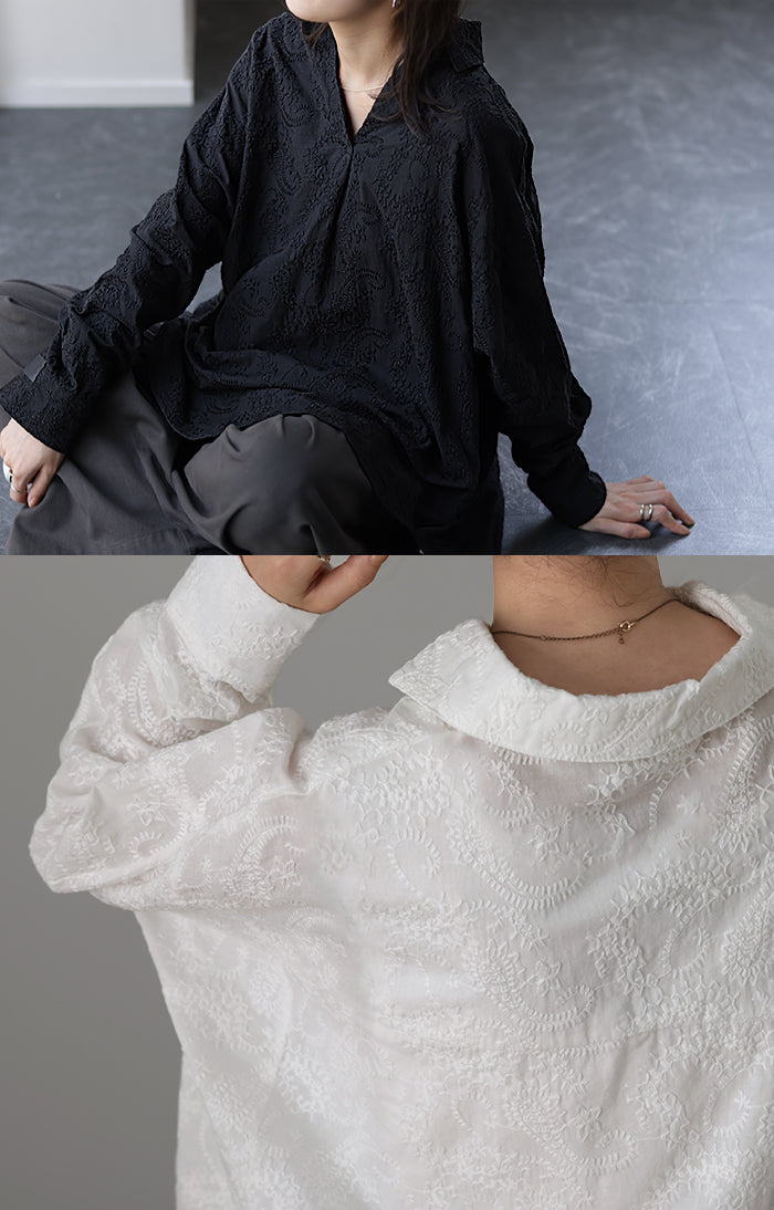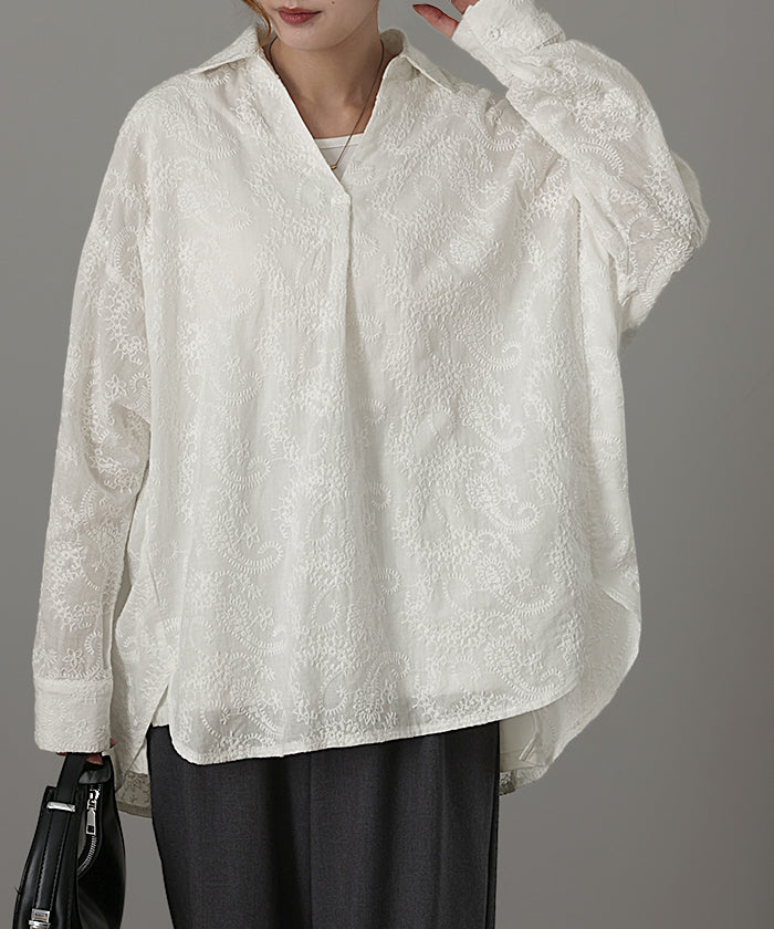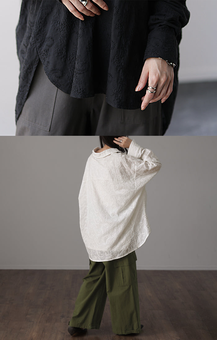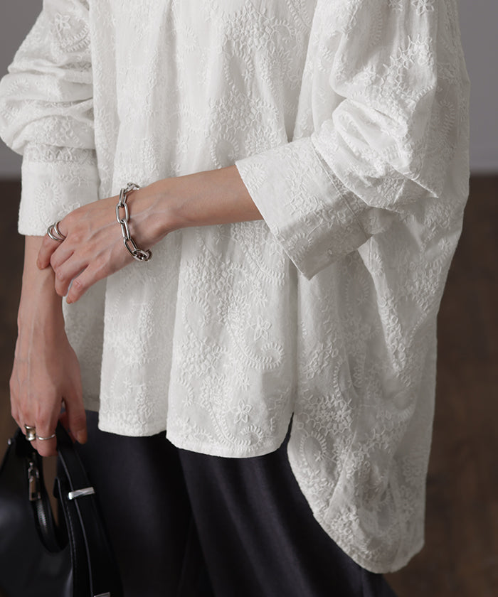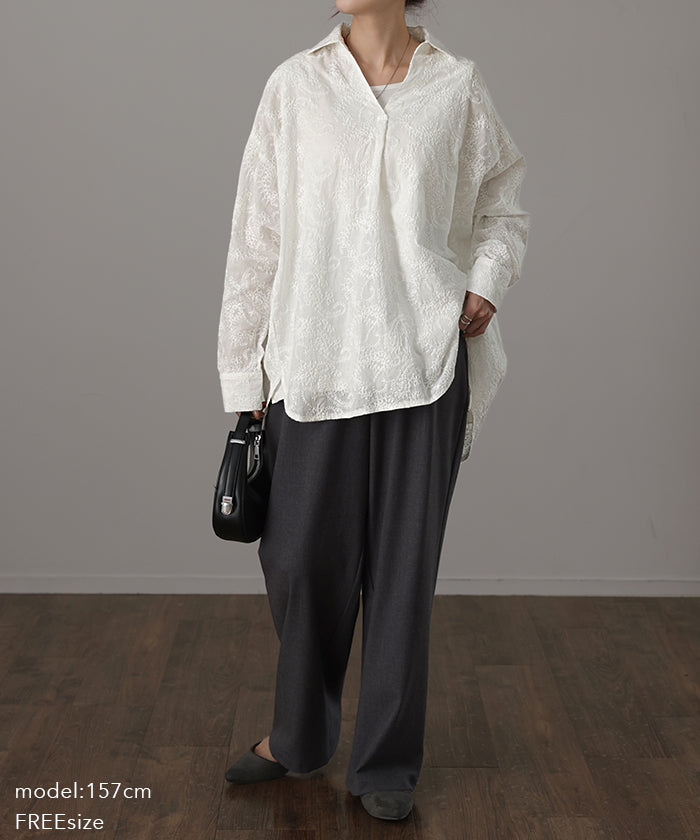 高級感のある刺繍を贅沢に施したプルオーバーブラウスです。トレンドのシアー素材もひと手間加えた刺繍で周りと差のつくスタイリングに。デザイン性がありながらもワントーンなので、柄物ボトムとも合わせるのもお勧めです。■モデル着用アイテム ⇒ パンツ■モデル着用アイテム ⇒ パンツ■モデル着用アイテム ⇒ インナー / パンツ■モデル着用アイテム ⇒ ブレスレット / リング■モデル着用アイテム ⇒ パンツ■モデル着用アイテム ⇒ パンツ※モデル着用商品は在庫切れ・販売終了・リンク切れの場合がございます。