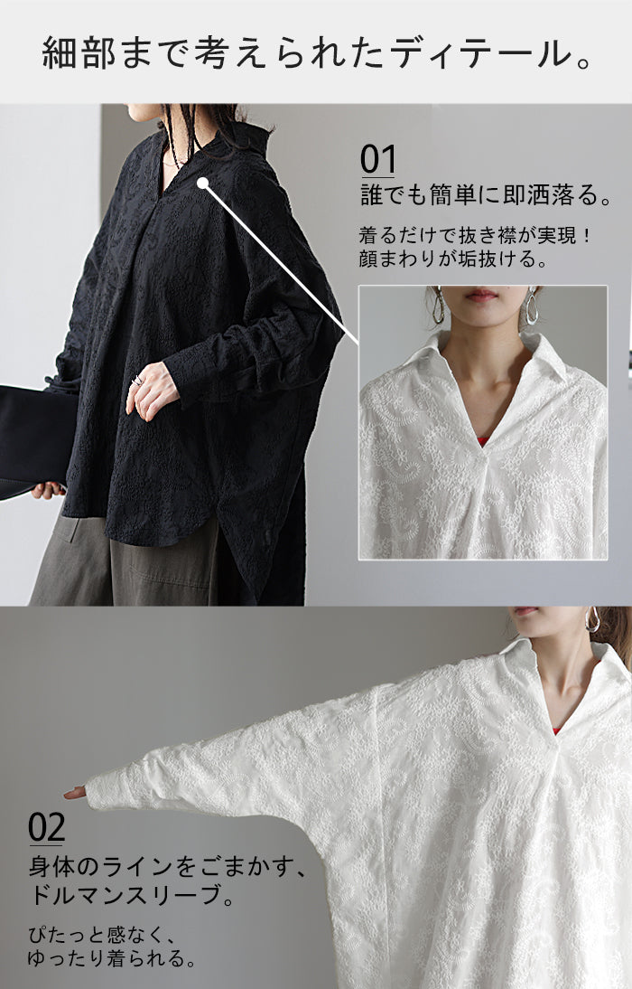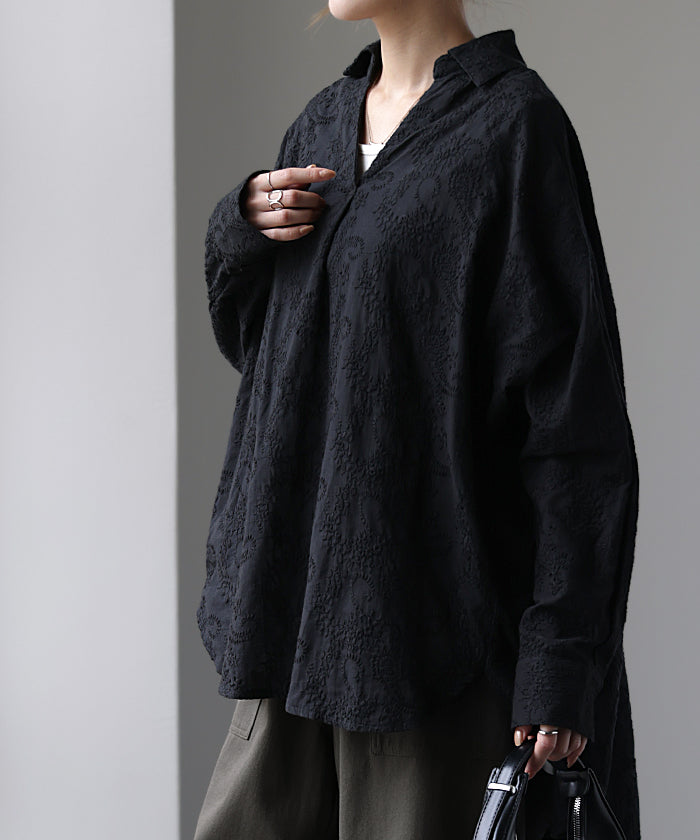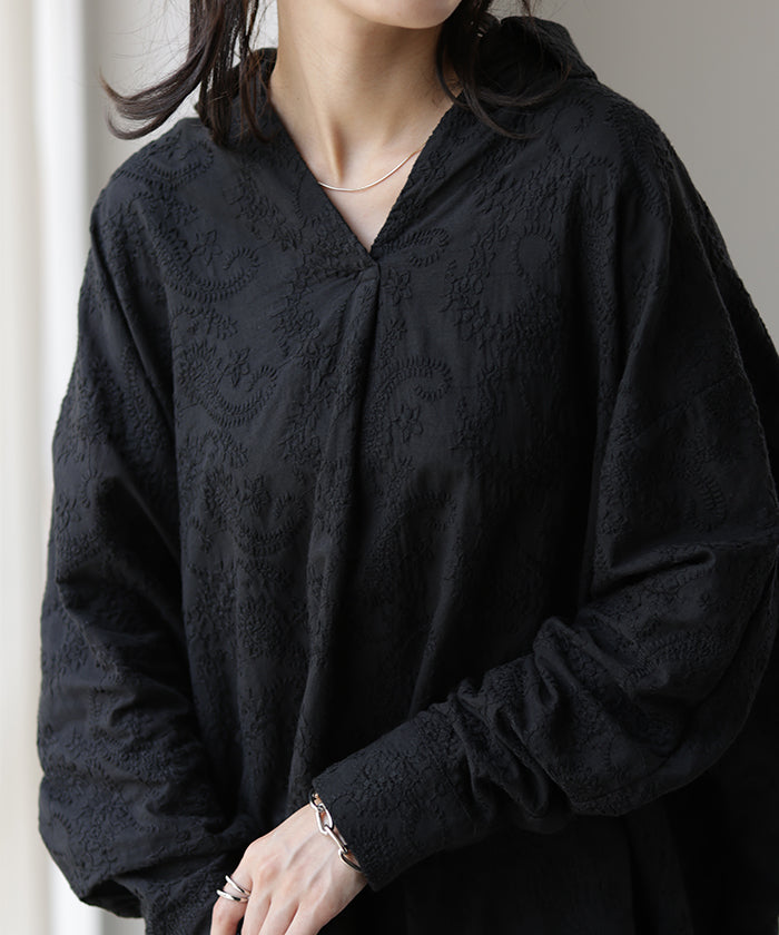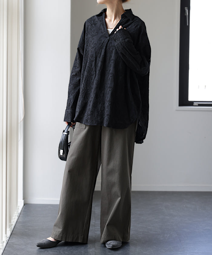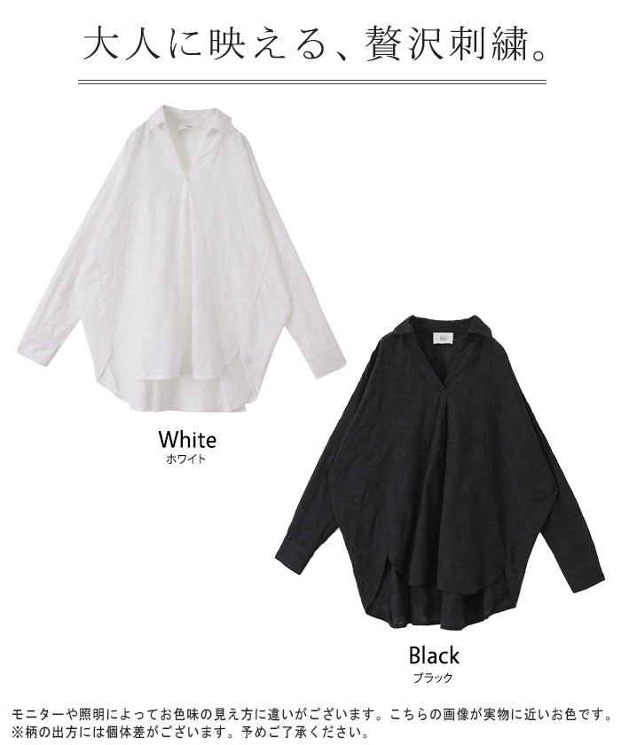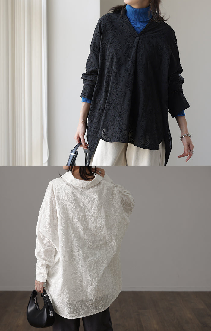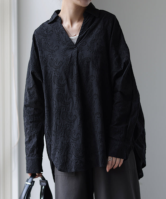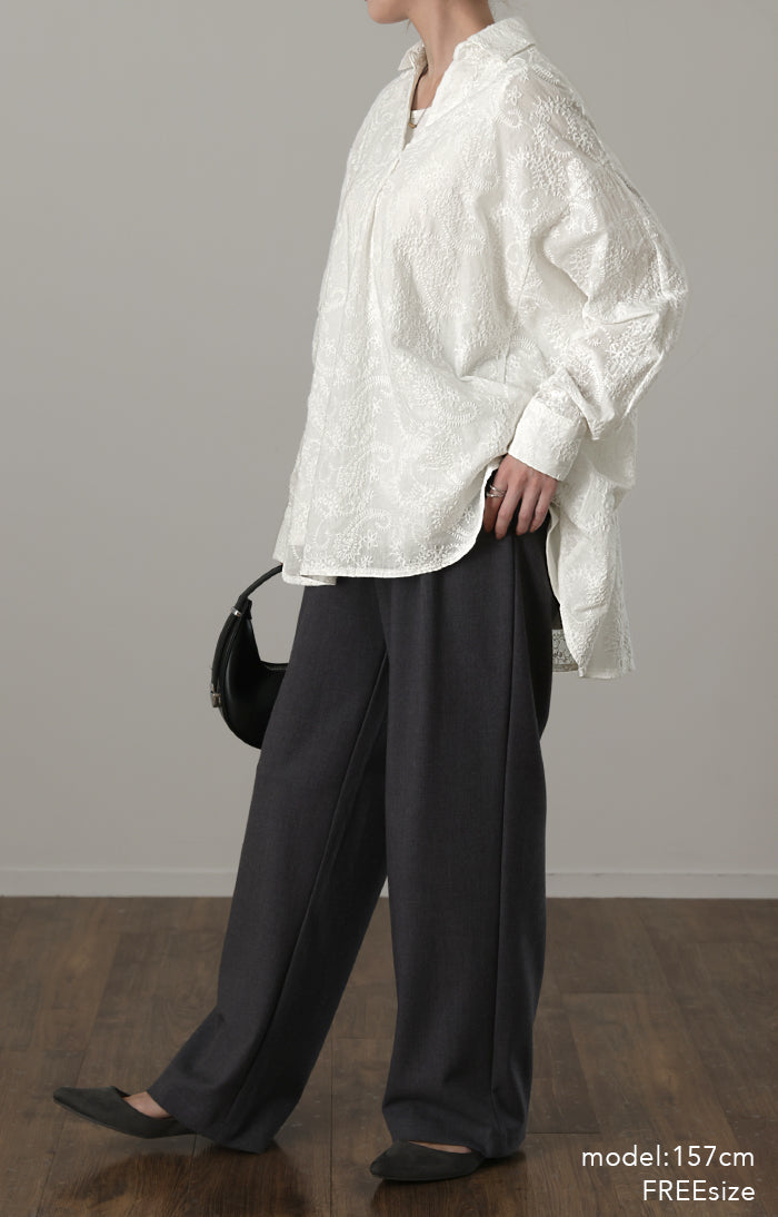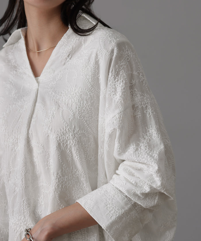 高級感のある刺繍を贅沢に施したプルオーバーブラウスです。トレンドのシアー素材もひと手間加えた刺繍で周りと差のつくスタイリングに。デザイン性がありながらもワントーンなので、柄物ボトムとも合わせるのもお勧めです。■モデル着用アイテム ⇒ パンツ■モデル着用アイテム ⇒ パンツ■モデル着用アイテム ⇒ インナー / パンツ■モデル着用アイテム ⇒ ブレスレット / リング■モデル着用アイテム ⇒ パンツ■モデル着用アイテム ⇒ パンツ※モデル着用商品は在庫切れ・販売終了・リンク切れの場合がございます。