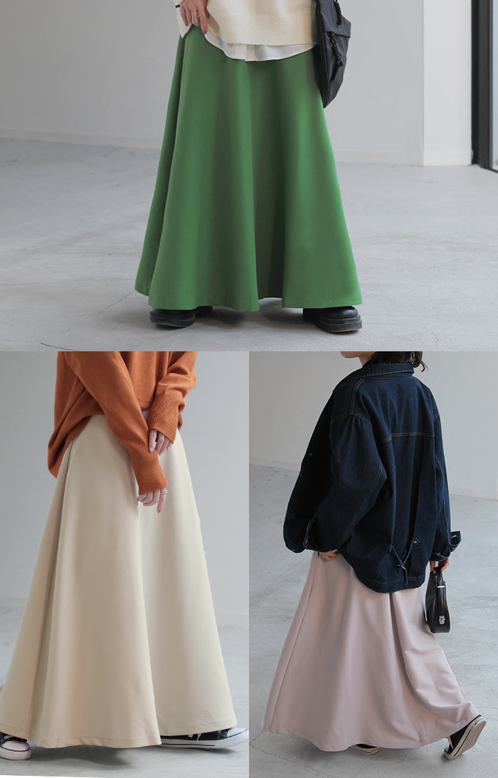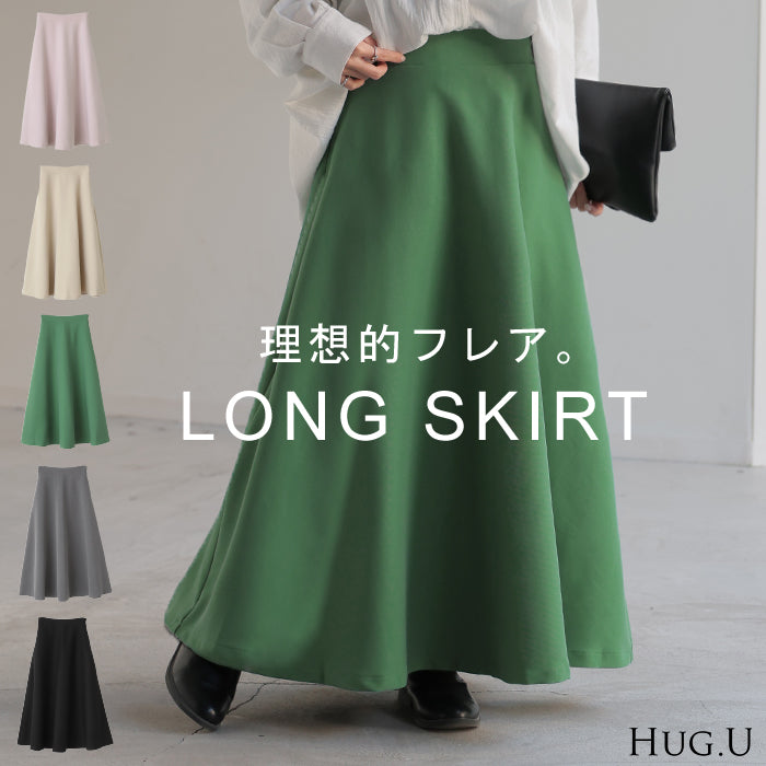 スカート フレア ロング Aライン レディース マキシ丈 無地 キレイめ ウエストゴム ロングスカート フレアスカート ボリュームスカート ボリューム ゆったり 着痩せ オフィスカジュアル 大きいサイズ 黒 ブラック 白 ピンク グリーン 春 夏 HUG.U