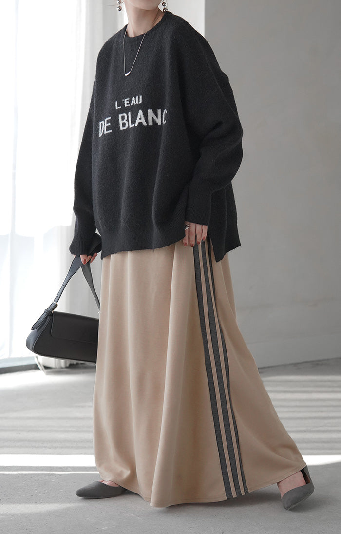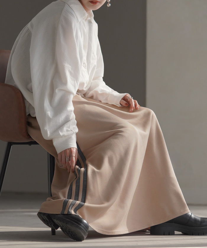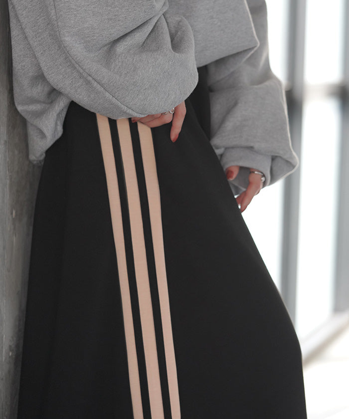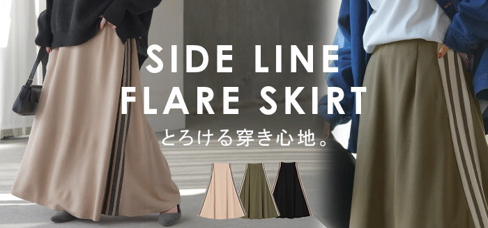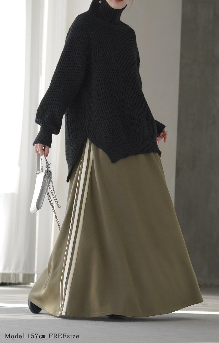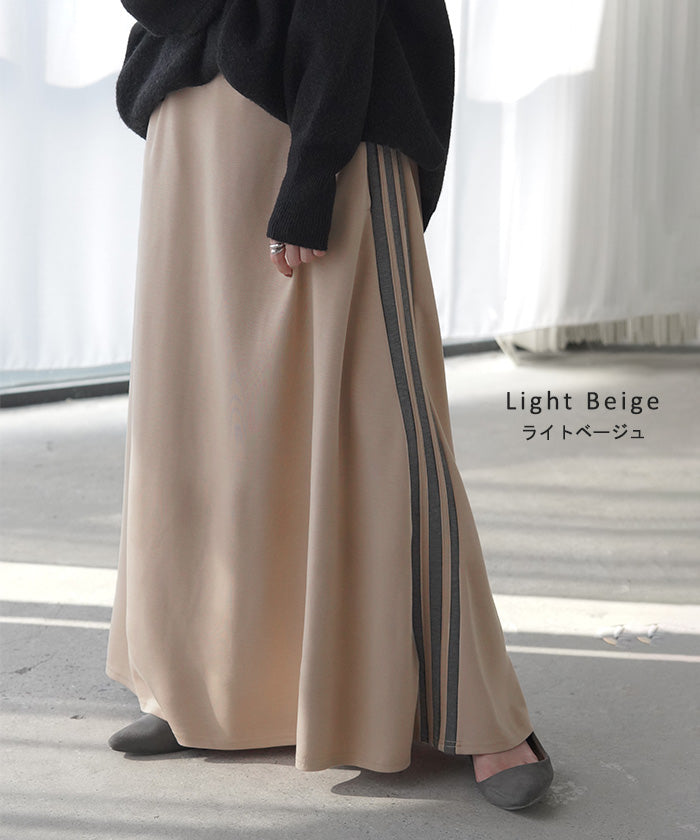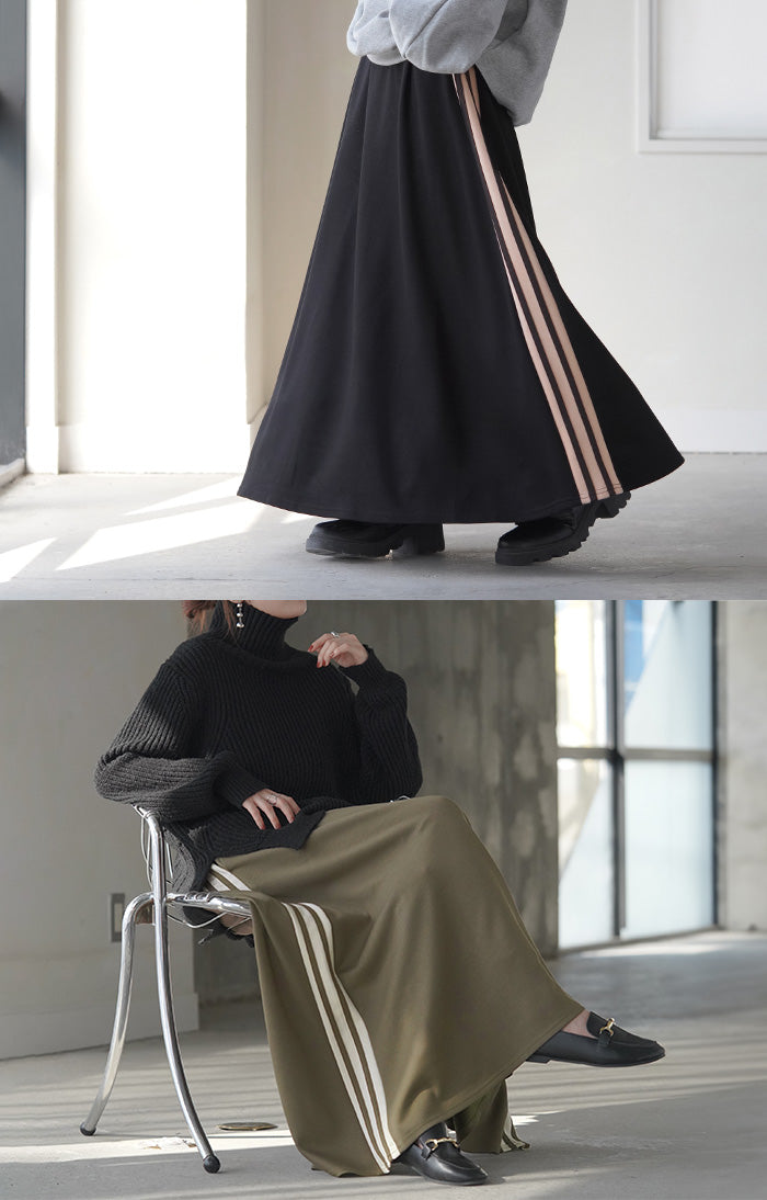 スカート 超伸び フレア レディース ボトムス ライン スポーティー ポンチスカート ロング ロングスカート マキシ ジャージー Aライン フレアスカート ストレッチ ラインスカート ゴム ゆったり 体型カバー 大きいサイズ 配色 黒 カーキ 春 夏 HUG.U