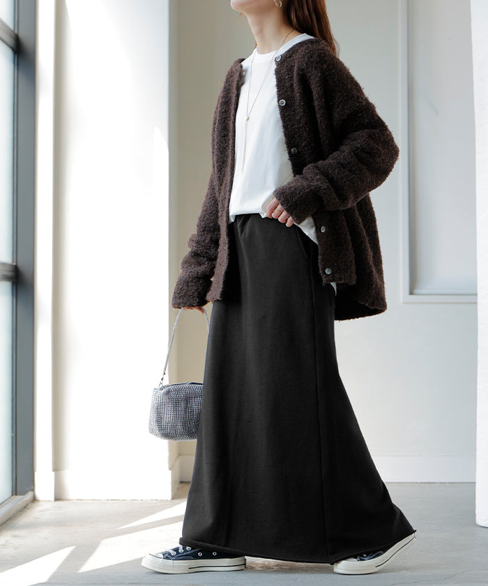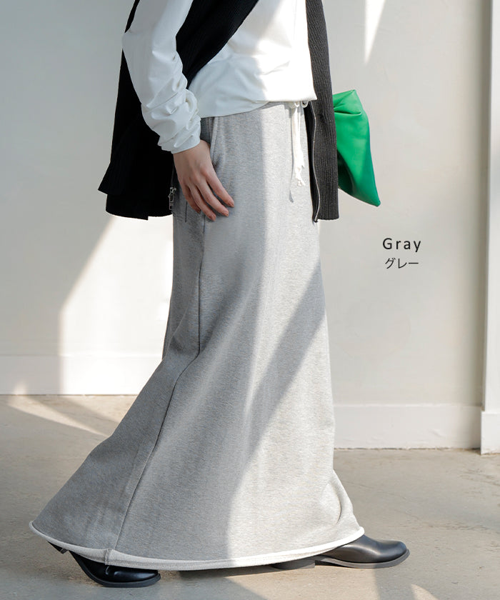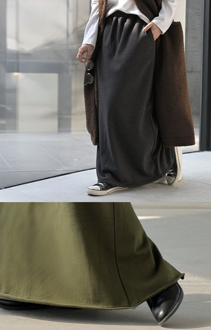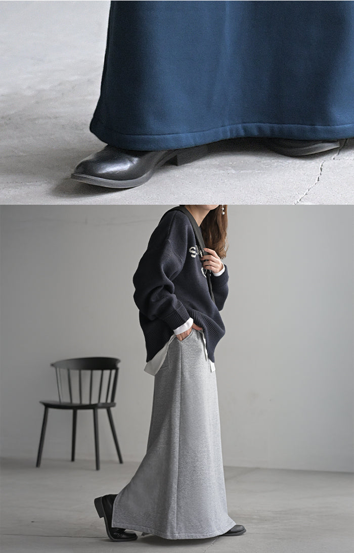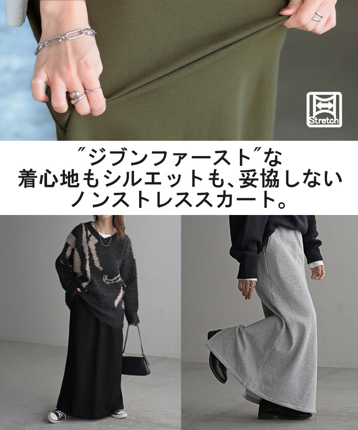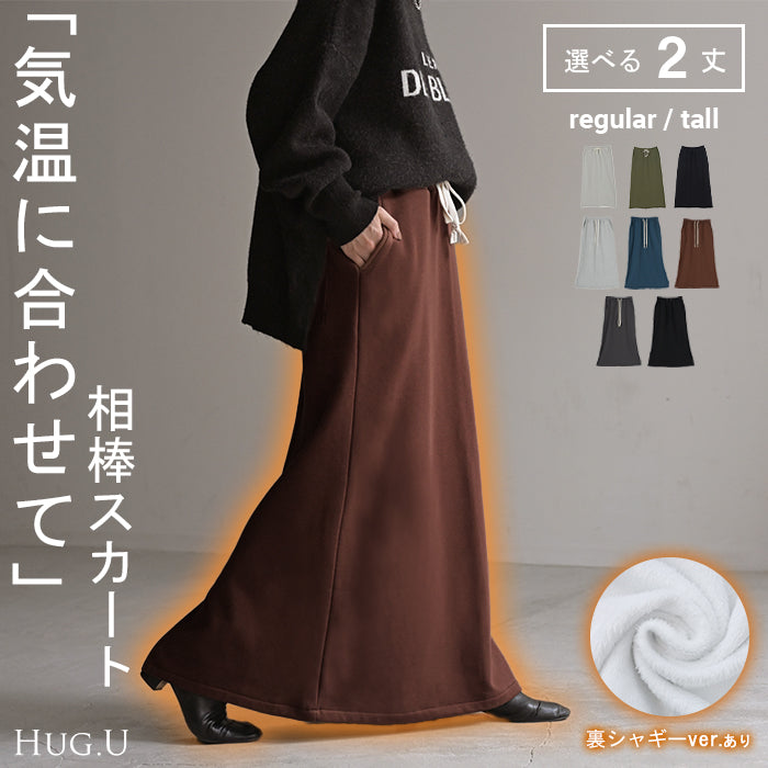スカート 選べる 丈 裏地 裏毛 裏シャギー ロング 綿100 Aライン レディース ロングスカート ボトムス ボトム スウェット ストレッチ フレア マキシ マキシスカート Iライン 無地 長い ゆったり きれいめ ハイウエスト カジュアル おしゃれ 黒 グレー 秋 冬 HUG.U