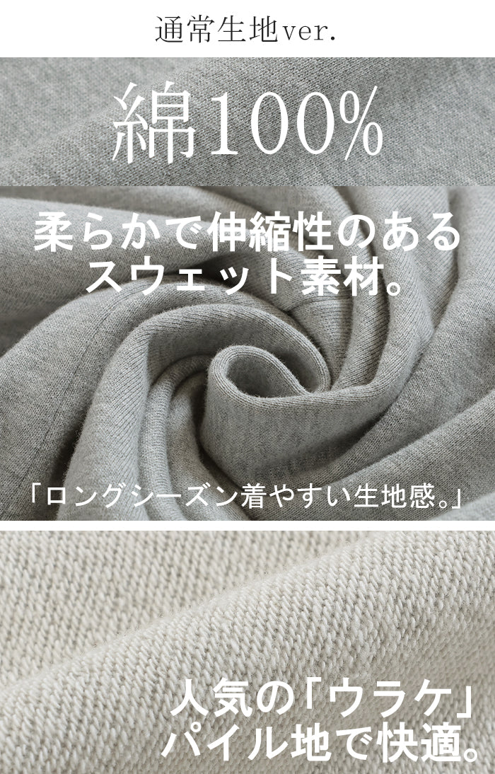裏シャギー:ポリエステル67% 綿30% ポリウレタン3%