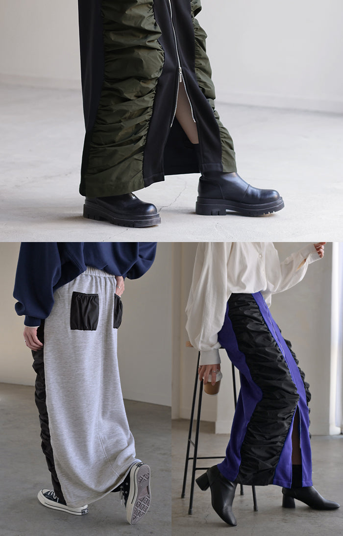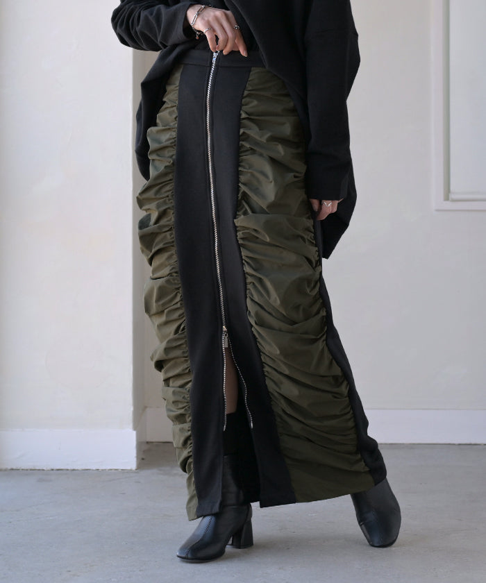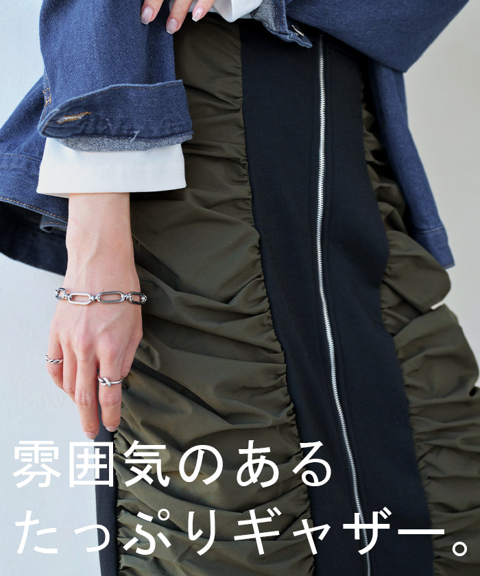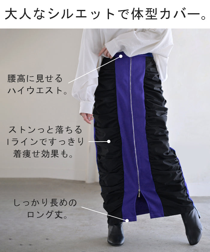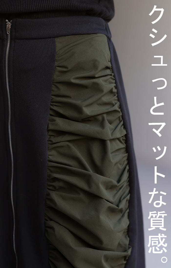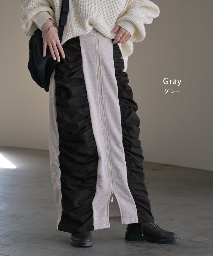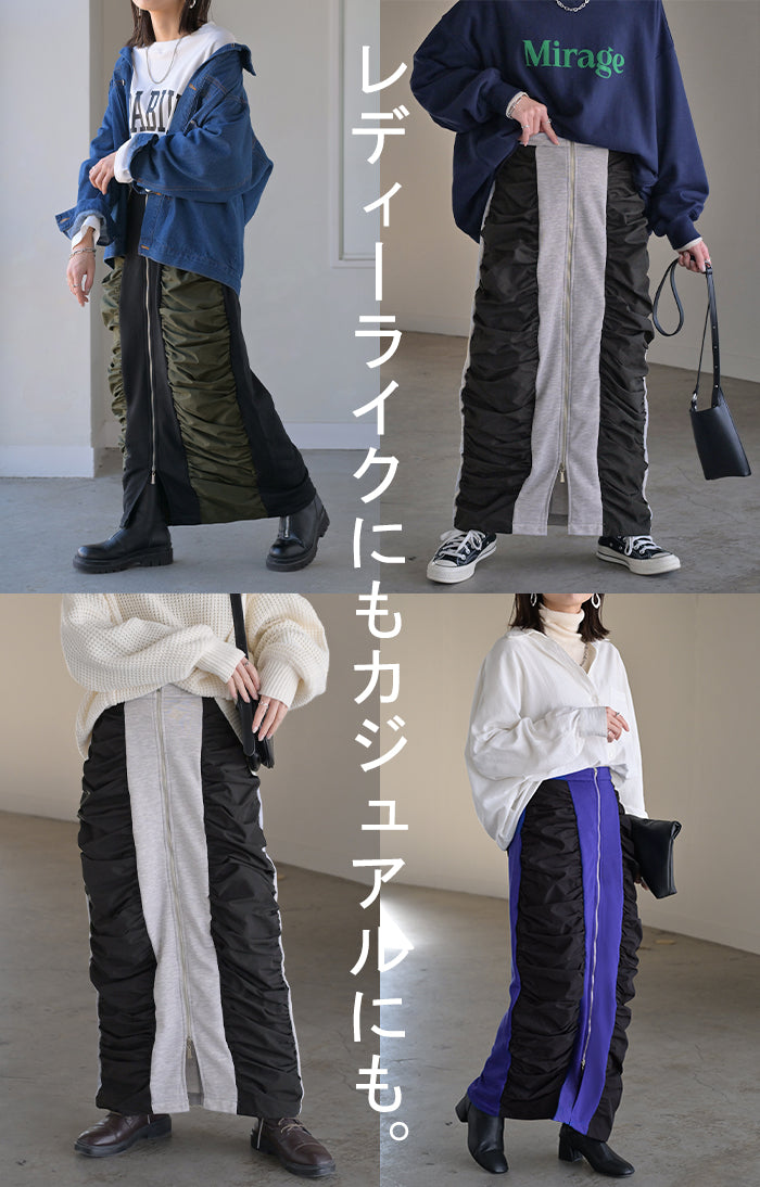 スカート サイド ギャザー タイトスカート レディース ボトムス 変形 ロングスカート マキシスカート スウェット 変形スカート ダブルジップ ストレート ペンシルスカート スリット ストレッチ ロング タイト ナロースカート ゴム カーキ 春 夏 HUG.U