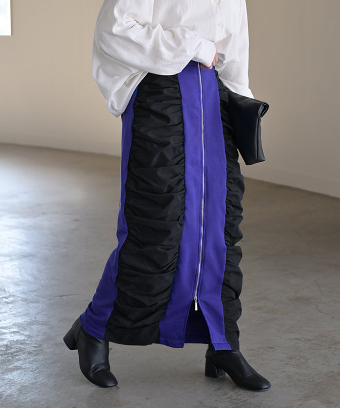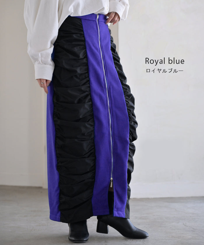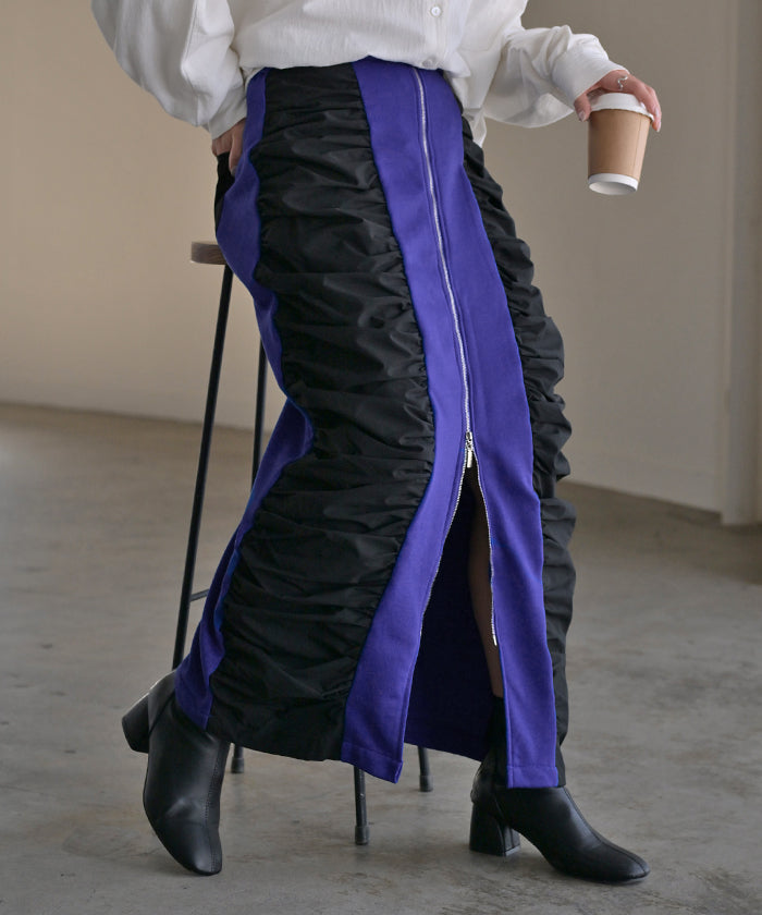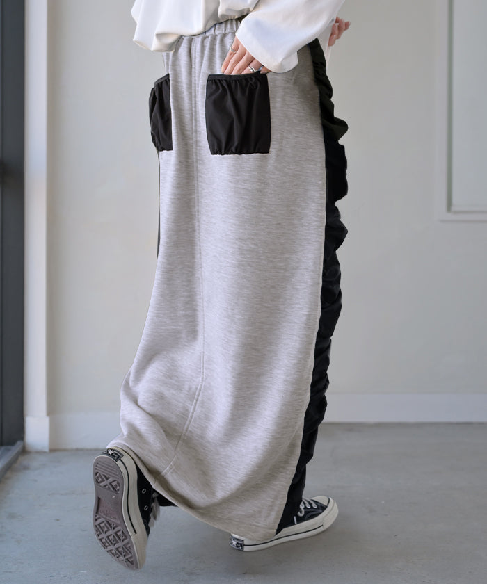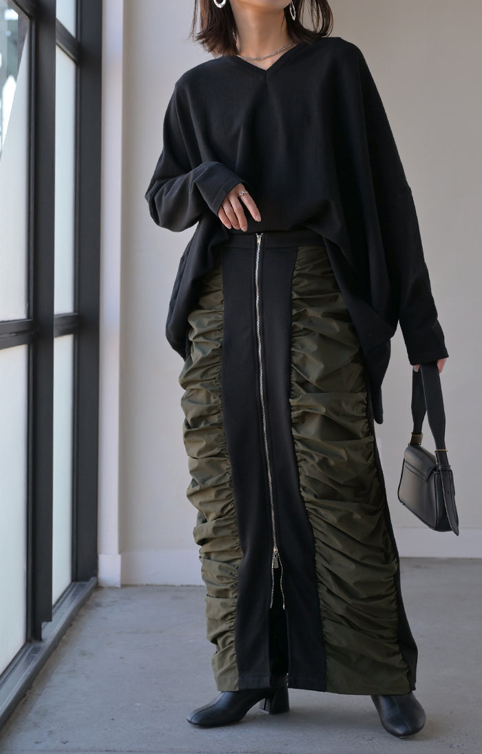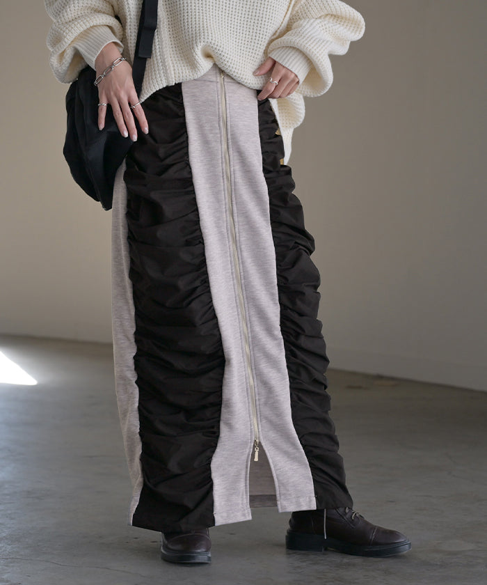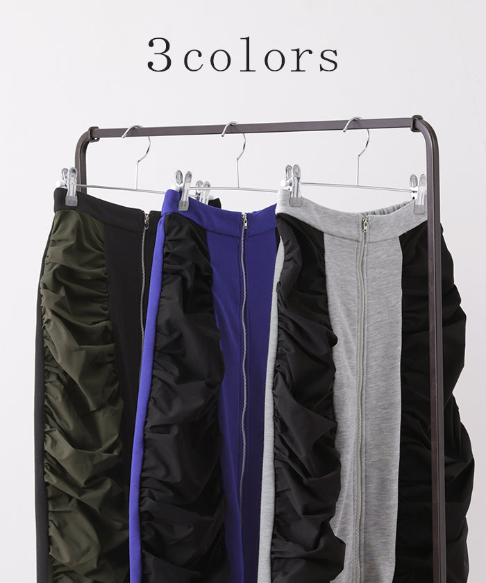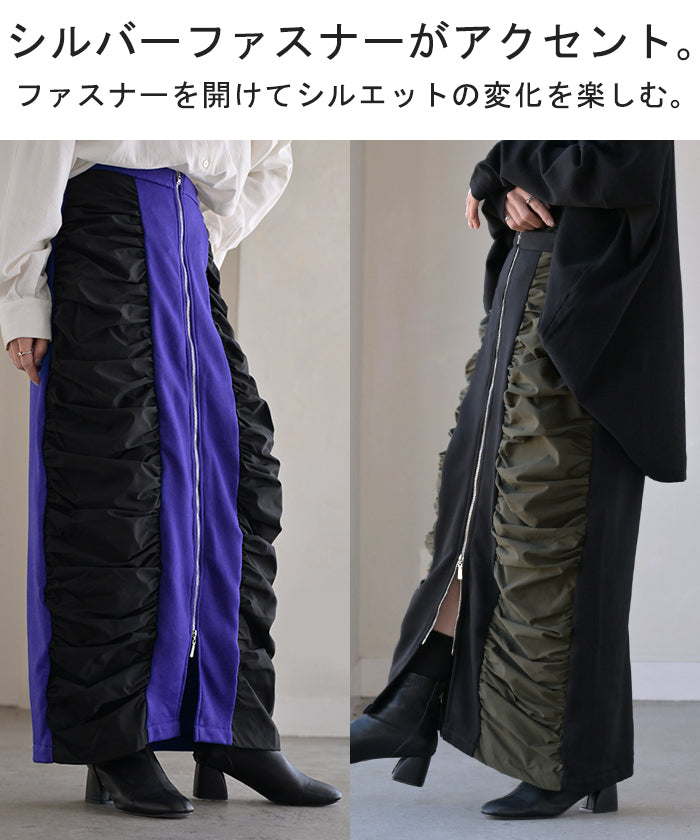 スカート サイド ギャザー タイトスカート レディース ボトムス 変形 ロングスカート マキシスカート スウェット 変形スカート ダブルジップ ストレート ペンシルスカート スリット ストレッチ ロング タイト ナロースカート ゴム カーキ 春 夏 HUG.U