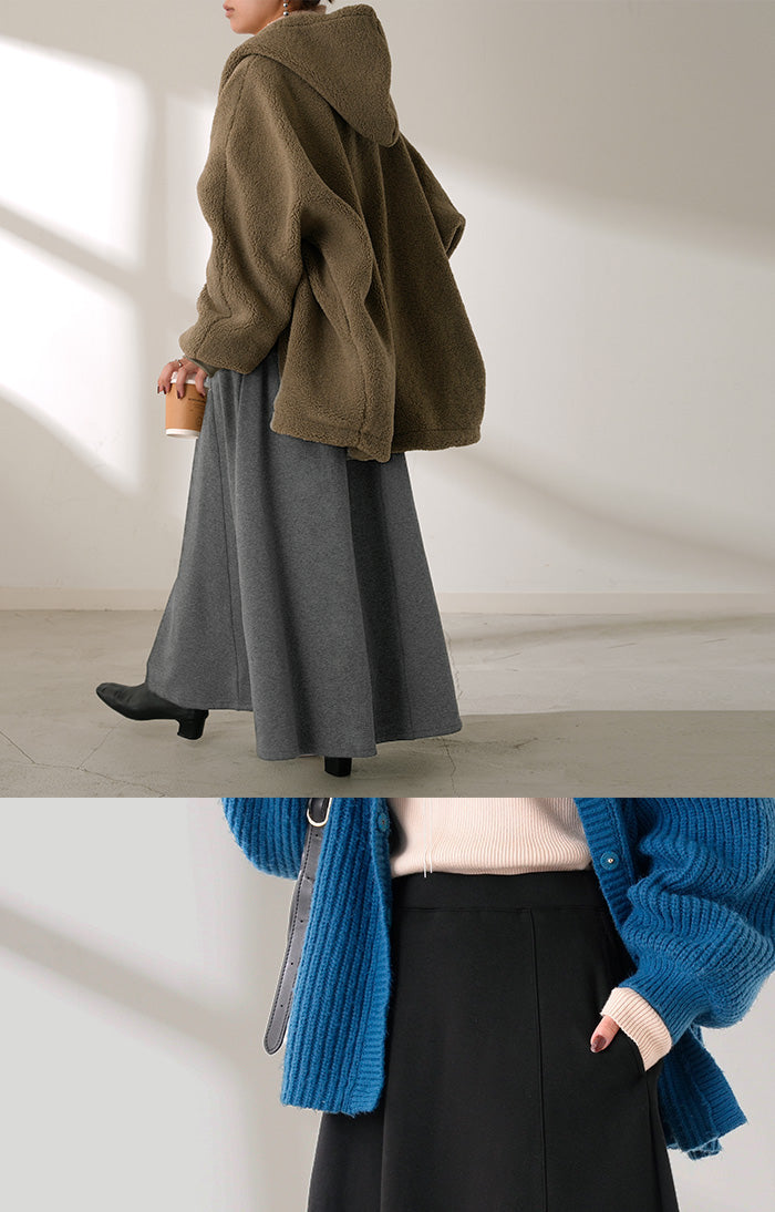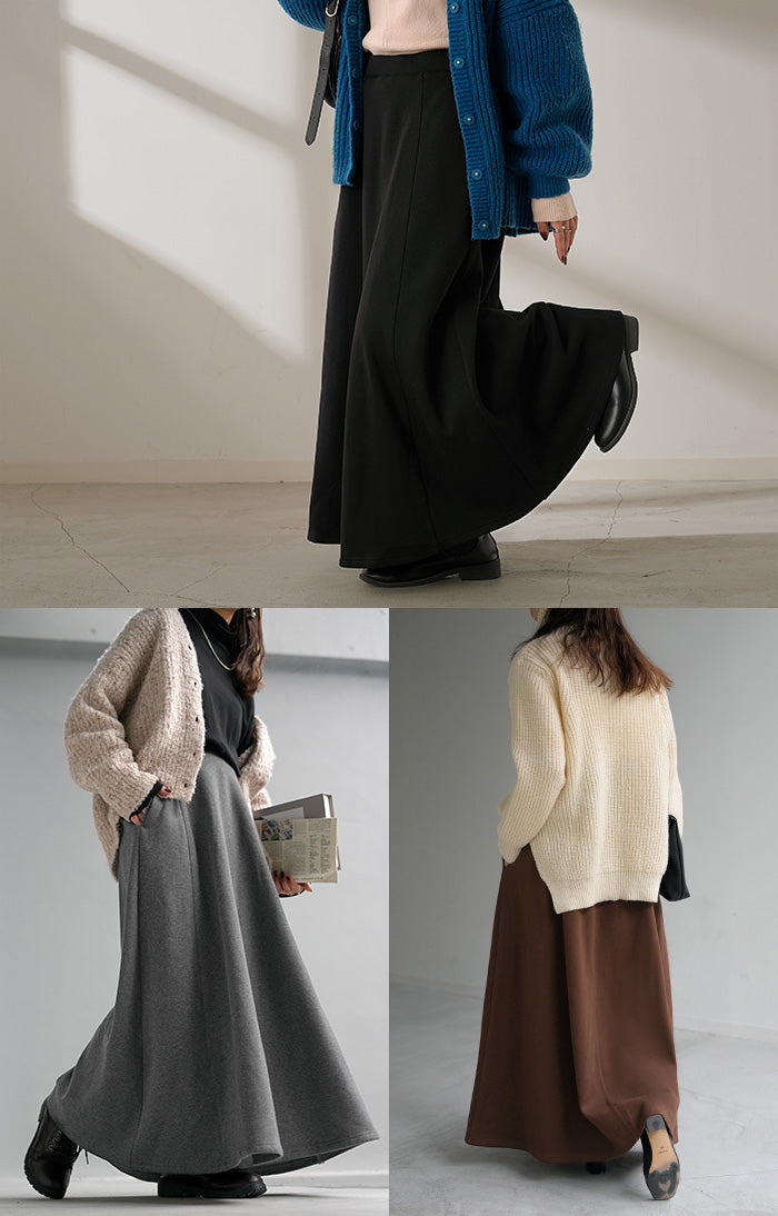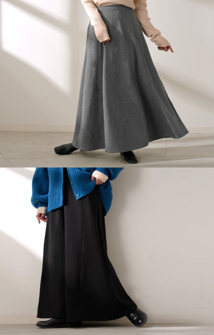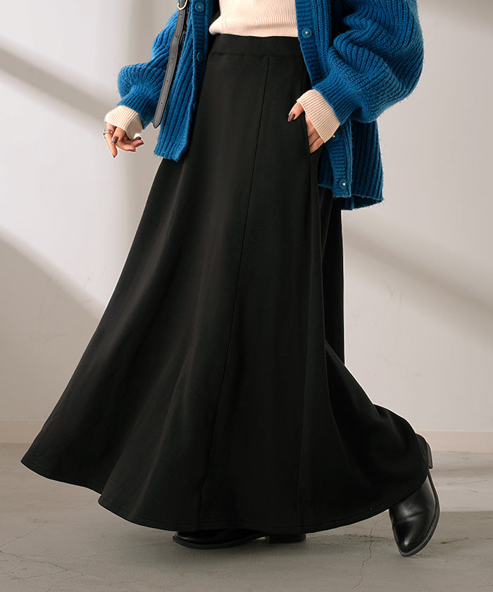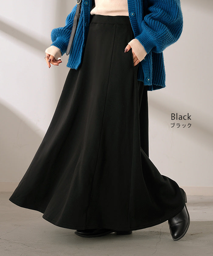 2025AW新作 スカート ロング " 特暖 " 裏シャギー レディース スウェット 裏起毛 ロングスカート ボトムス ボトム フレア フレアスカート マキシ マキシスカート ストレッチ ウエストゴム 無地 長い ゆったり きれいめ ハイウエスト おしゃれ 黒 グレー 秋 冬 HUG.