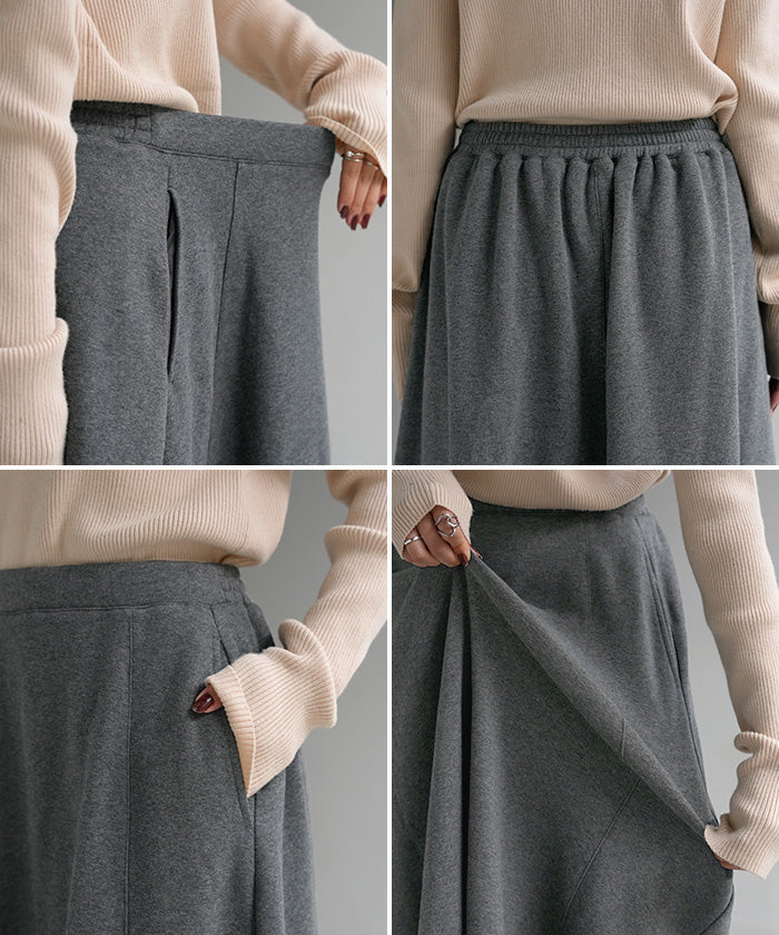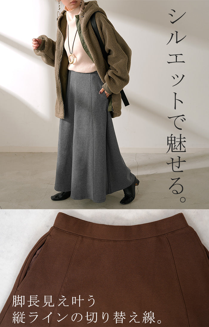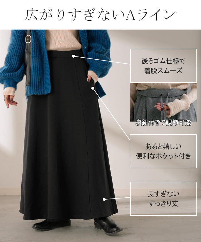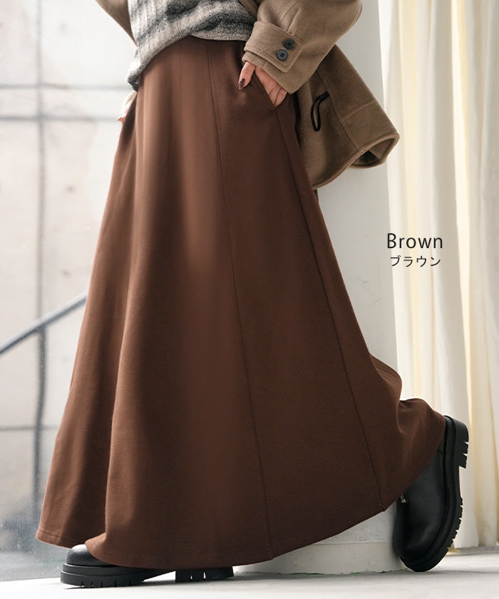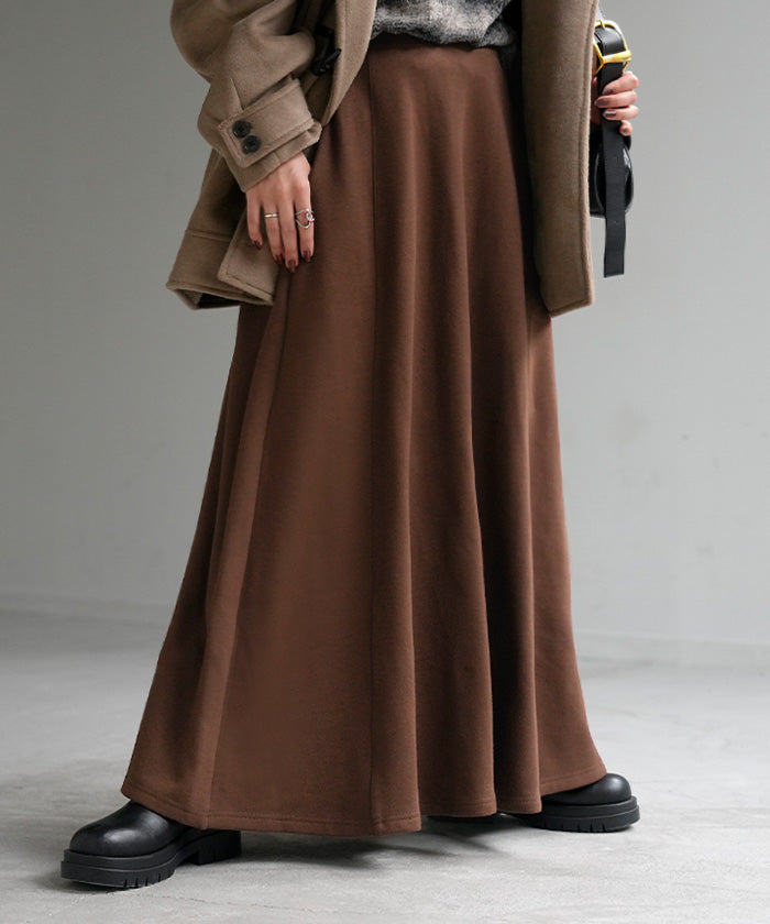 2025AW新作 スカート ロング " 特暖 " 裏シャギー レディース スウェット 裏起毛 ロングスカート ボトムス ボトム フレア フレアスカート マキシ マキシスカート ストレッチ ウエストゴム 無地 長い ゆったり きれいめ ハイウエスト おしゃれ 黒 グレー 秋 冬 HUG.