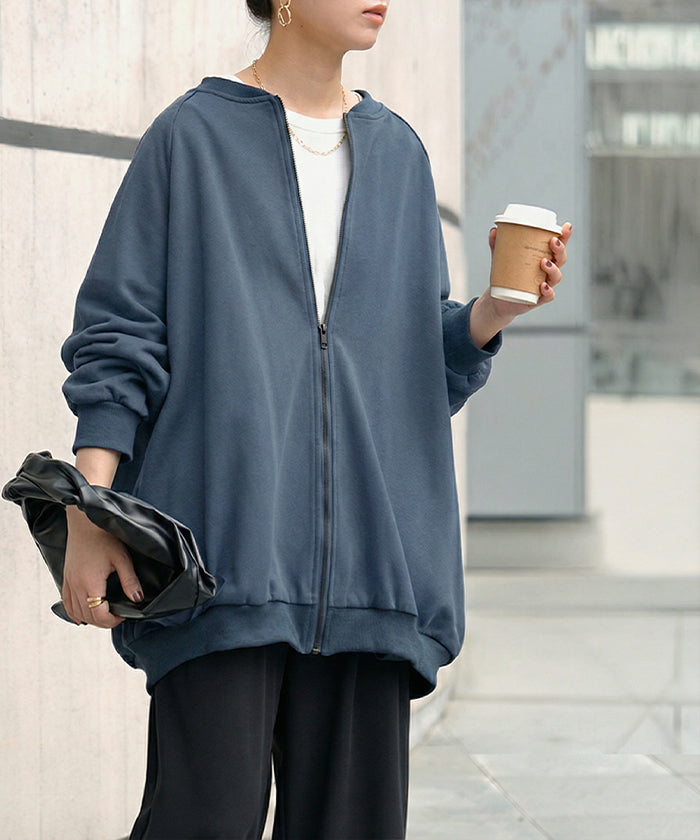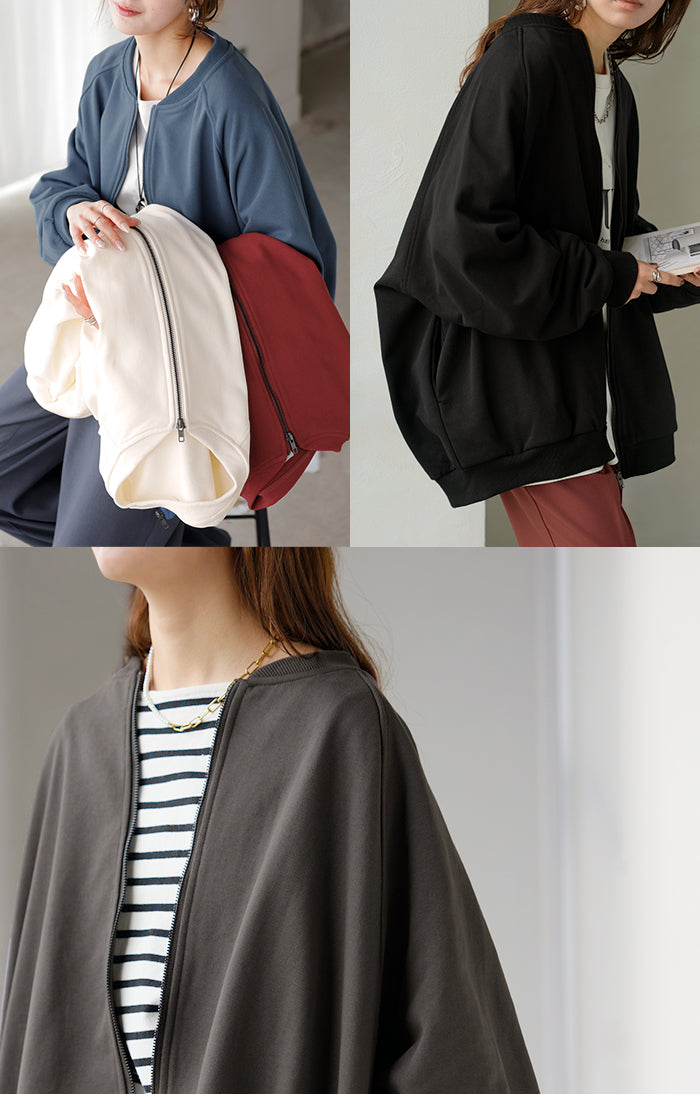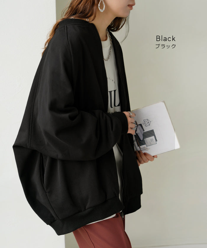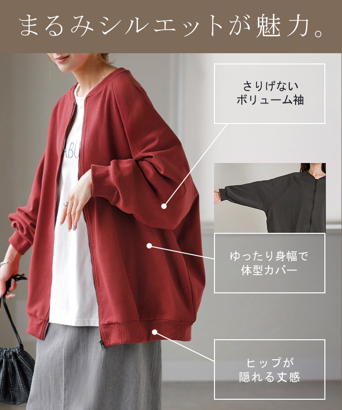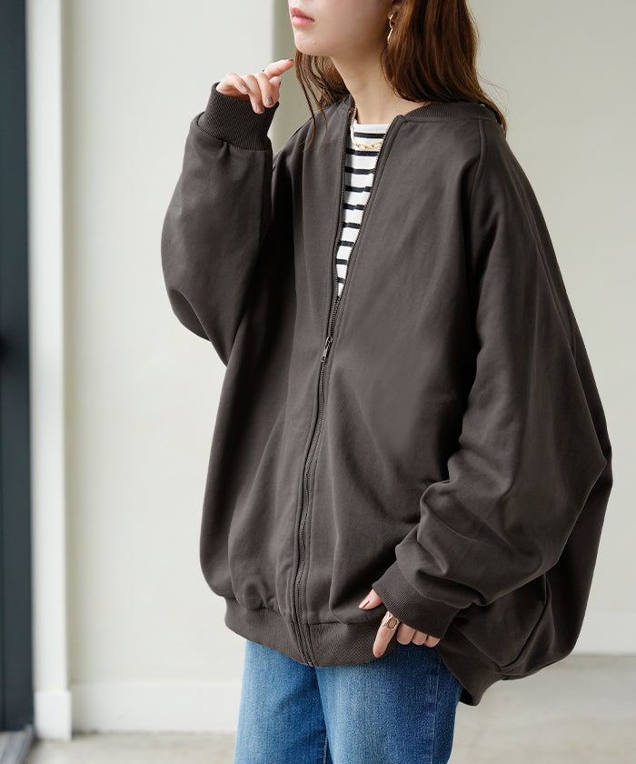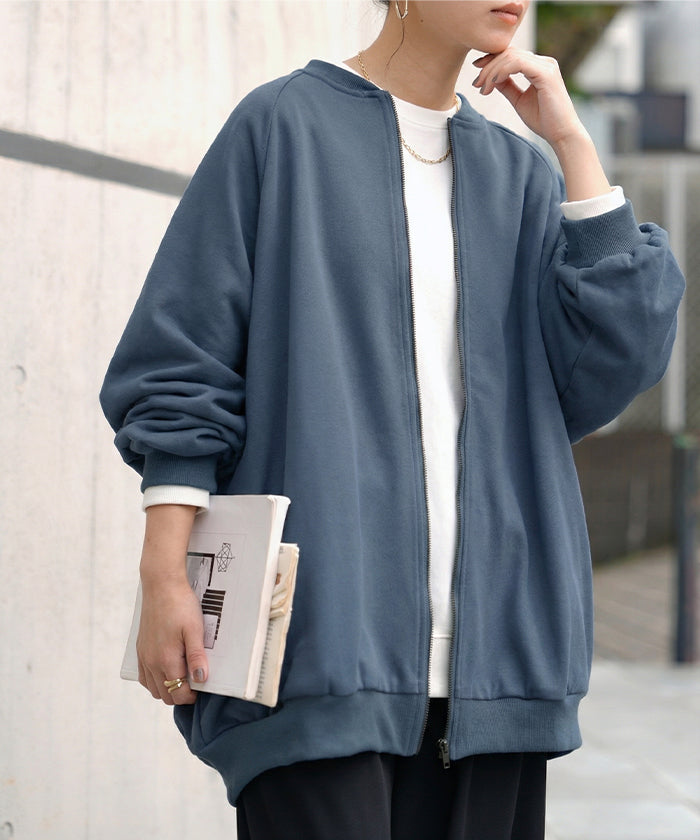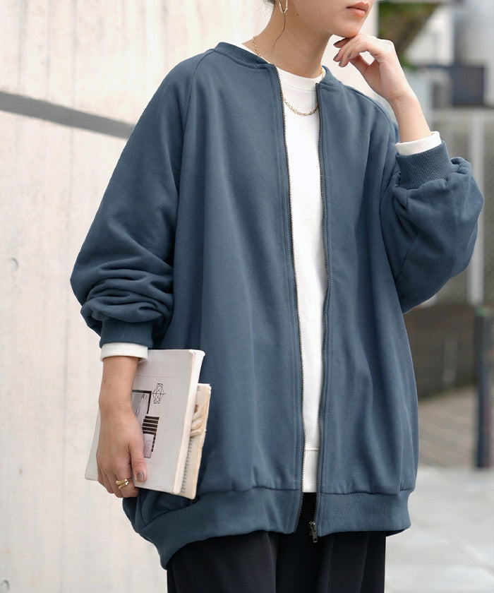 2025AW新作 アウター ブルゾン レディース ロング ジャケット ジャンパー ボリュームスリーブ MA-1 裏毛 リブ ドルマン ラグランスリーブ 羽織 耐久性 速乾 ライトアウター オーバーサイズ 大きいサイズ 体型カバー お尻が隠れる MA1 おしゃれ 黒 グレー 秋 冬 HUG.U