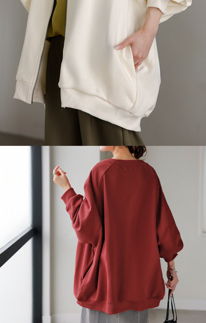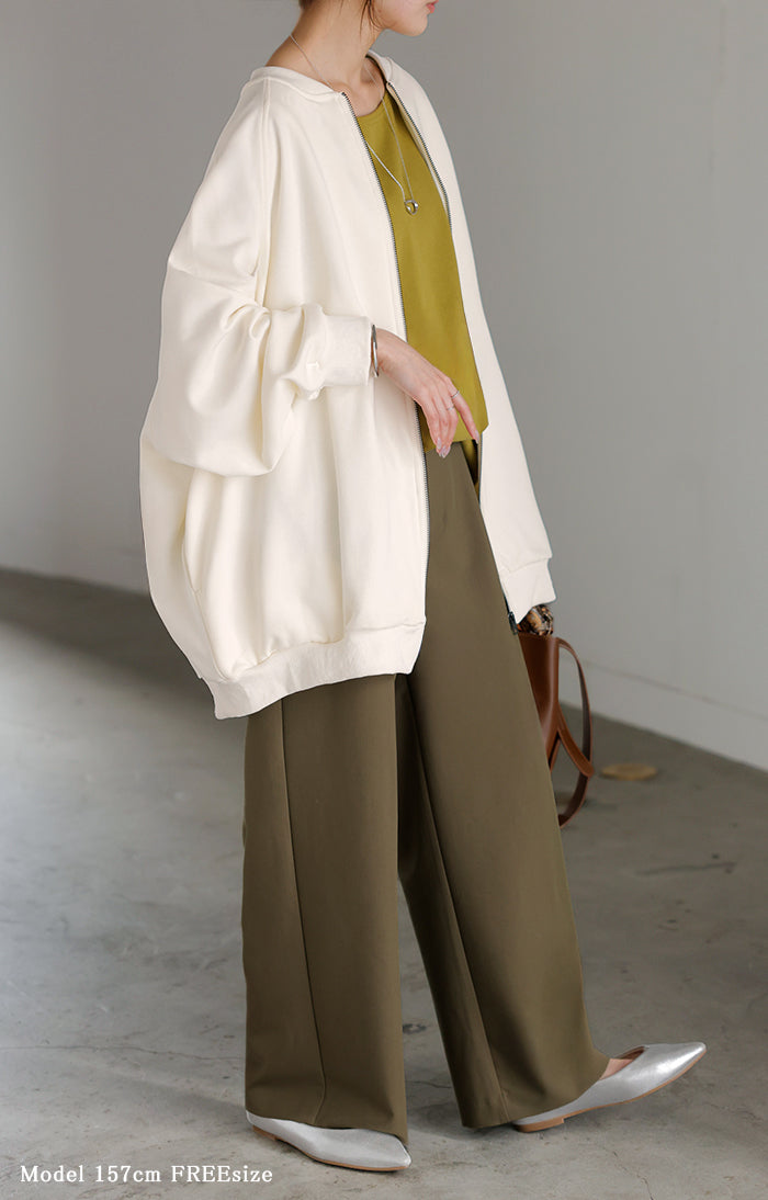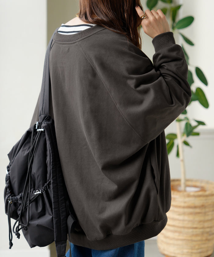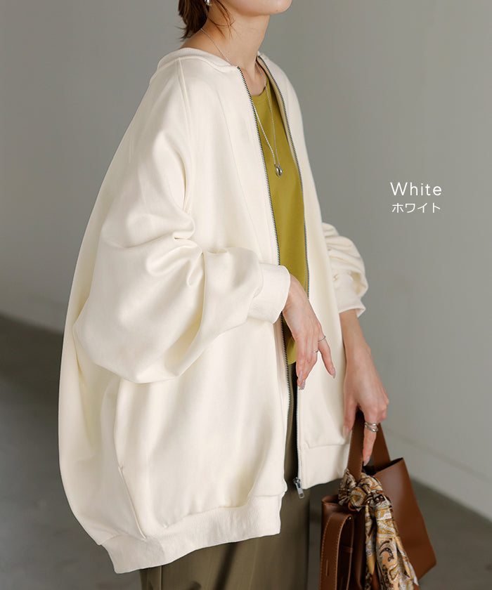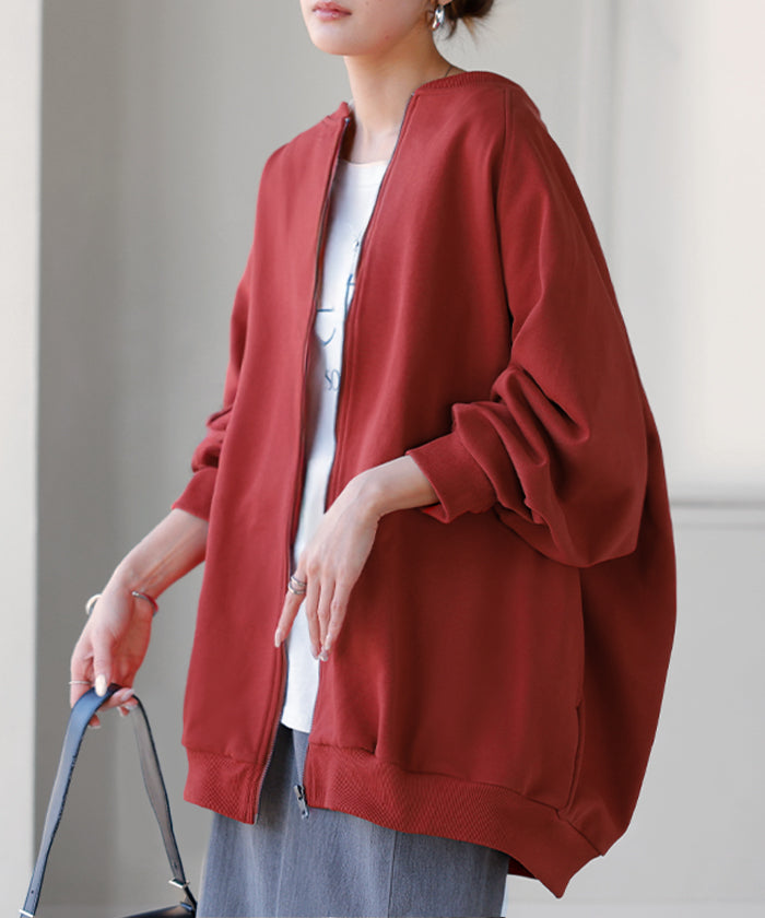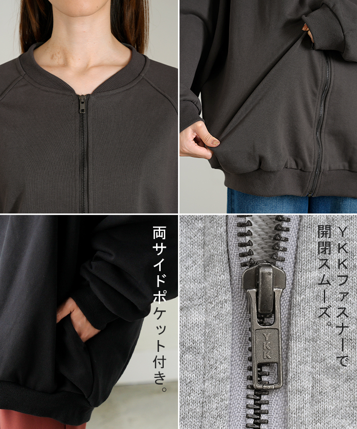 2025AW新作 アウター ブルゾン レディース ロング ジャケット ジャンパー ボリュームスリーブ MA-1 裏毛 リブ ドルマン ラグランスリーブ 羽織 耐久性 速乾 ライトアウター オーバーサイズ 大きいサイズ 体型カバー お尻が隠れる MA1 おしゃれ 黒 グレー 秋 冬 HUG.U