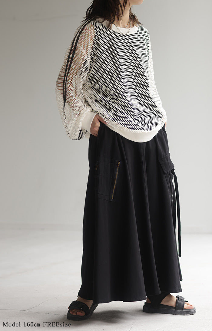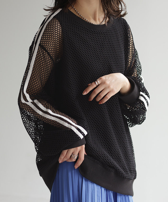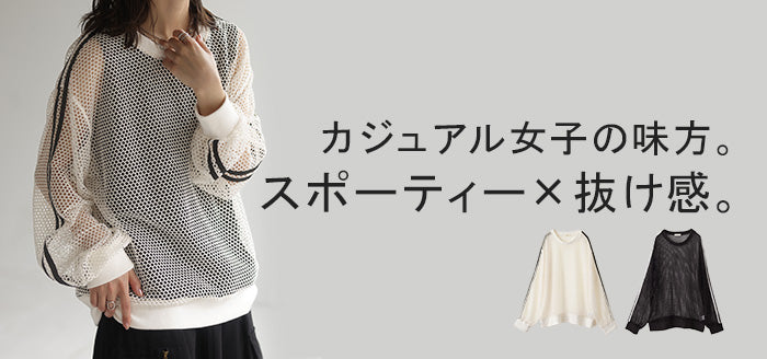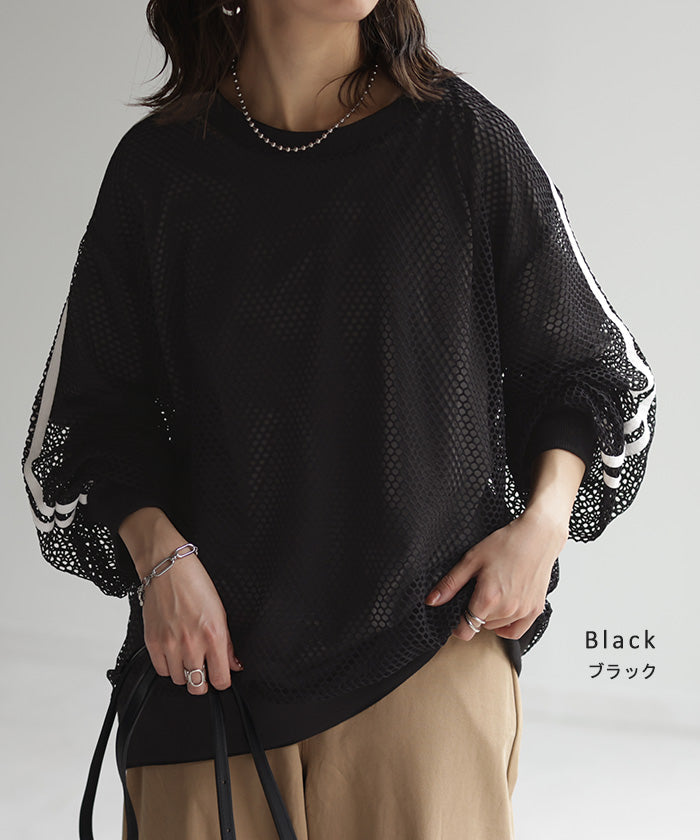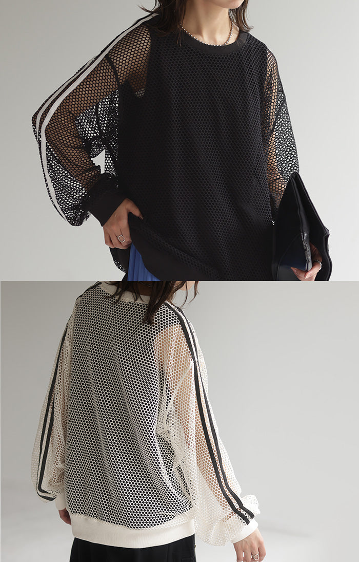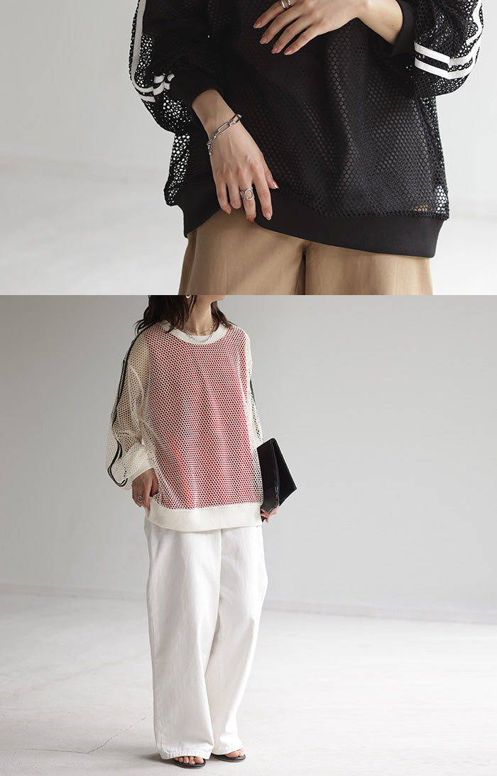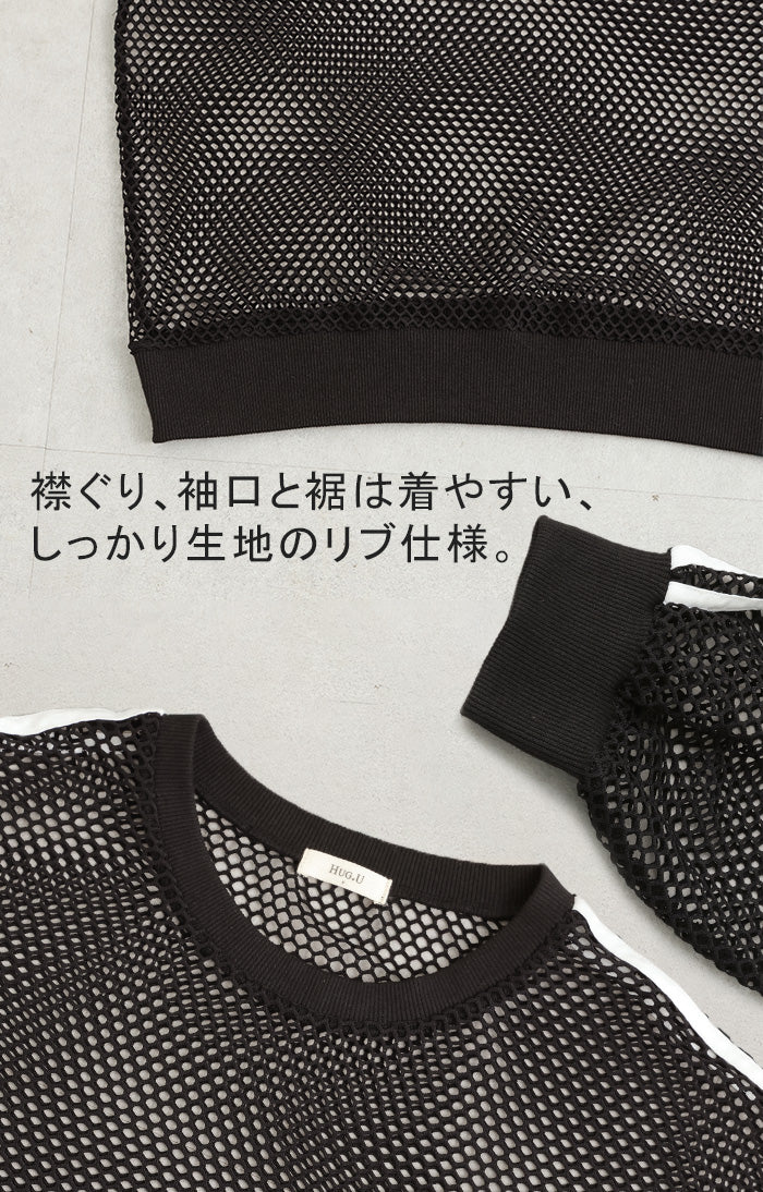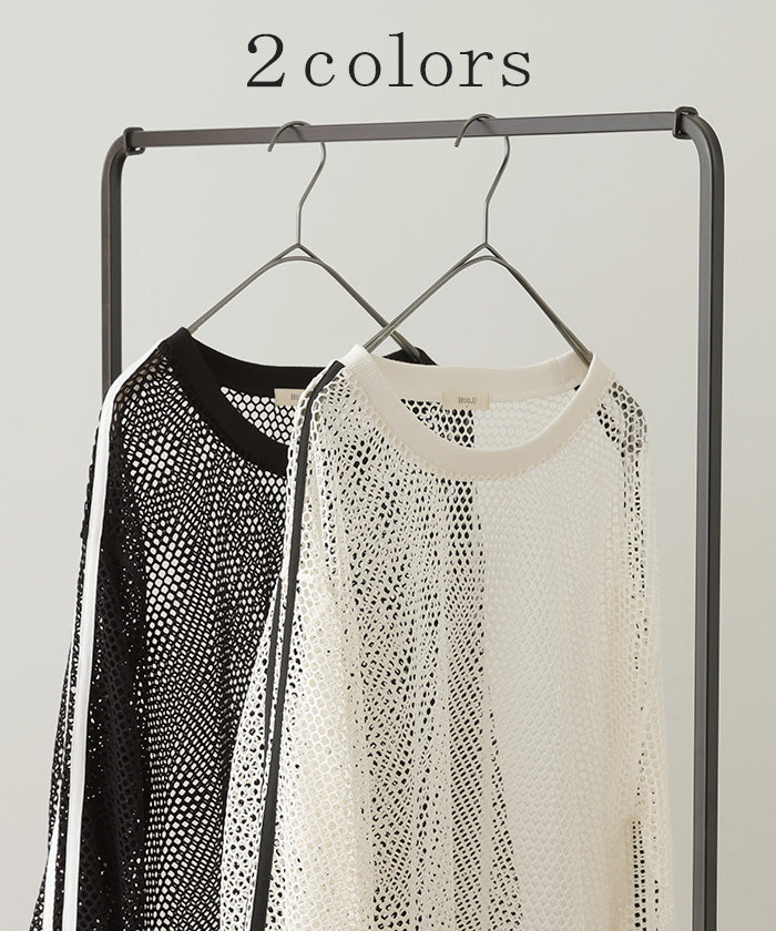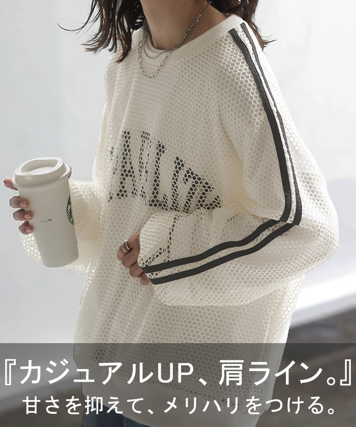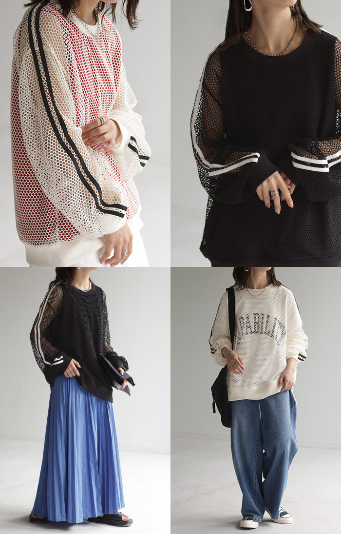 メッシュ スポーティー トップス レディース レイヤード プルオーバー メッシュトップス スポーツ 透かし編み ドロップショルダー 重ね着 サマーニット 長袖 無地 Uネック ボートネック メッシュ編み リブ 体型カバー 大きいサイズ 白 黒 春 夏 HUG.U