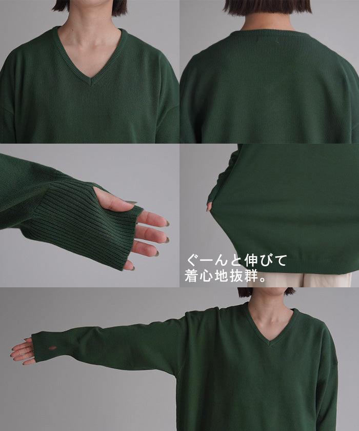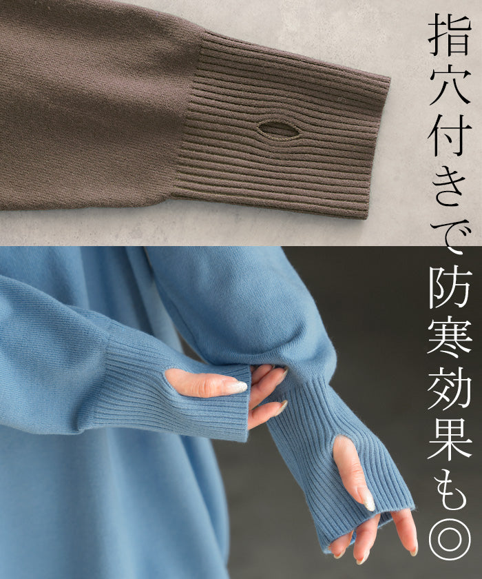 到着までに少し時間がかかりましたが、サイズ感はゆったりしていて肌触りもよく暖かいです。Vネックを注文しましたが、胸元は浅いので胸元が開きすぎず気に入りました。 ベージュは、画像より少し色が薄く感じました。ただ特に腕が人より長いと感じた事はないのですが、 袖の穴あき指の箇所が手首にくるので合いません。指は入れる事が出来ませんでした。(身長165㌢)