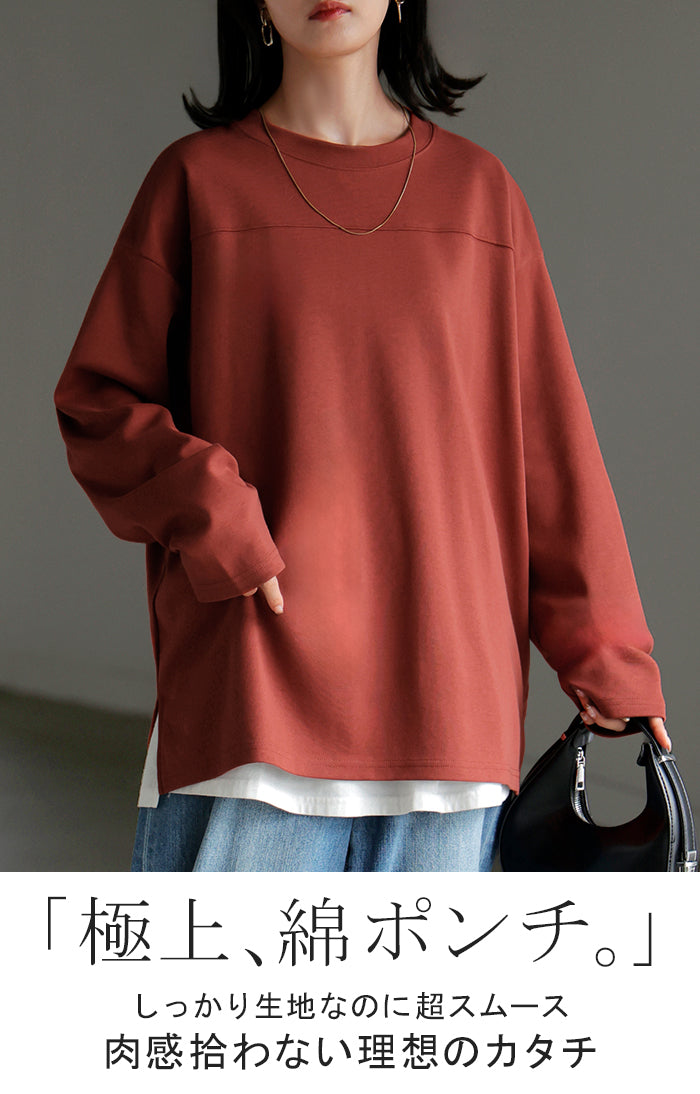 2025AW新作 ロンT ポンチ 防汚 レディース トップス ロング 長袖 Tシャツ カットソー ティーシャツ フットボールT チュニック クルーネック コットンポンチ カラバリ ストレッチ 長い ゆったり 無地 体型カバー お尻が隠れる 大きいサイズ おしゃれ 白 黒 秋 冬 HUG.U