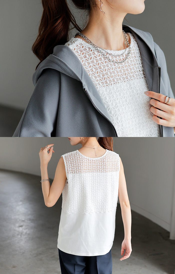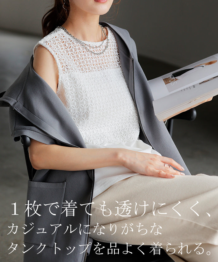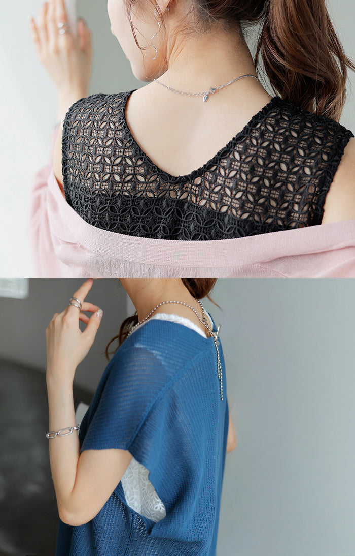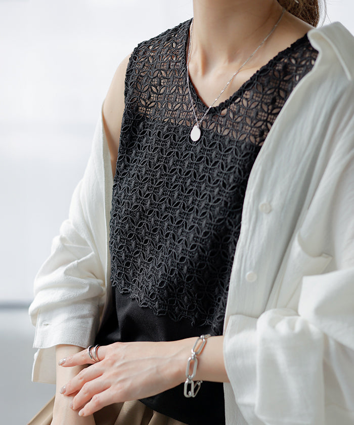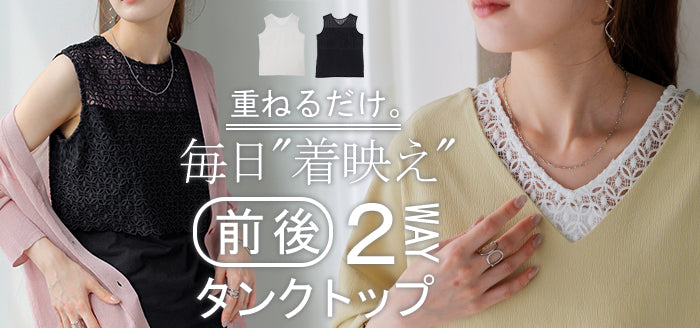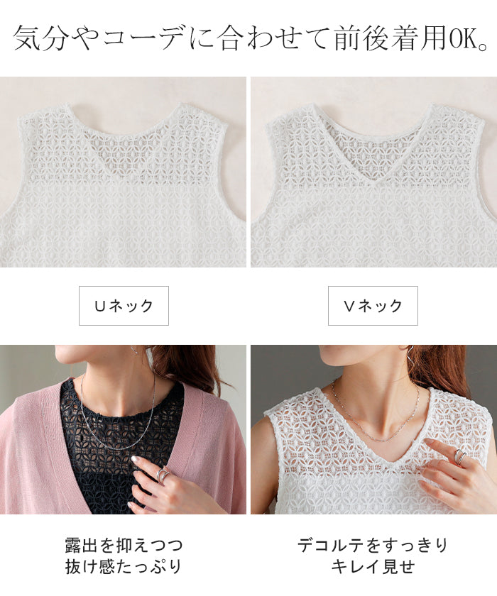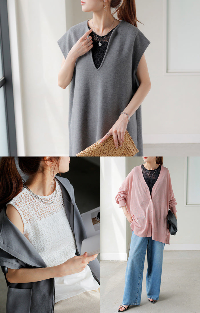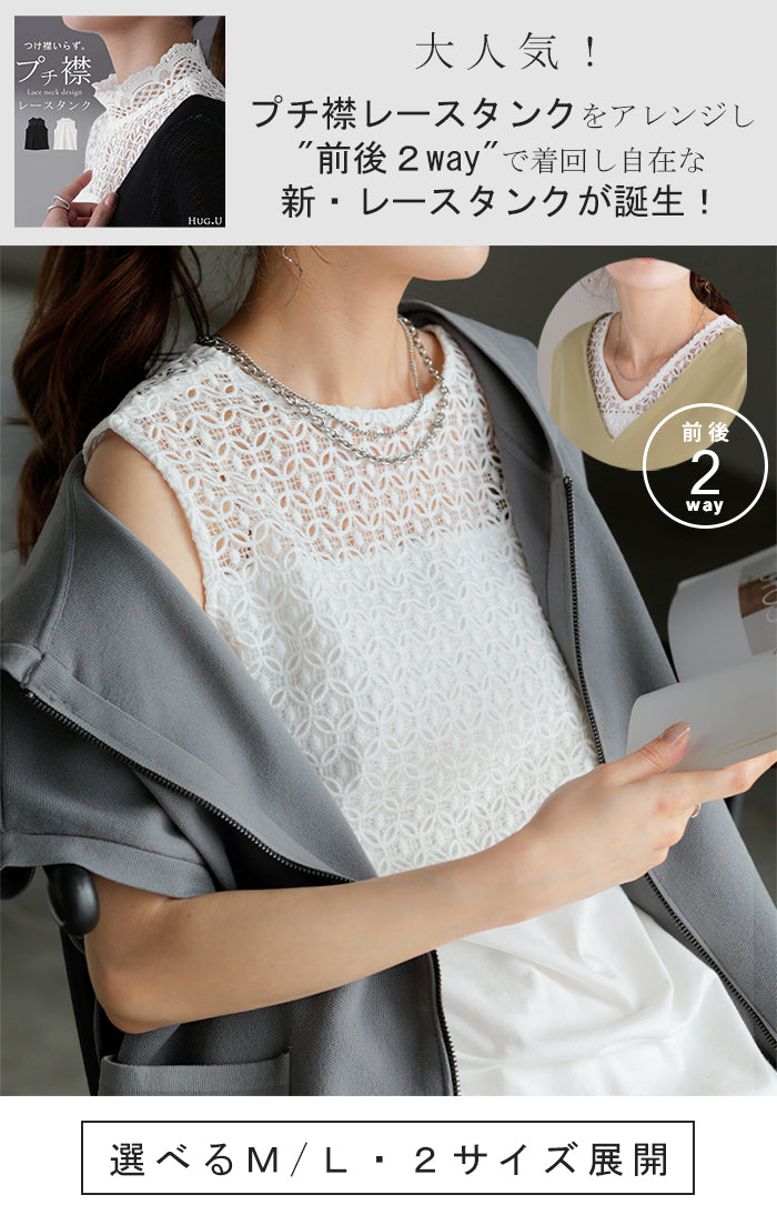 レイヤードしたいけれど、既に持ってる洋服に合わせるのは難しい。けれど、このインナーは襟ぐりも開き過ぎてなんし、レース部分も広く、丸首とVネックの2パターンあって、HUG.Uのニットはもちろん、手持ちのニットにも合わせやすかったです。