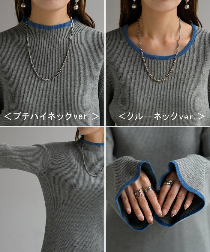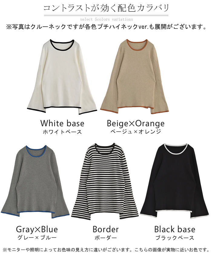 2025AW新作 ニット フレア袖 レディース トップス ■一部11月中旬入荷 セーター クルーネック ハイネック ボーダー 重ね着 プルオーバー 長袖 長い フレアスリーブ リブ ロング タートルネック ストレッチ 配色 体型カバー レイヤード きれいめ オフィス 上品 グレー 黒 秋 冬 HUG.U