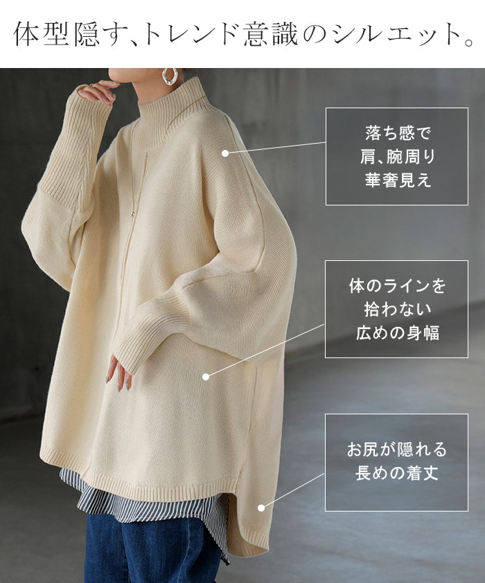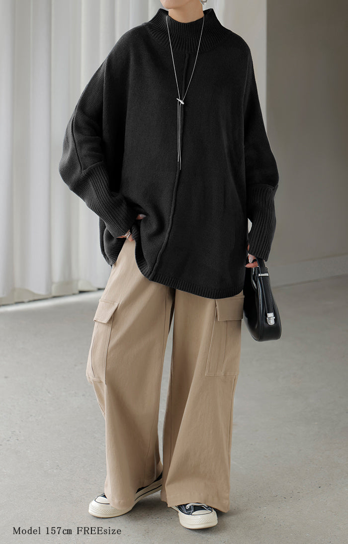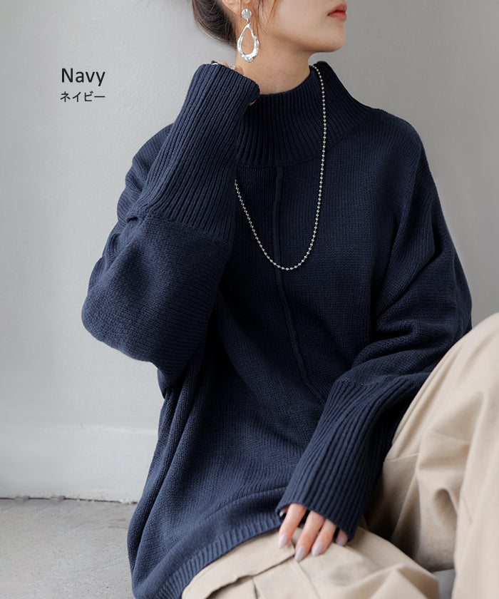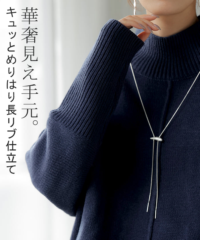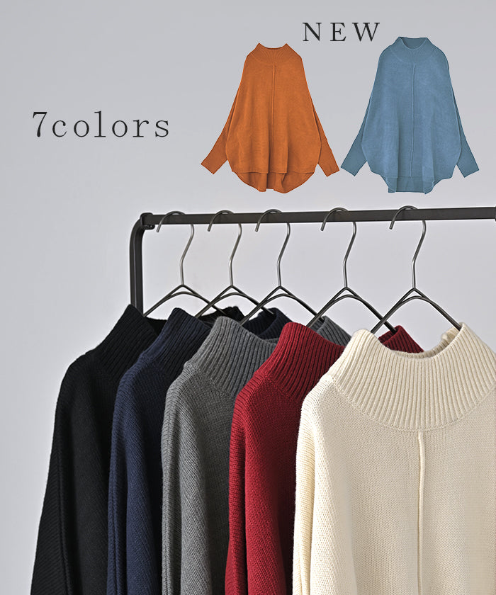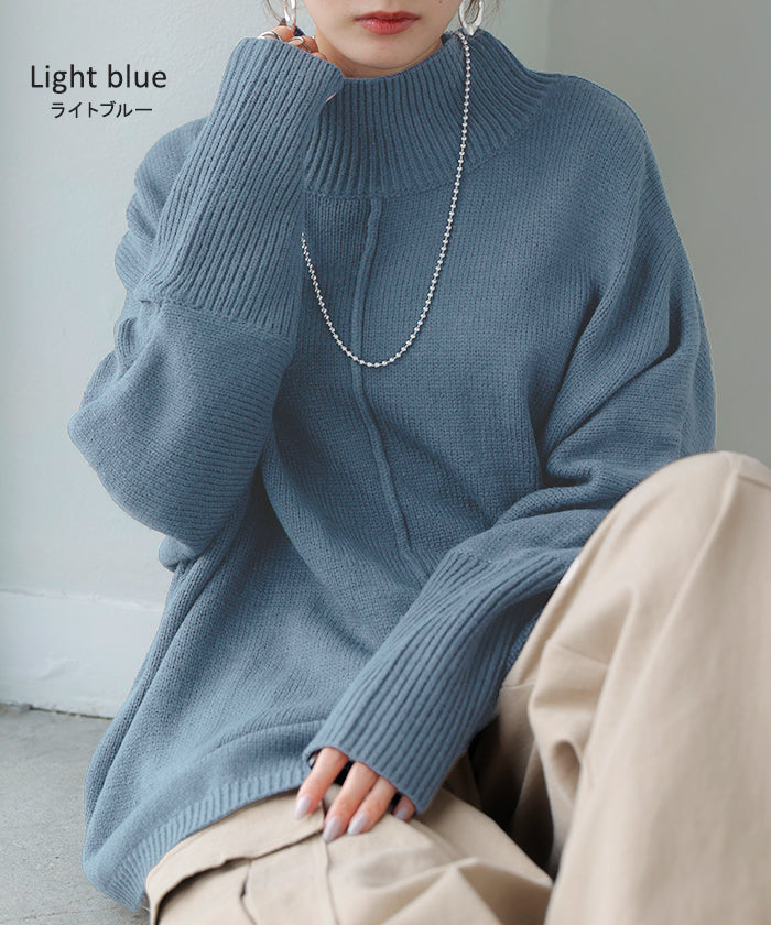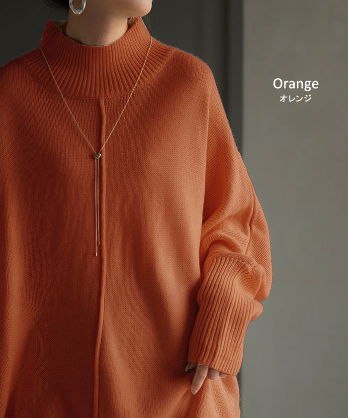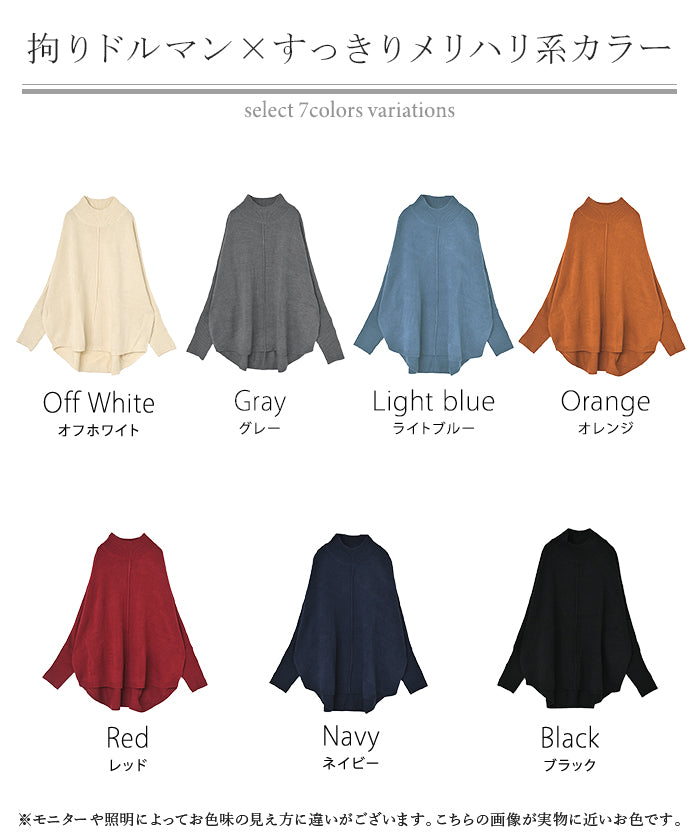 2025AW新作 ニット ハイネック ドルマン レディース トップス ロング セーター プルオーバー 長袖 長い ドルマンスリーブ タートルネック リブ 無地 チュニック レイヤード チクチクしない ゆったり 体型カバー 大きいサイズ お尻が隠れる カジュアル 黒 白 秋 冬 HUG.U