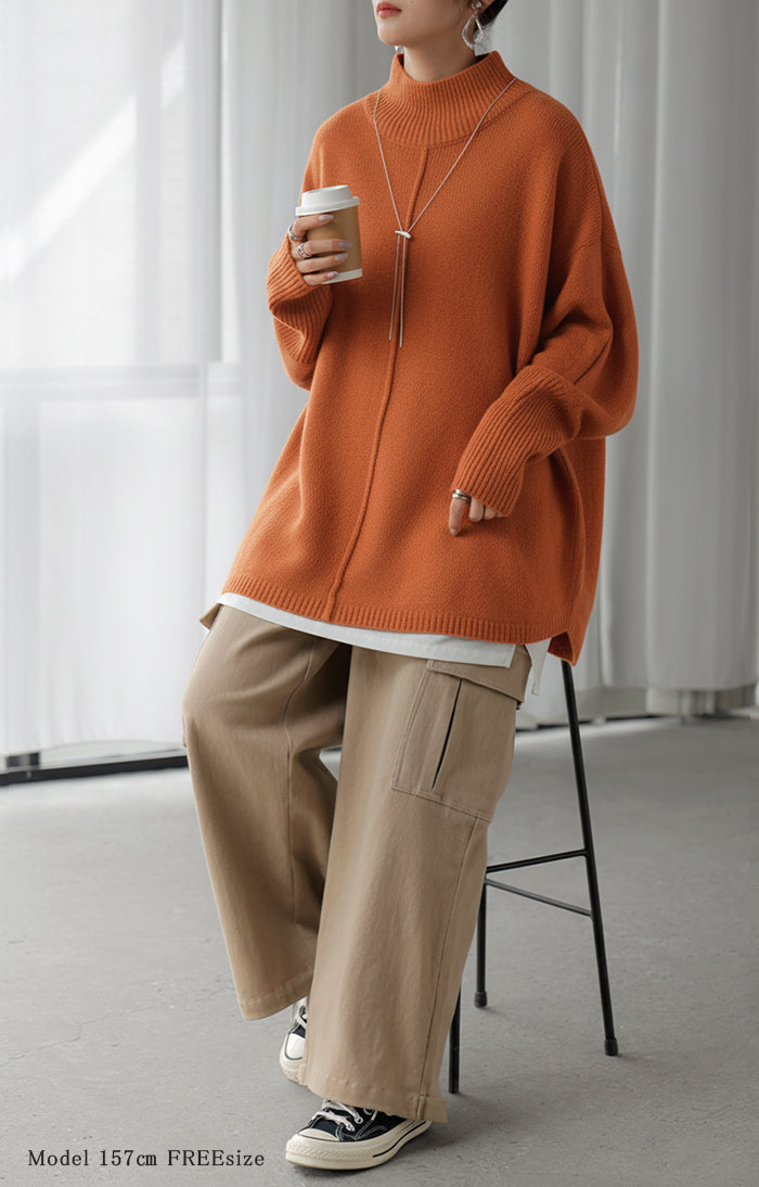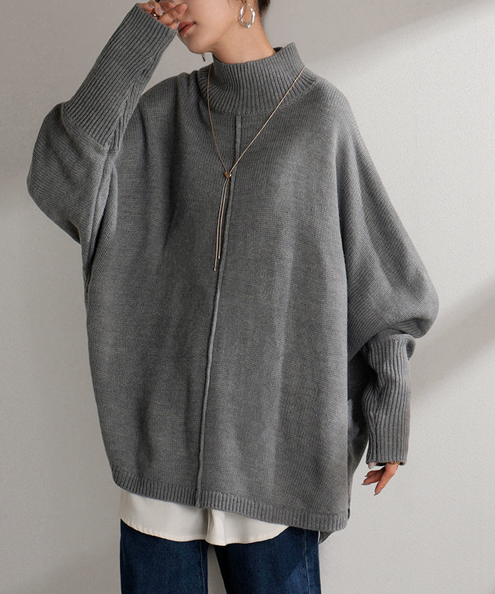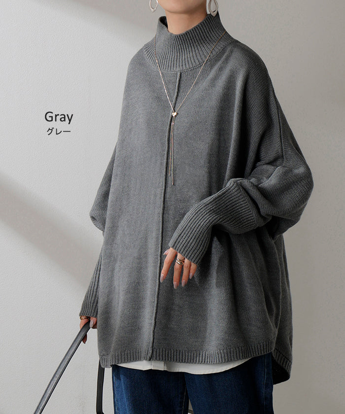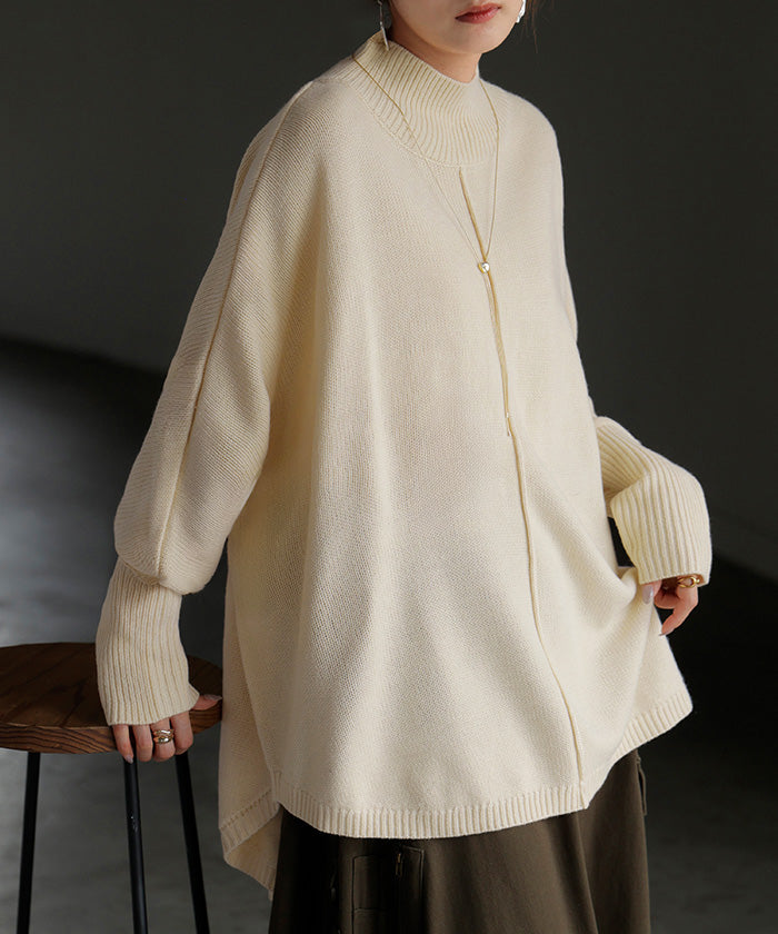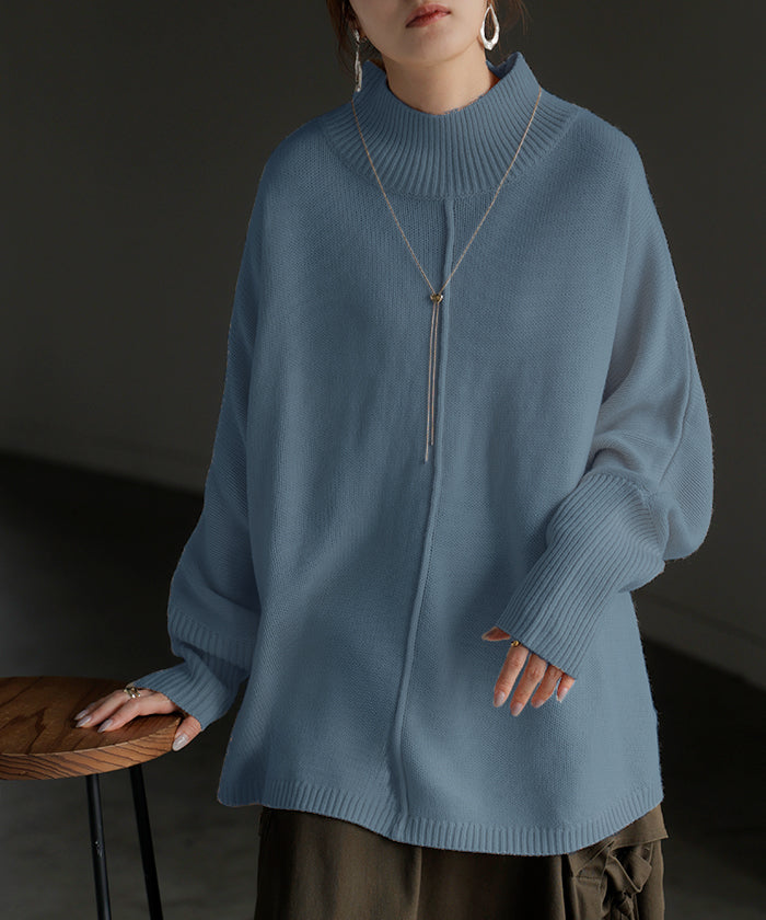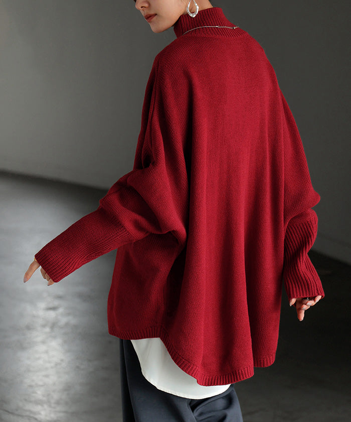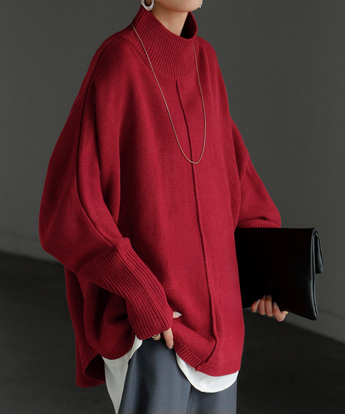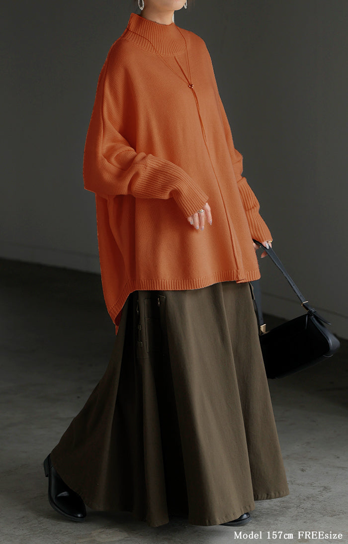 2025AW新作 ニット ハイネック ドルマン レディース トップス ロング セーター プルオーバー 長袖 長い ドルマンスリーブ タートルネック リブ 無地 チュニック レイヤード チクチクしない ゆったり 体型カバー 大きいサイズ お尻が隠れる カジュアル 黒 白 秋 冬 HUG.U
