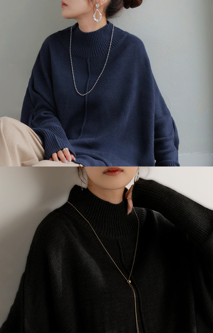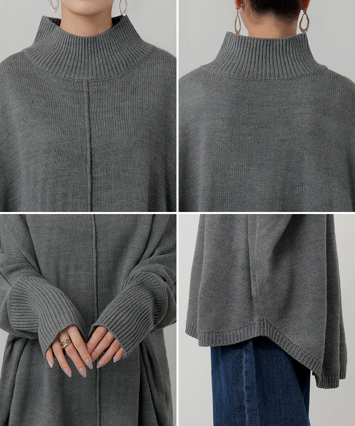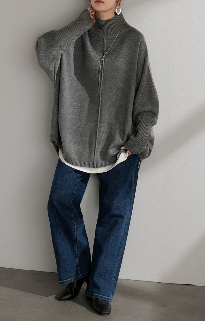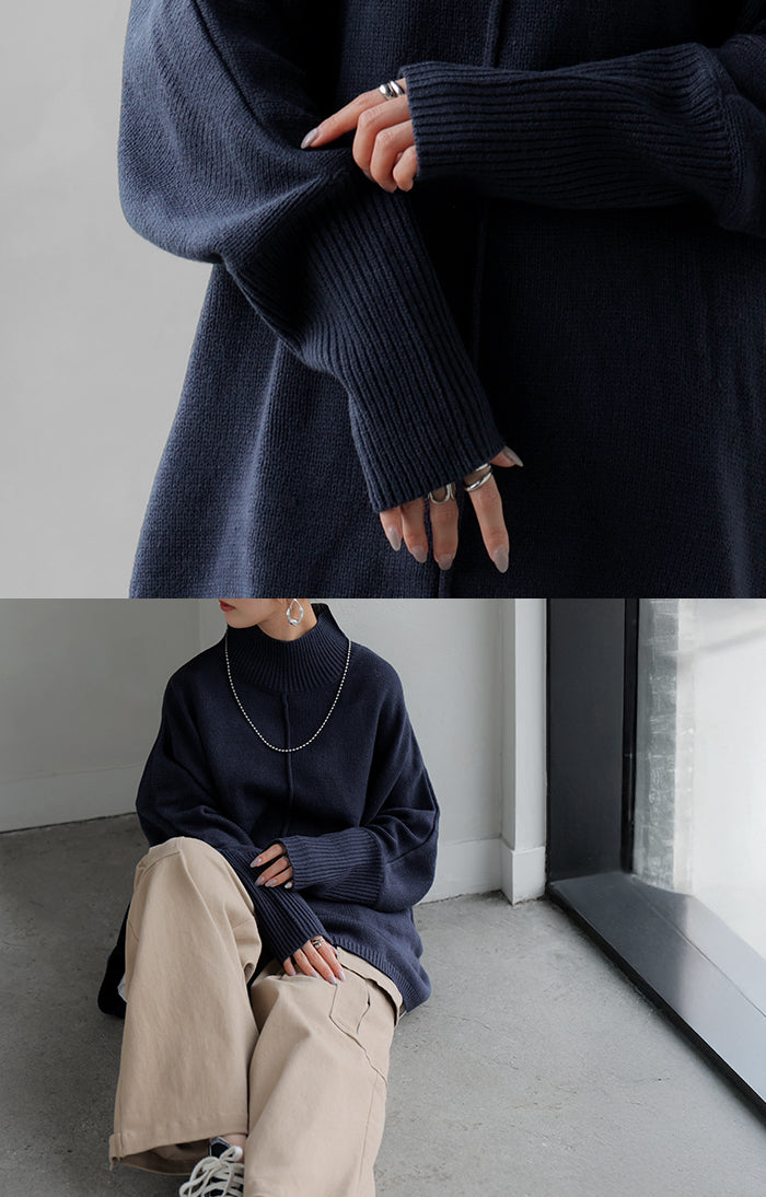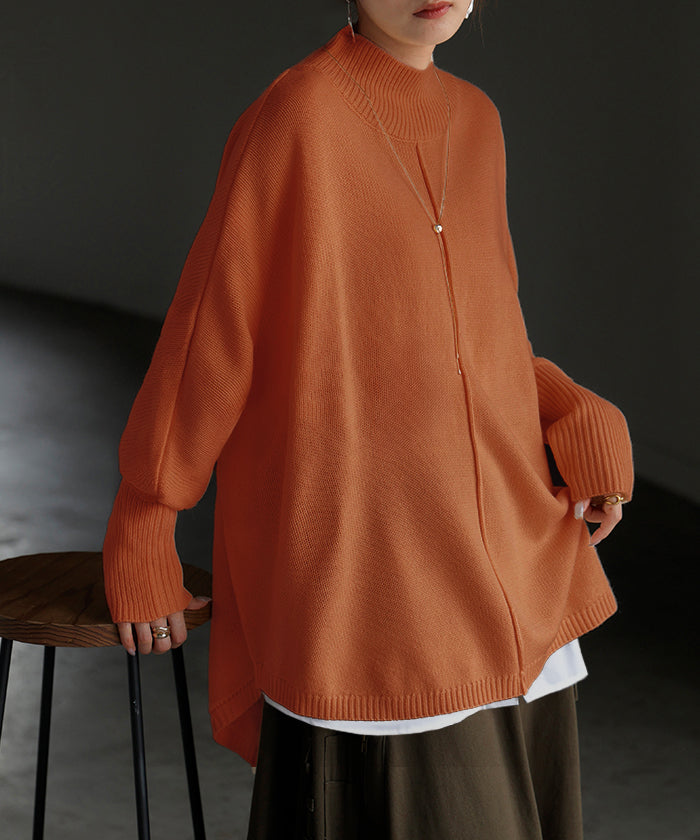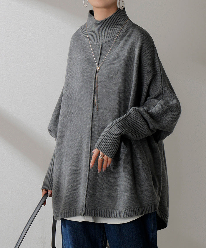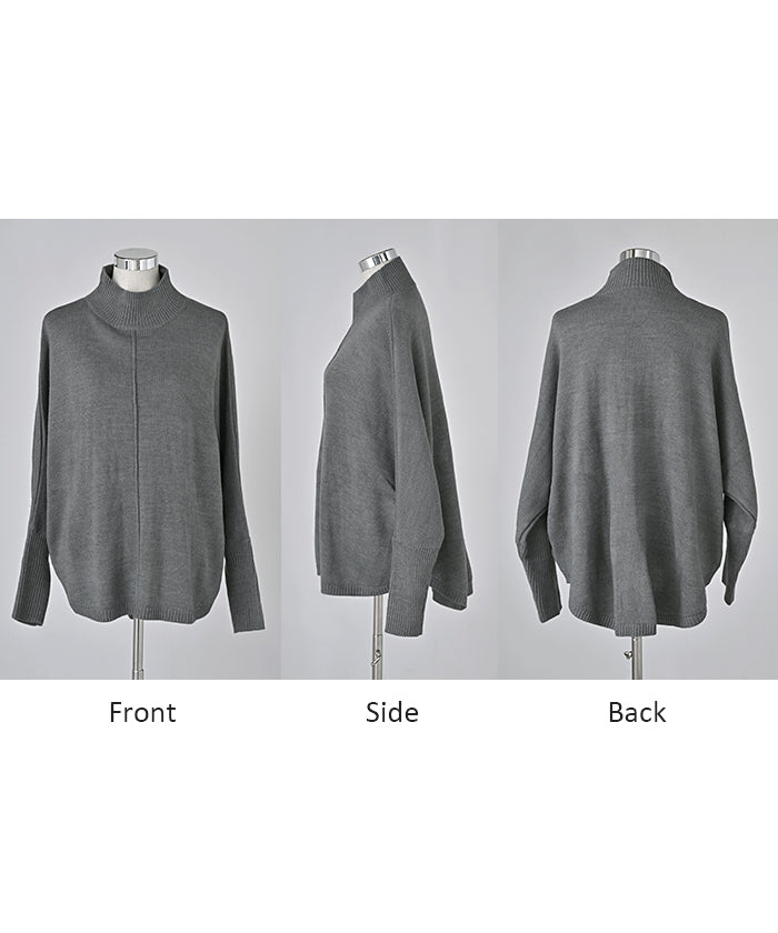 2025AW新作 ニット ハイネック ドルマン レディース トップス ロング セーター プルオーバー 長袖 長い ドルマンスリーブ タートルネック リブ 無地 チュニック レイヤード チクチクしない ゆったり 体型カバー 大きいサイズ お尻が隠れる カジュアル 黒 白 秋 冬 HUG.U