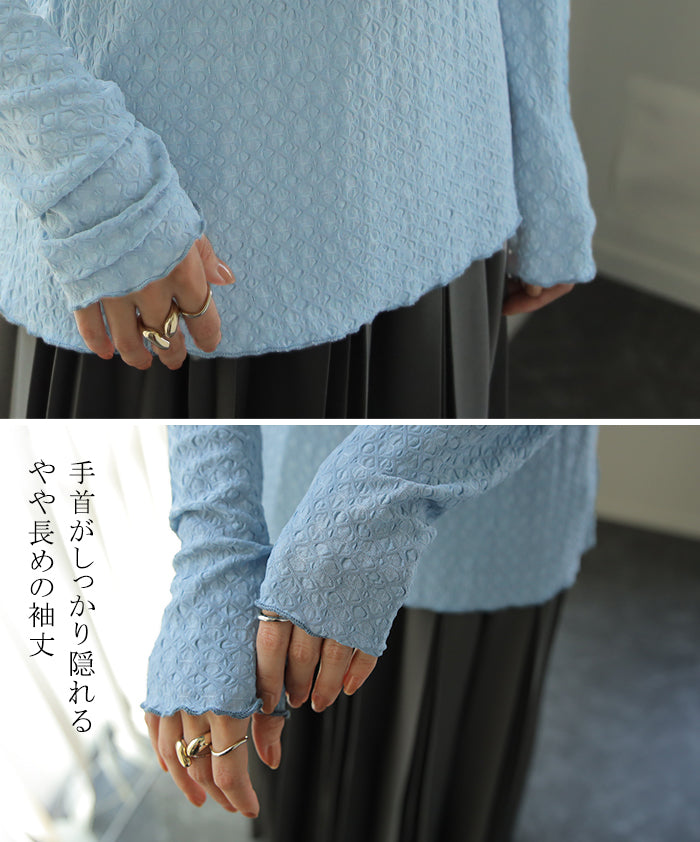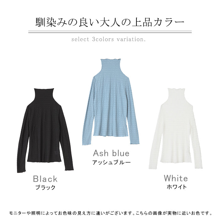 シボ感がたまらない抜け感たっぷりのハイネックシアートップスです。やわらかで伸縮性のある素材なので着心地良くラインをキレイに見せてくれます。ハイネックデザインなのでインナーとして首元だけ出したレイヤードスタイルもおすすめです。■モデル着用アイテム ⇒ トップス / ネックレス■モデル着用アイテム ⇒ ワンピース■モデル着用アイテム ⇒ リング■モデル着用アイテム ⇒ トップス / パンツ■モデル着用アイテム(左) ⇒ トップス■モデル着用アイテム(右) ⇒ トップス■モデル着用アイテム ⇒ パンツ※モデル着用商品は在庫切れ・販売終了・リンク切れの場合がございます。