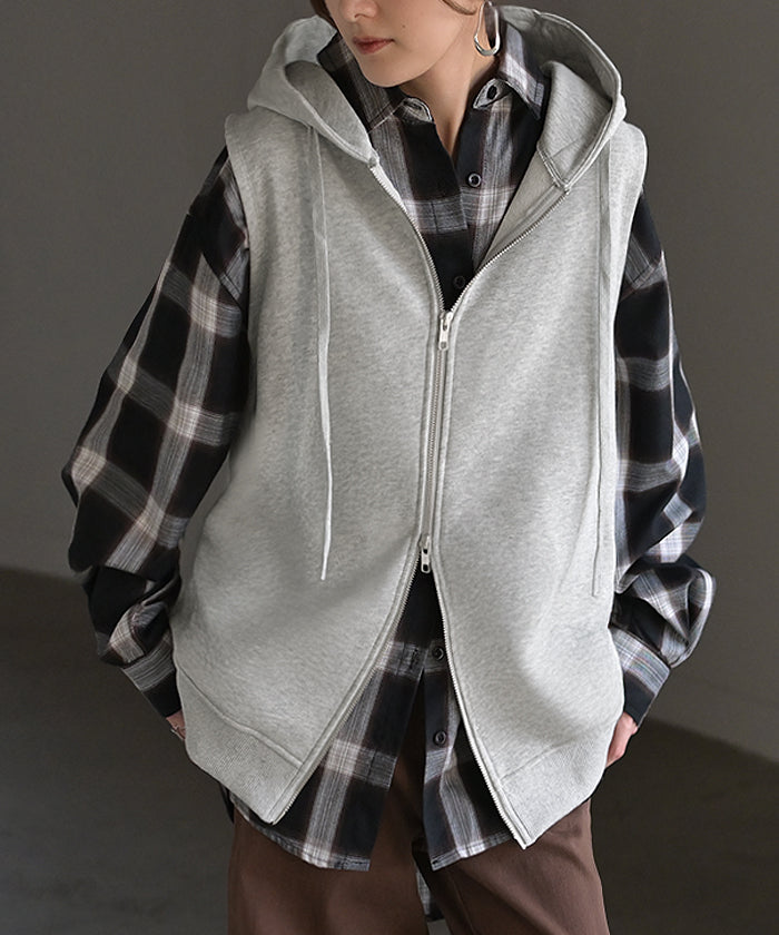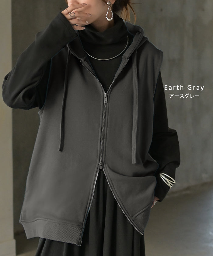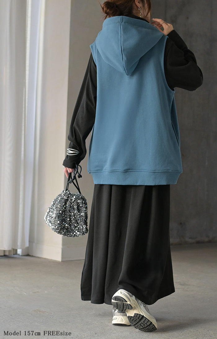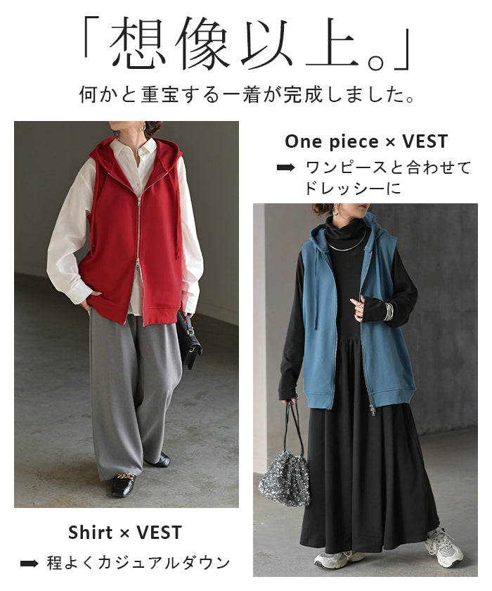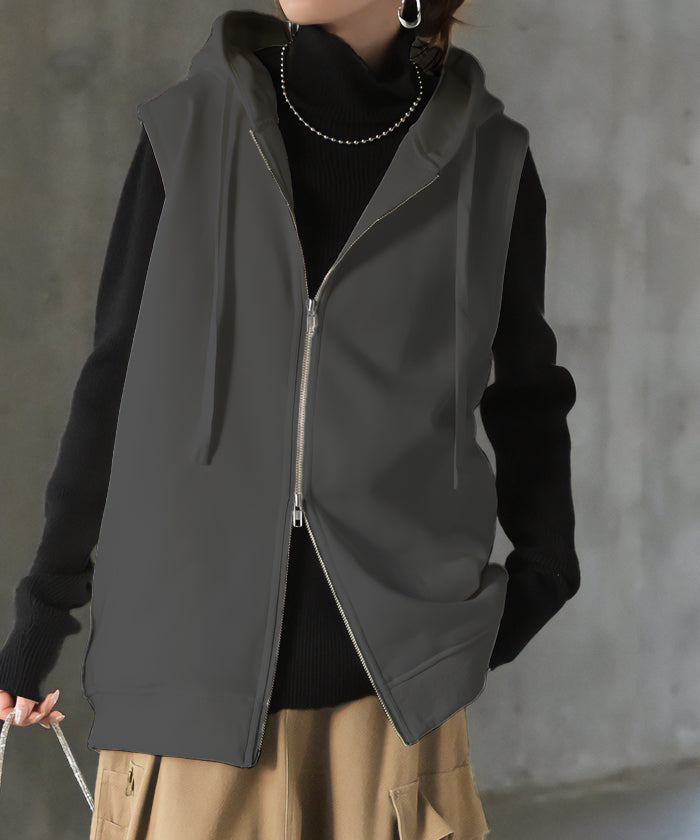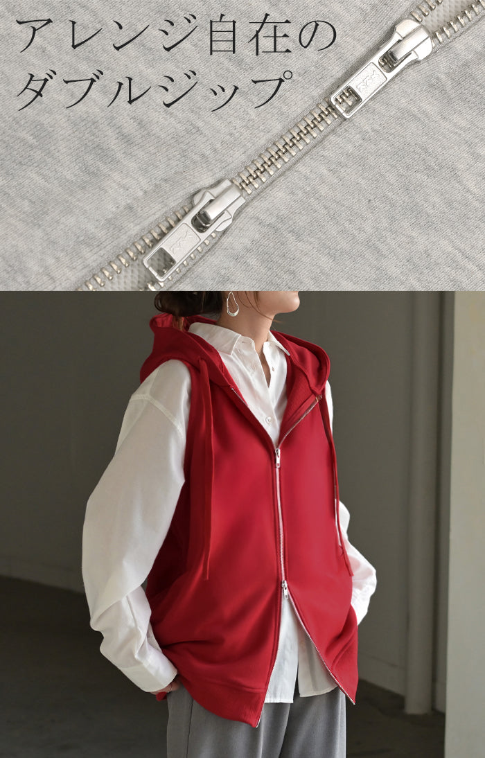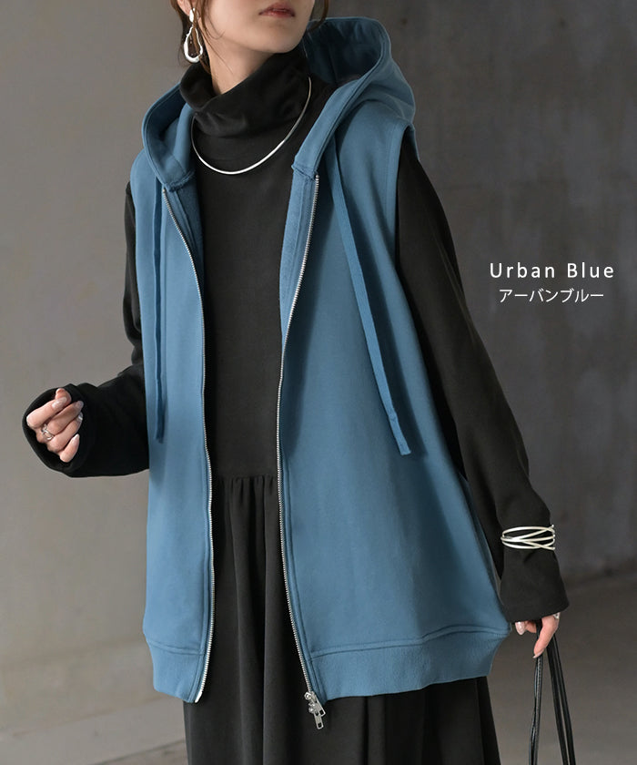 ベスト スウェット パーカー スポーティー ジレ スウェットベスト アウター レディース ライトアウター トップス ノースリーブ トレーナー フード フーディー ビッグ ゆったり 羽織 厚手 体型カバー 大きいサイズ お尻が隠れ 白 黒 春 夏 HUG.U