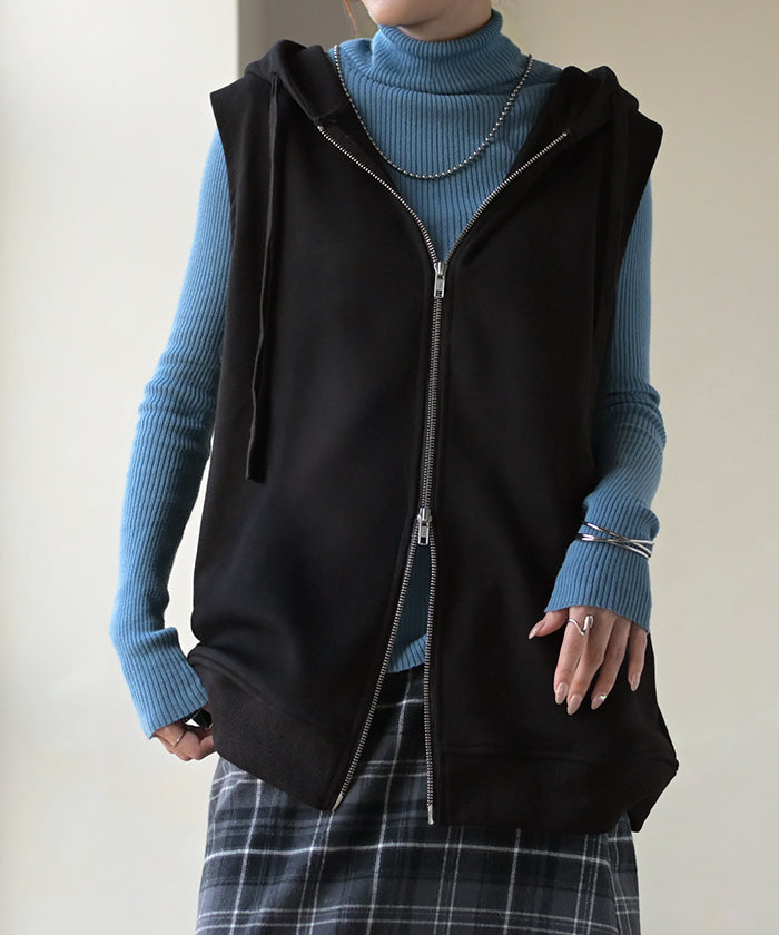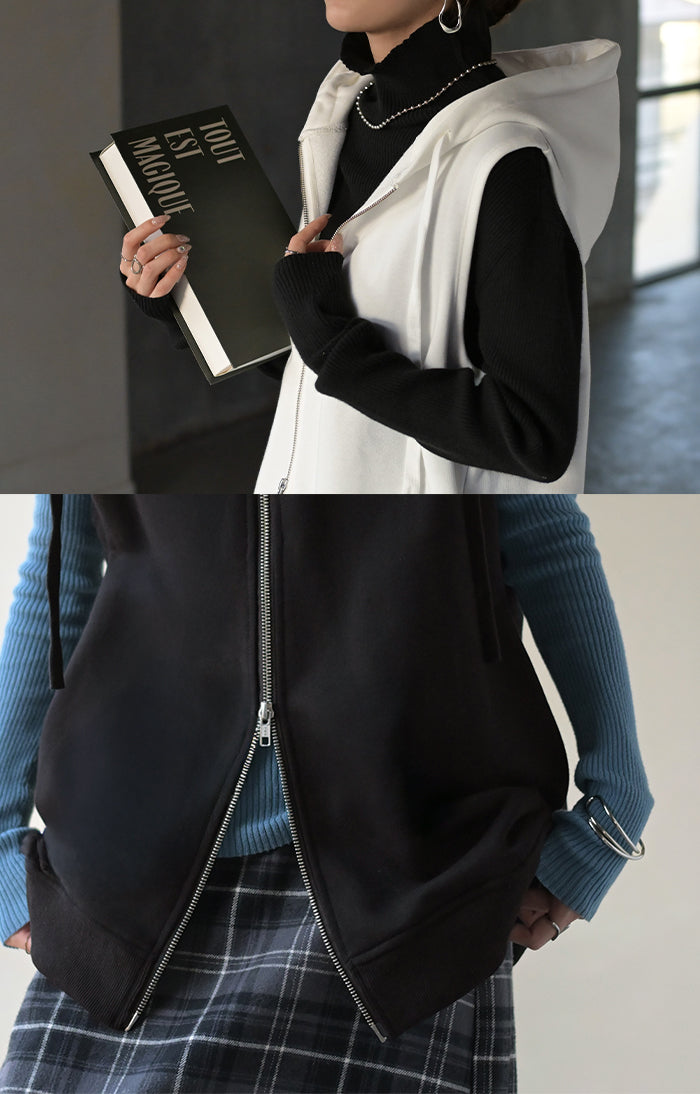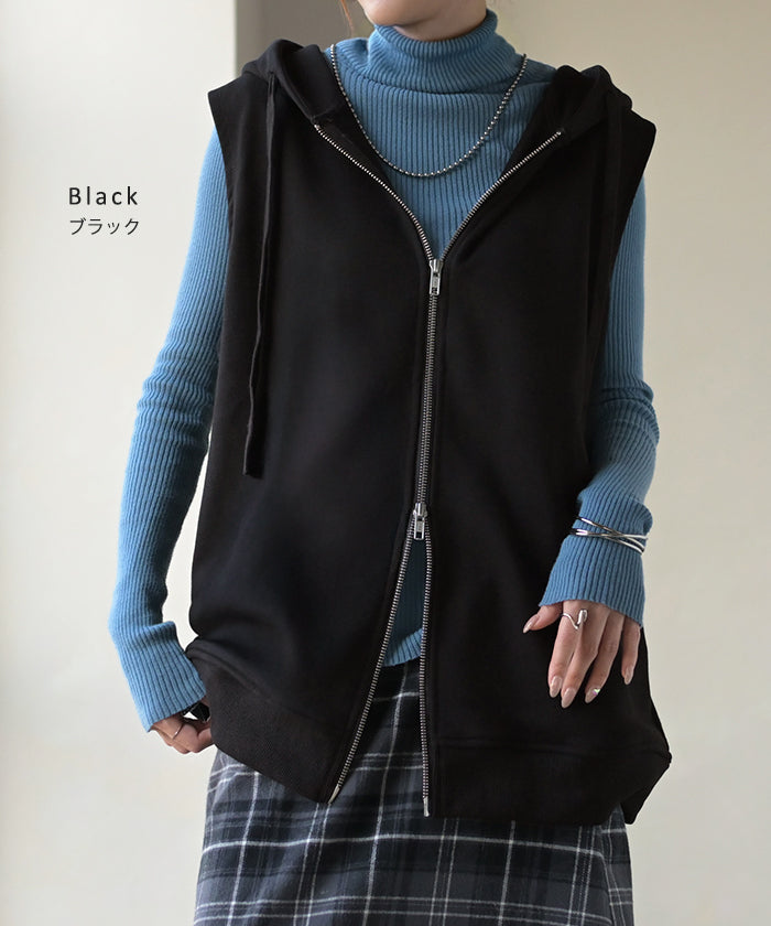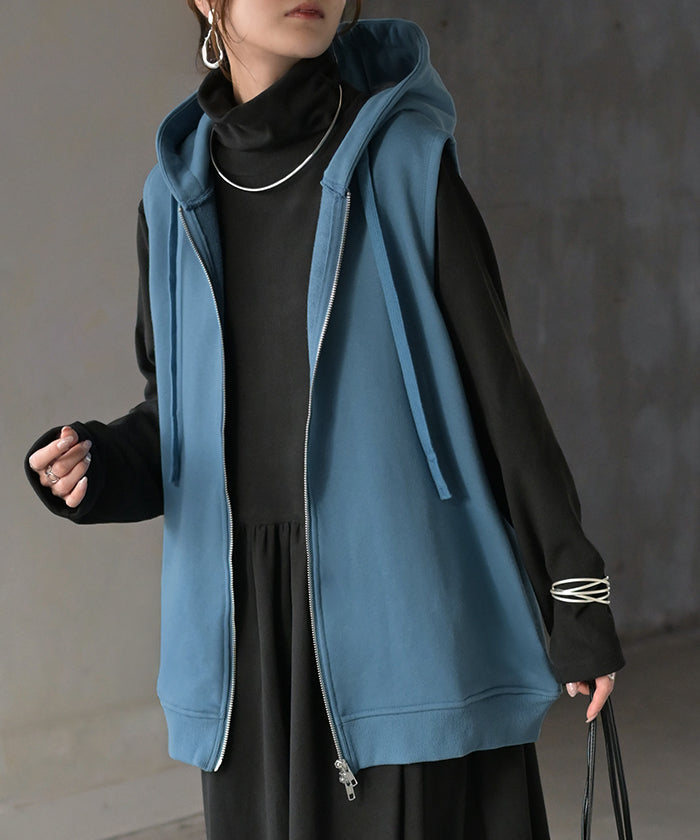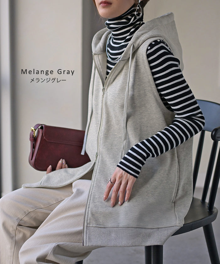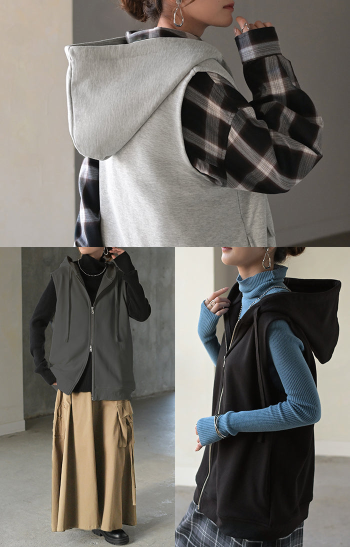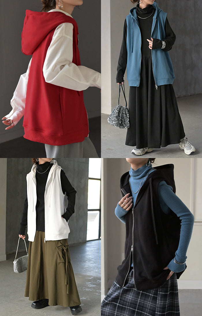 ベスト スウェット パーカー スポーティー ジレ スウェットベスト アウター レディース ライトアウター トップス ノースリーブ トレーナー フード フーディー ビッグ ゆったり 羽織 厚手 体型カバー 大きいサイズ お尻が隠れ 白 黒 春 夏 HUG.U