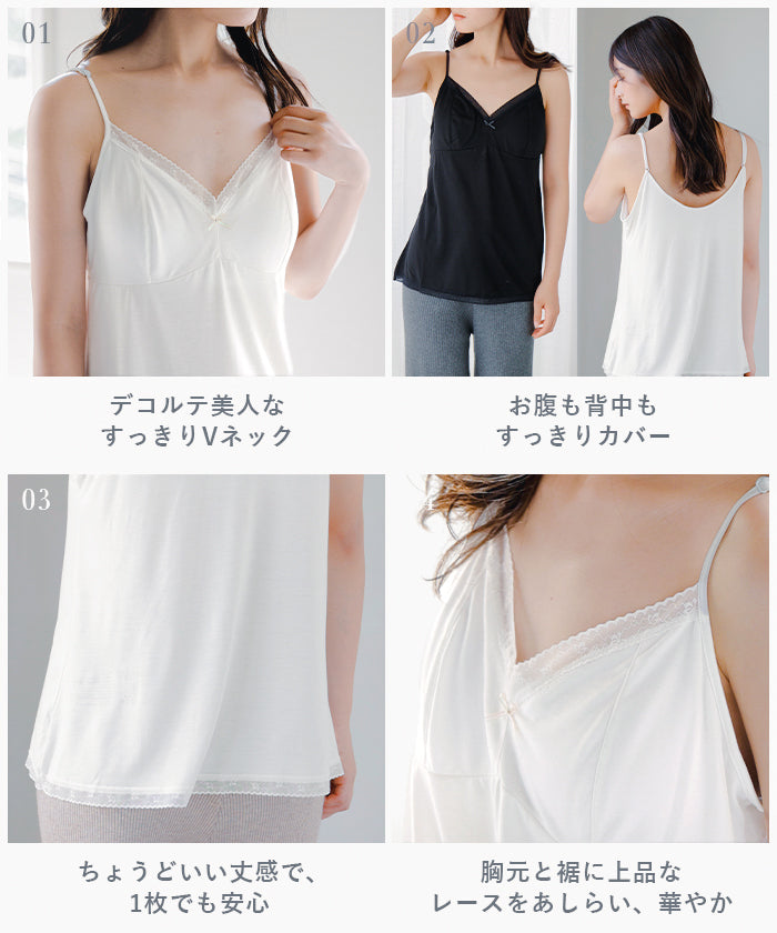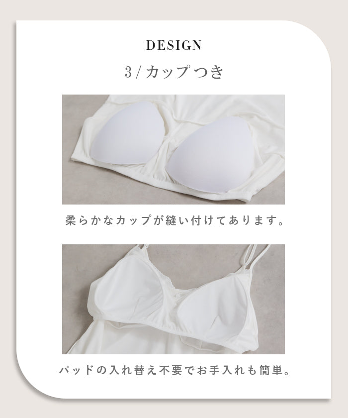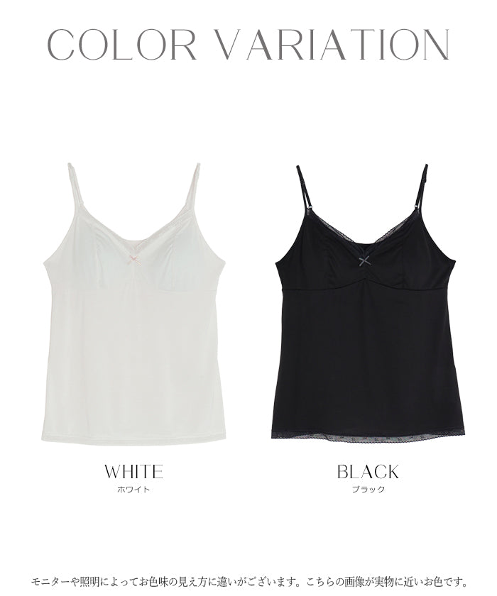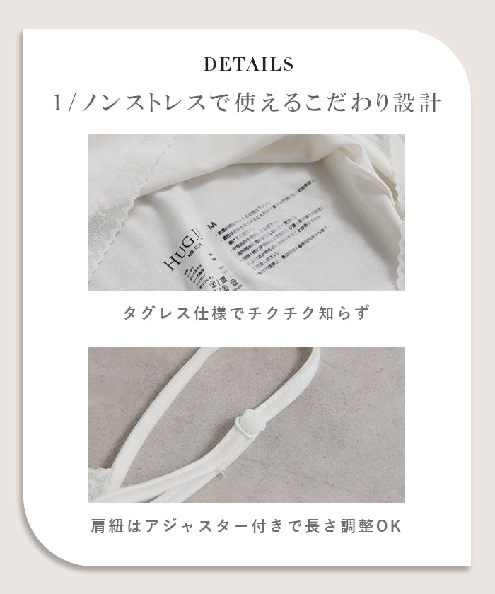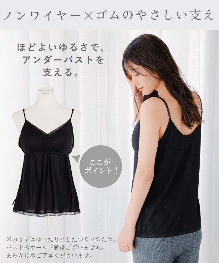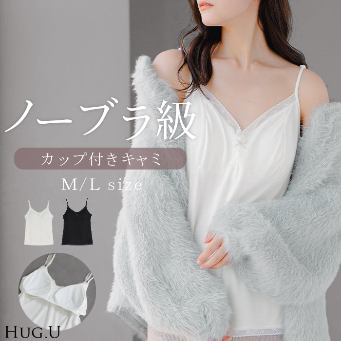 ブラトップ キャミソール カップ付き インナー トップス キャミ レディース 肩紐 調節可能 無地 ロング ルームウェア パジャマ ノンワイヤー 長い 重ね 付け裾 レース 裾 ゆったり 体型カバー ストレッチ きれいめ 大きいサイズ 黒 白 春 夏 HUG.U メール便
