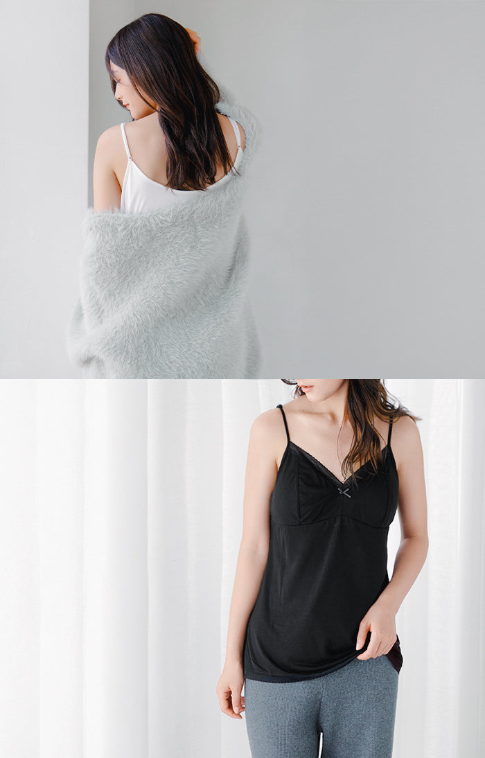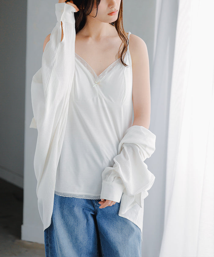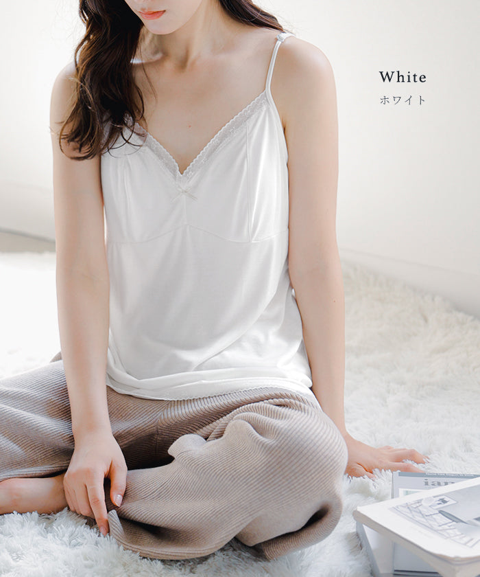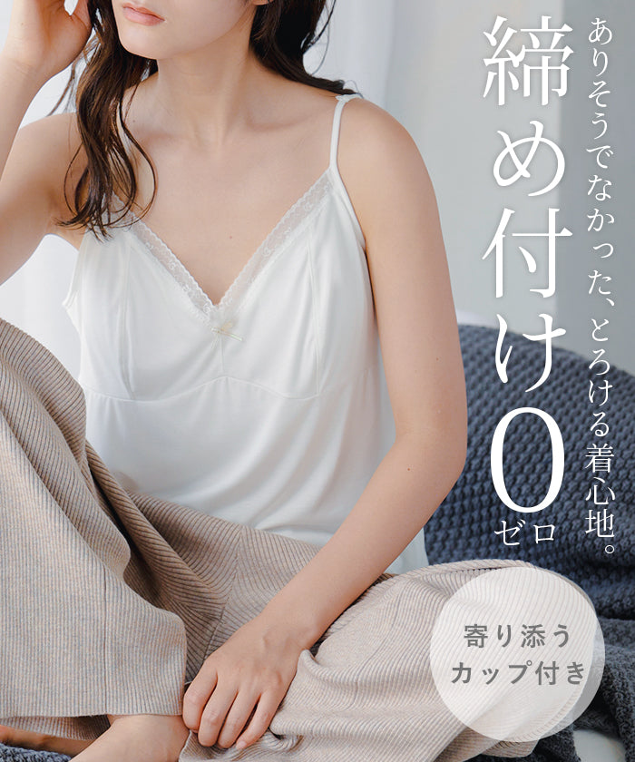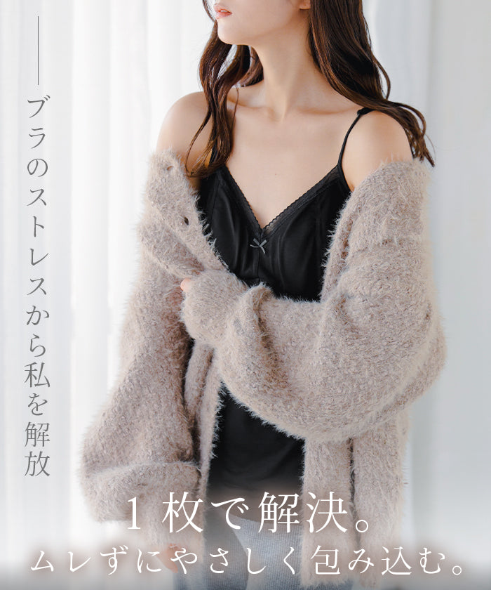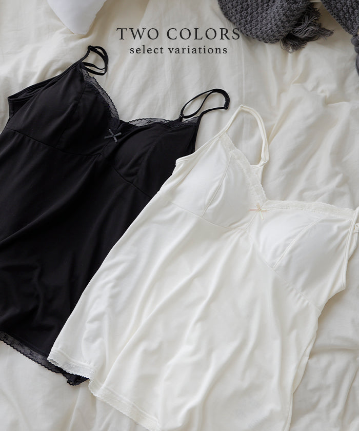 ブラトップ キャミソール カップ付き インナー トップス キャミ レディース 肩紐 調節可能 無地 ロング ルームウェア パジャマ ノンワイヤー 長い 重ね 付け裾 レース 裾 ゆったり 体型カバー ストレッチ きれいめ 大きいサイズ 黒 白 春 夏 HUG.U メール便