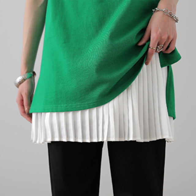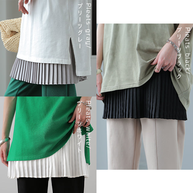 プリーツ白黒2色購入しました。 特に黒プリーツは見た事なかったので綺麗めの格好の時も使えそうです。 またインナー系は体にわりとピッタリするサイズ感の物が多い中こちらはサイズが大きめで着れるので気に入りました。